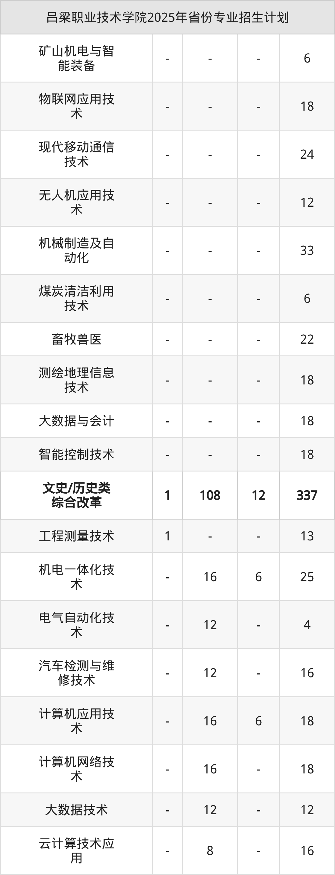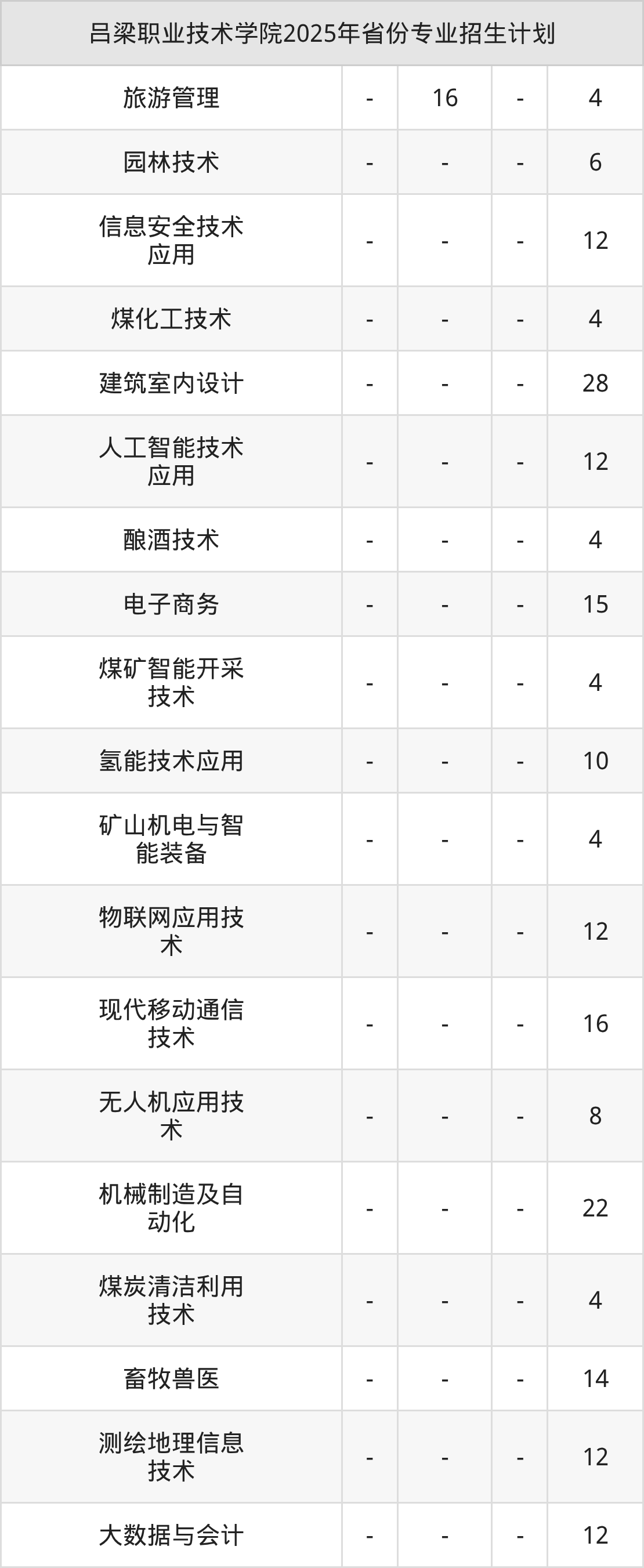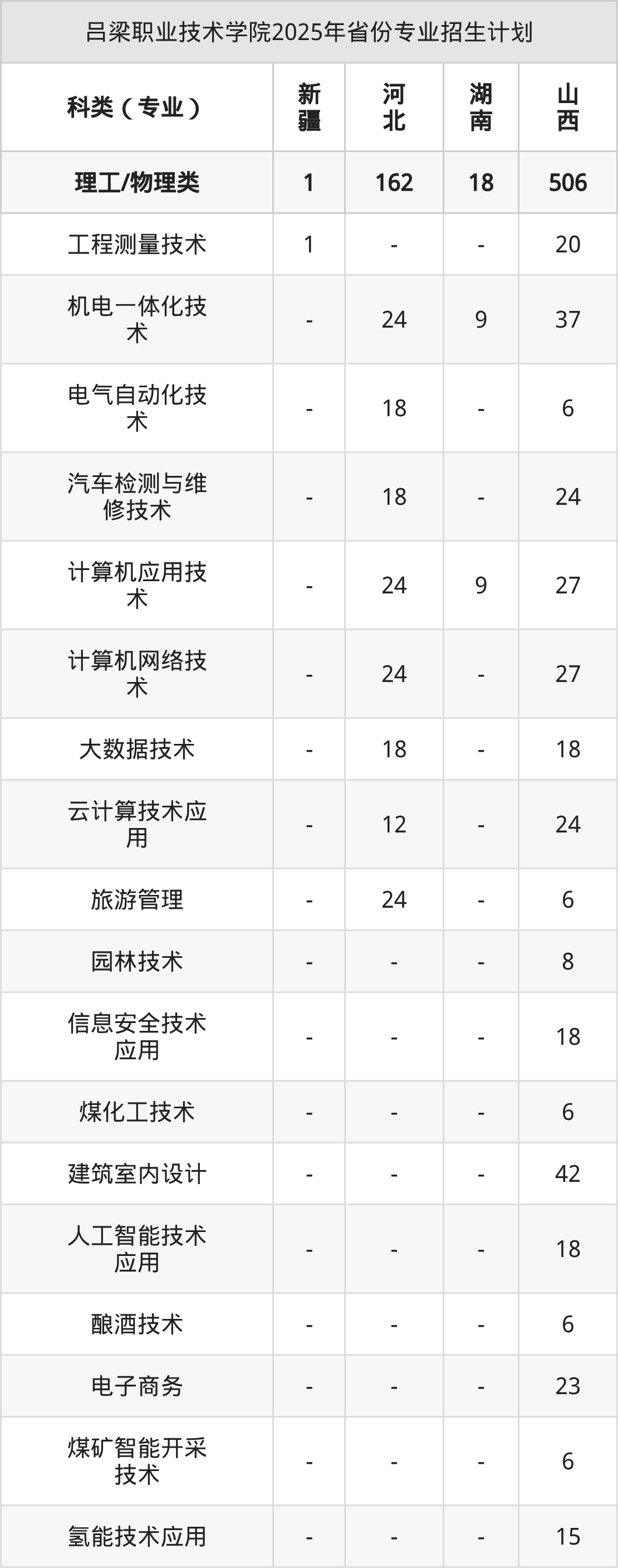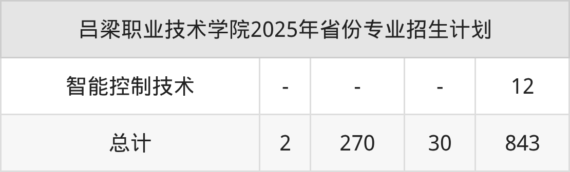 2026年吕梁职业技术学院专科招生计划待公布,下面附上2025年数据,暂供参考: