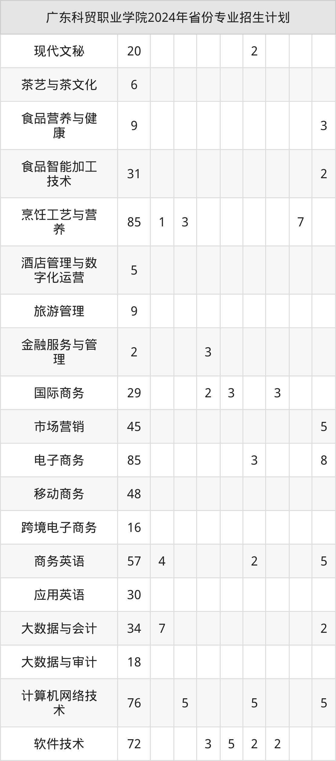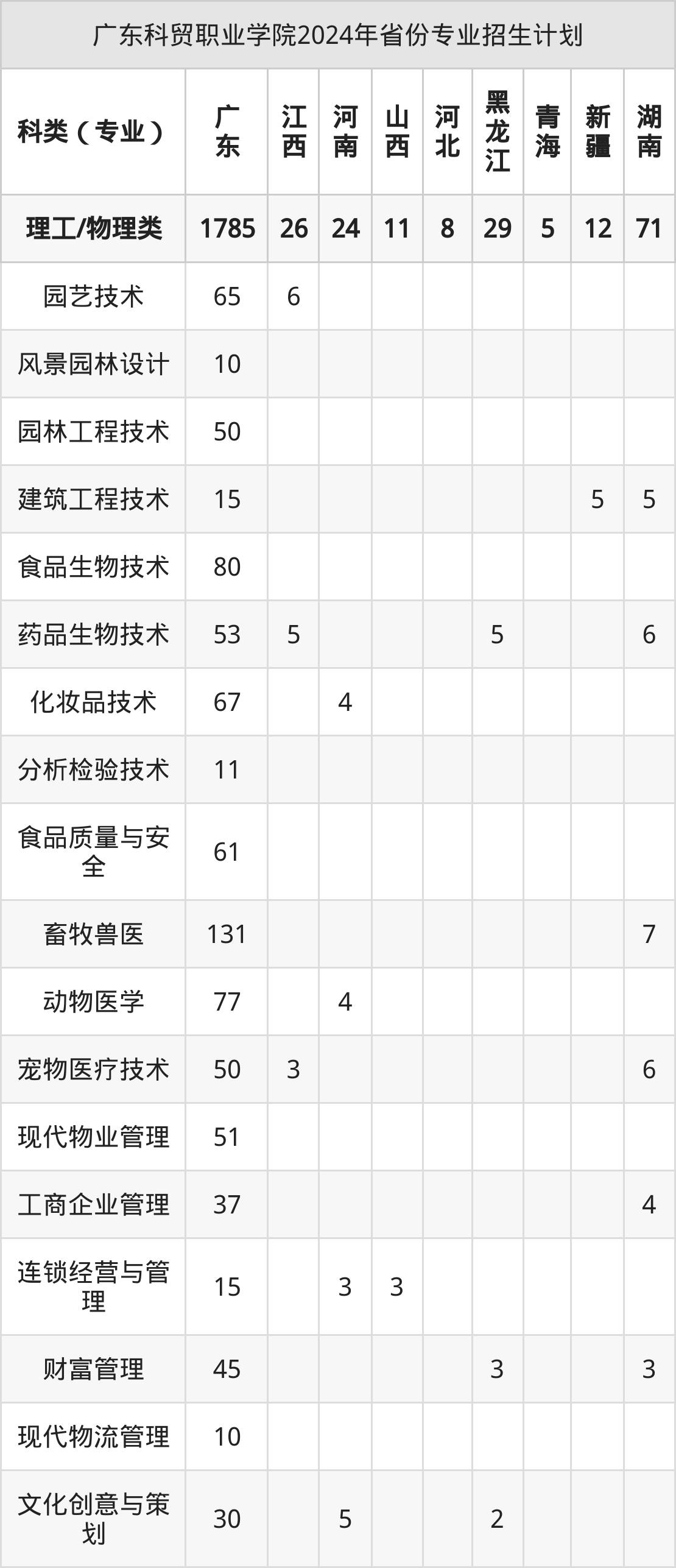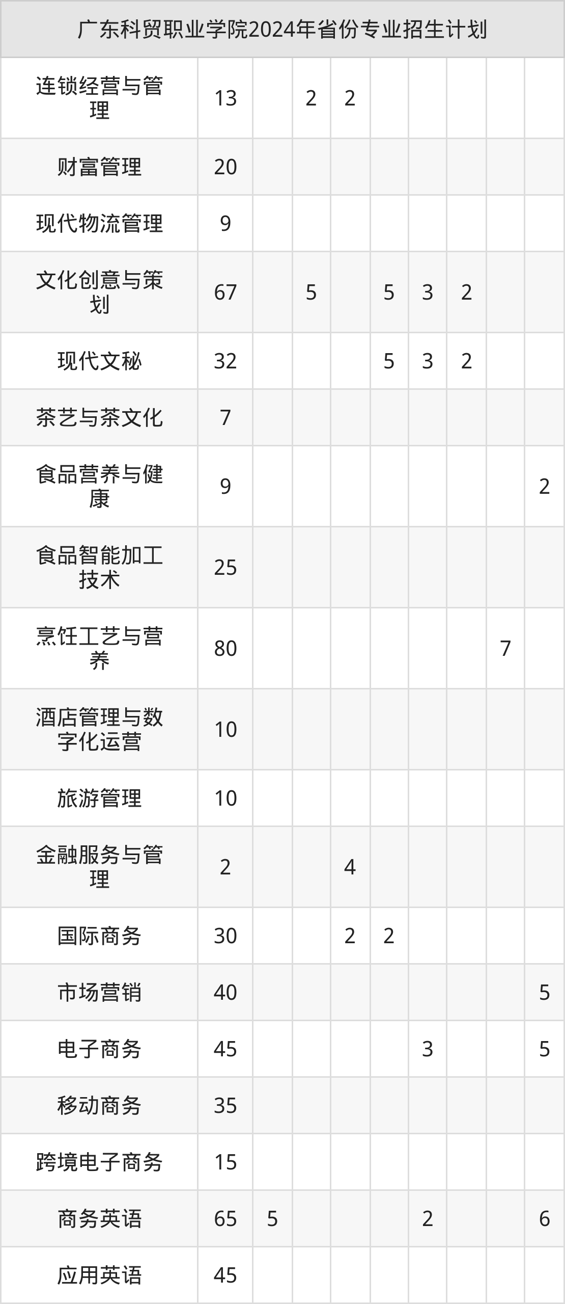 2025年广东科贸职业学院专科招生计划待公布,下面附上2024年数据,暂供参考: