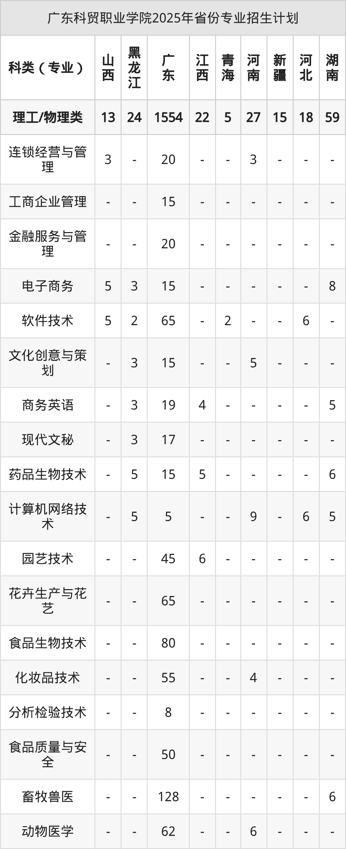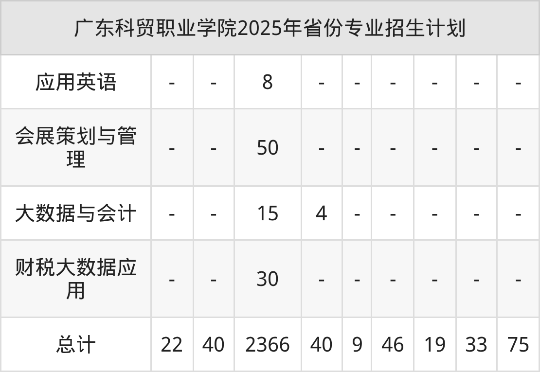 2026年广东科贸职业学院专科招生计划待公布,下面附上2025年数据,暂供参考: