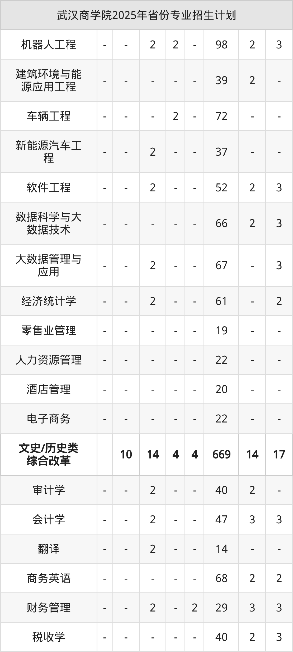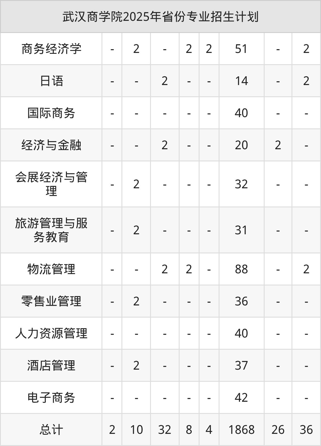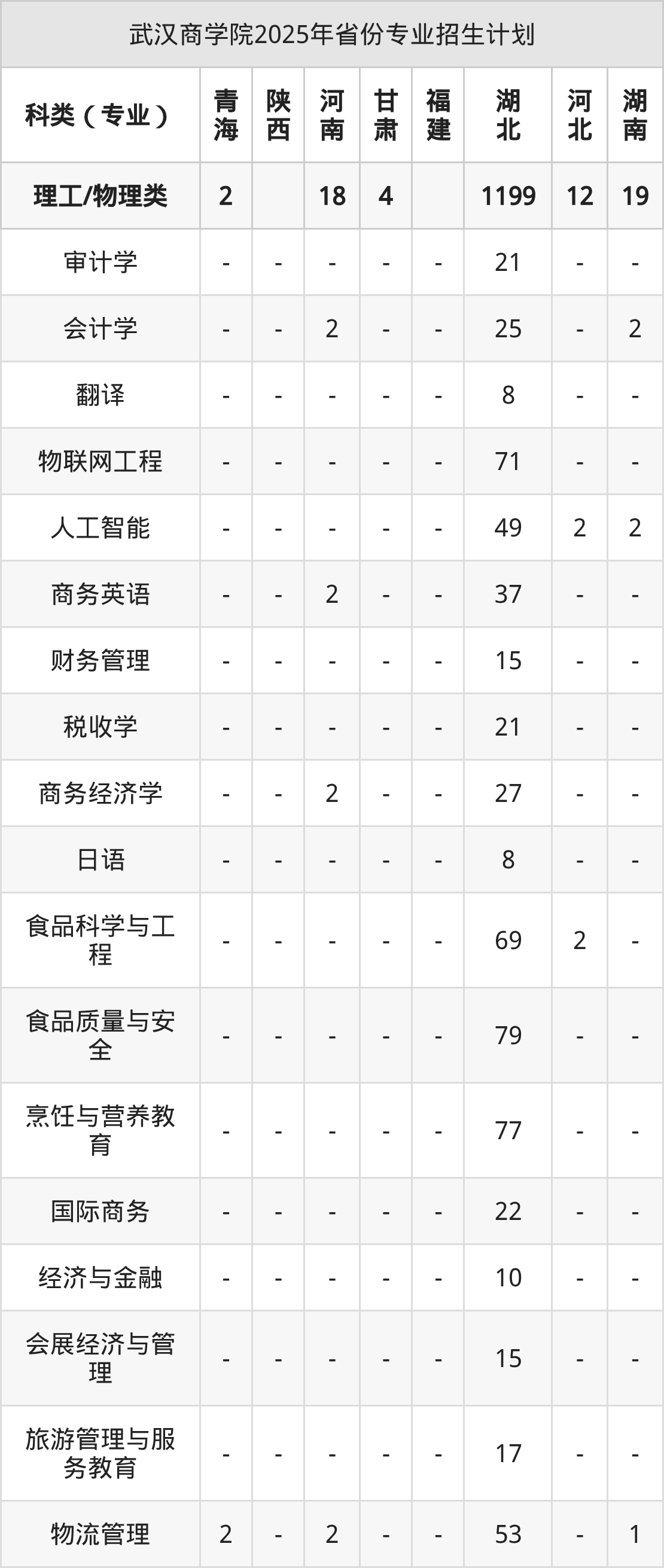 2026年武汉商学院本科招生计划待公布,下面附上2025年数据,暂供参考: