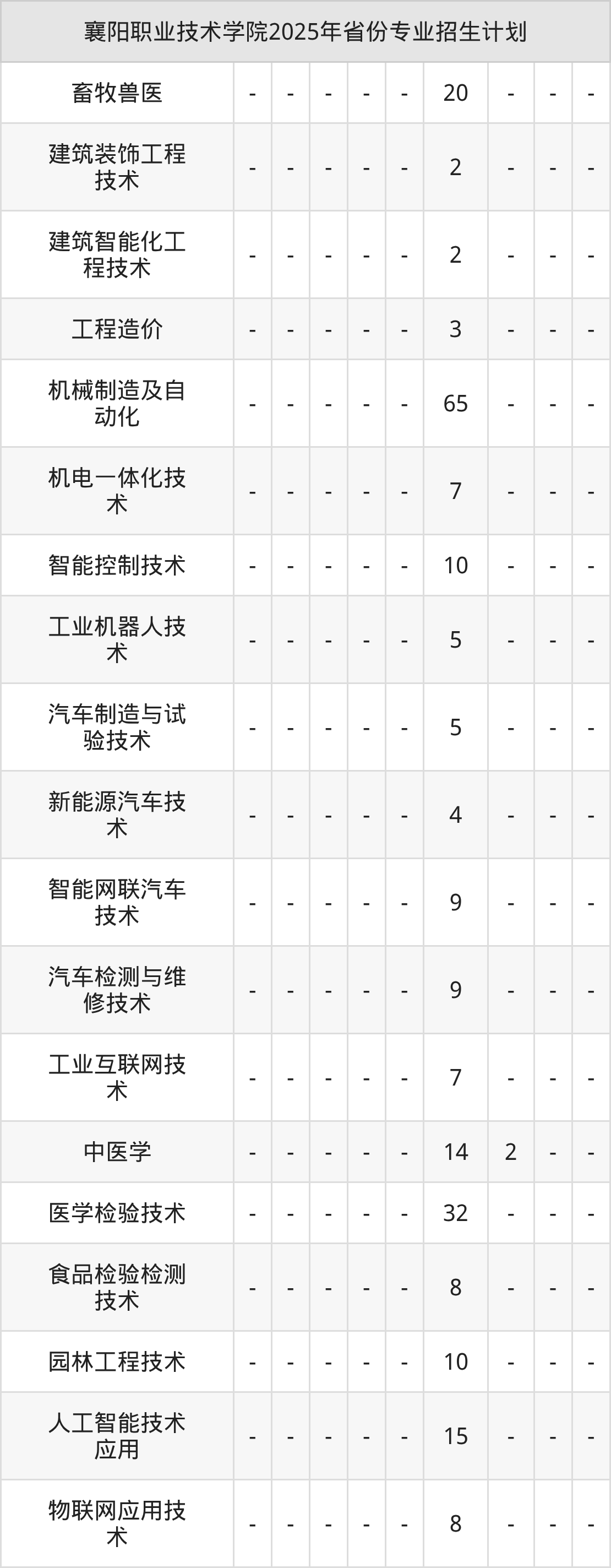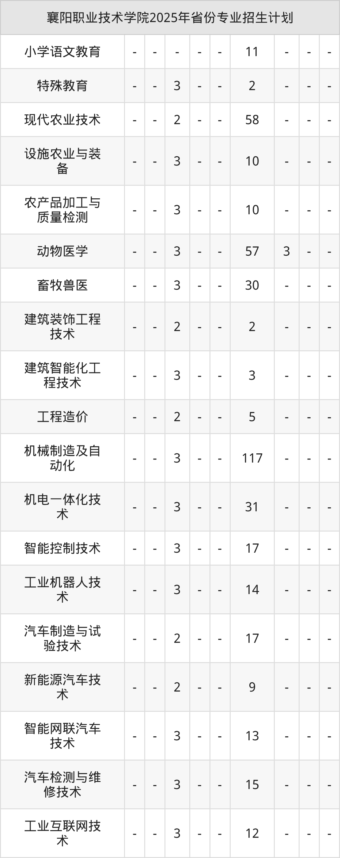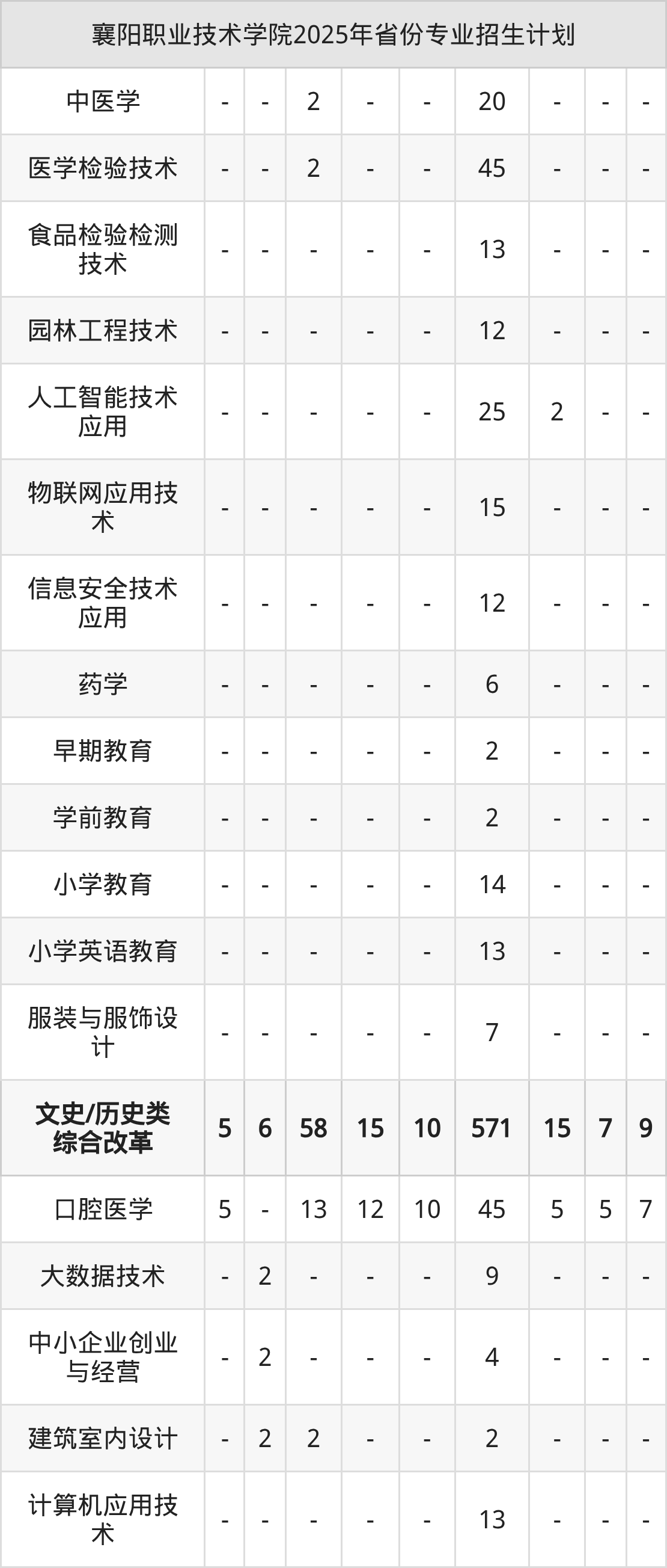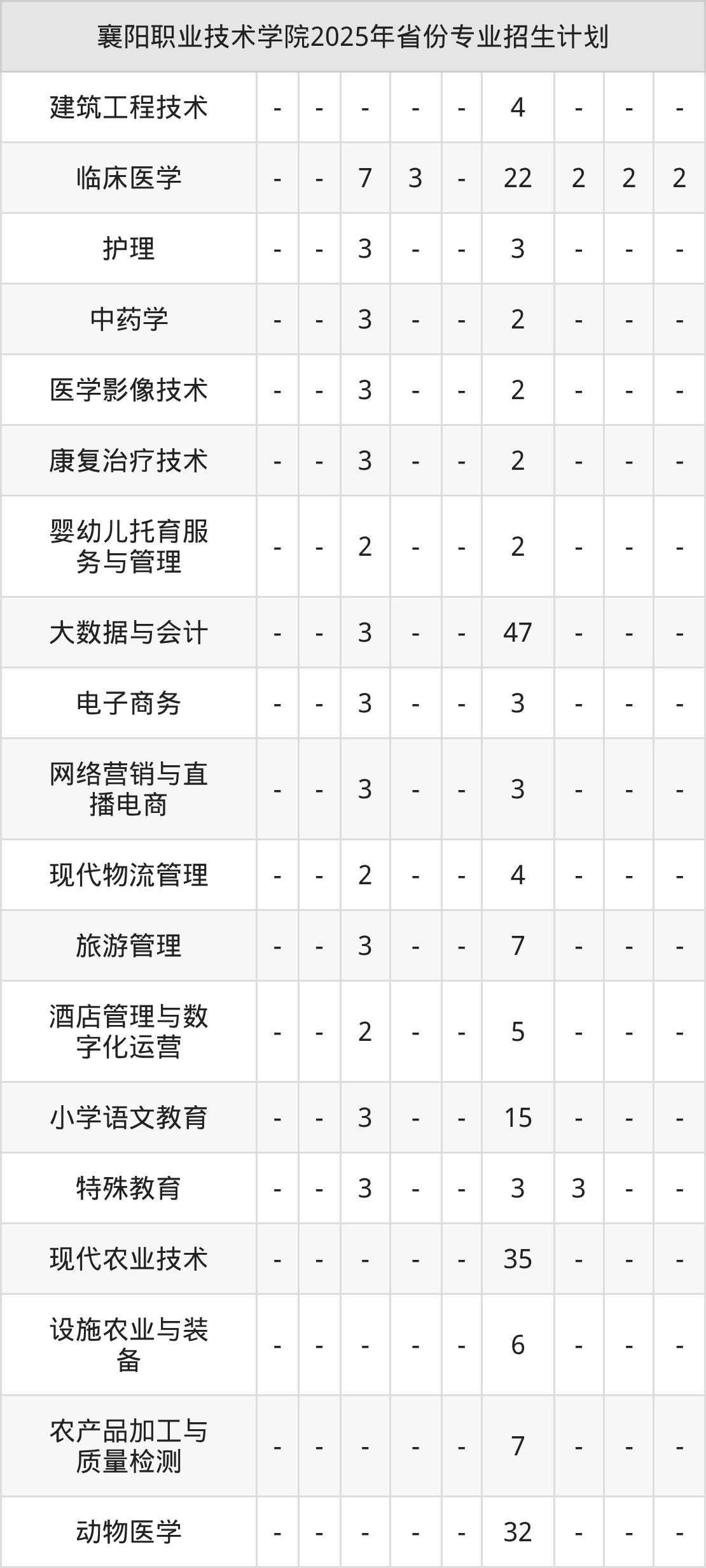 2026年襄阳职业技术学院专科招生计划待公布,下面附上2025年数据,暂供参考: