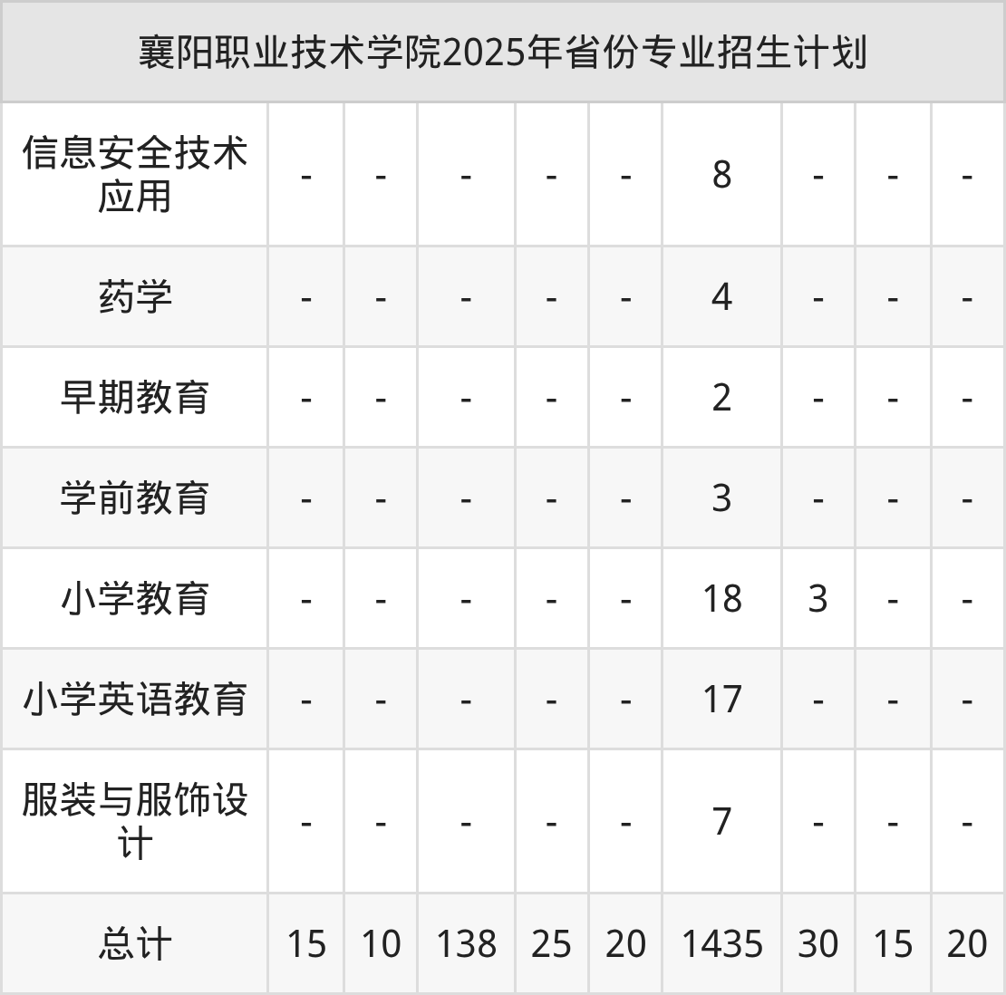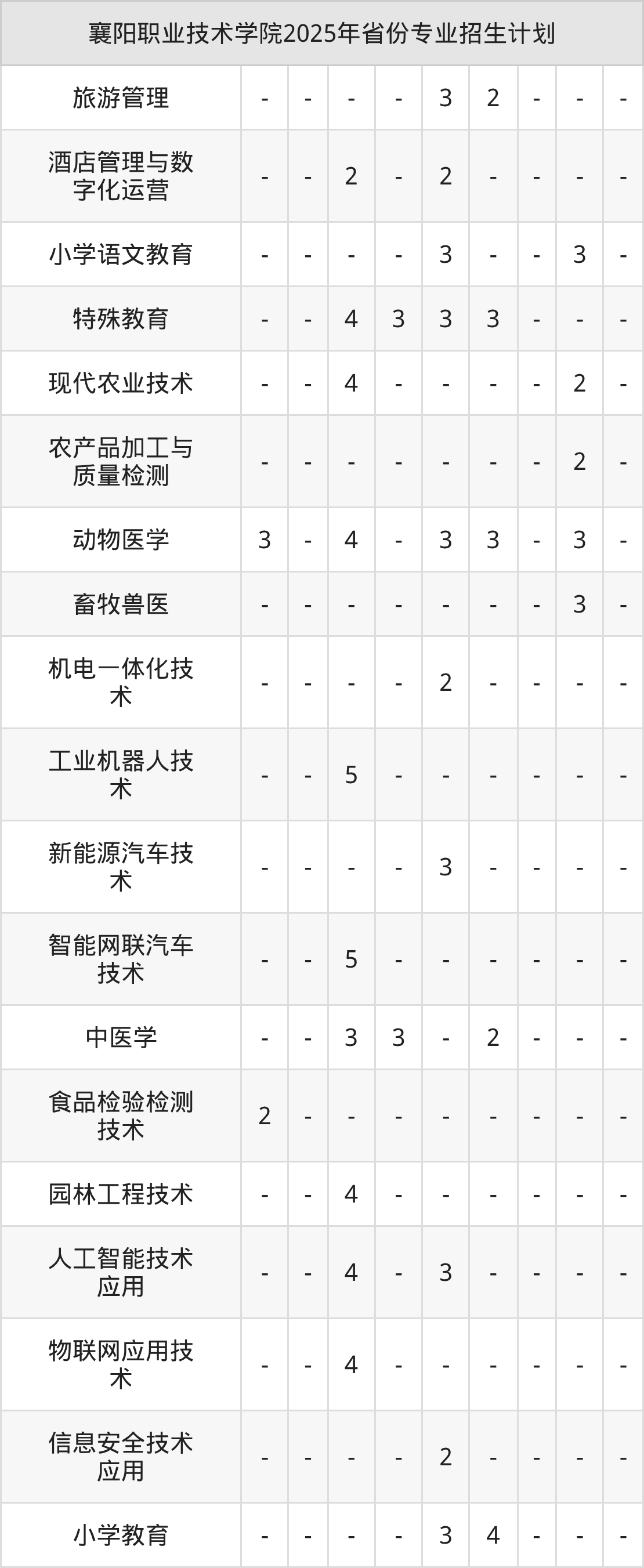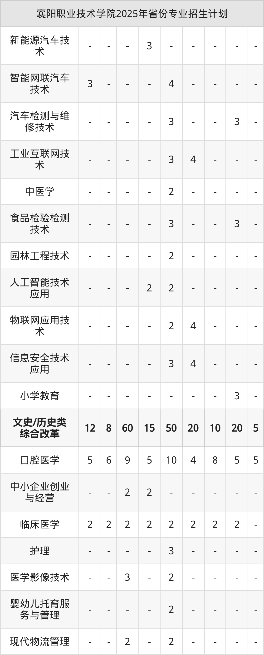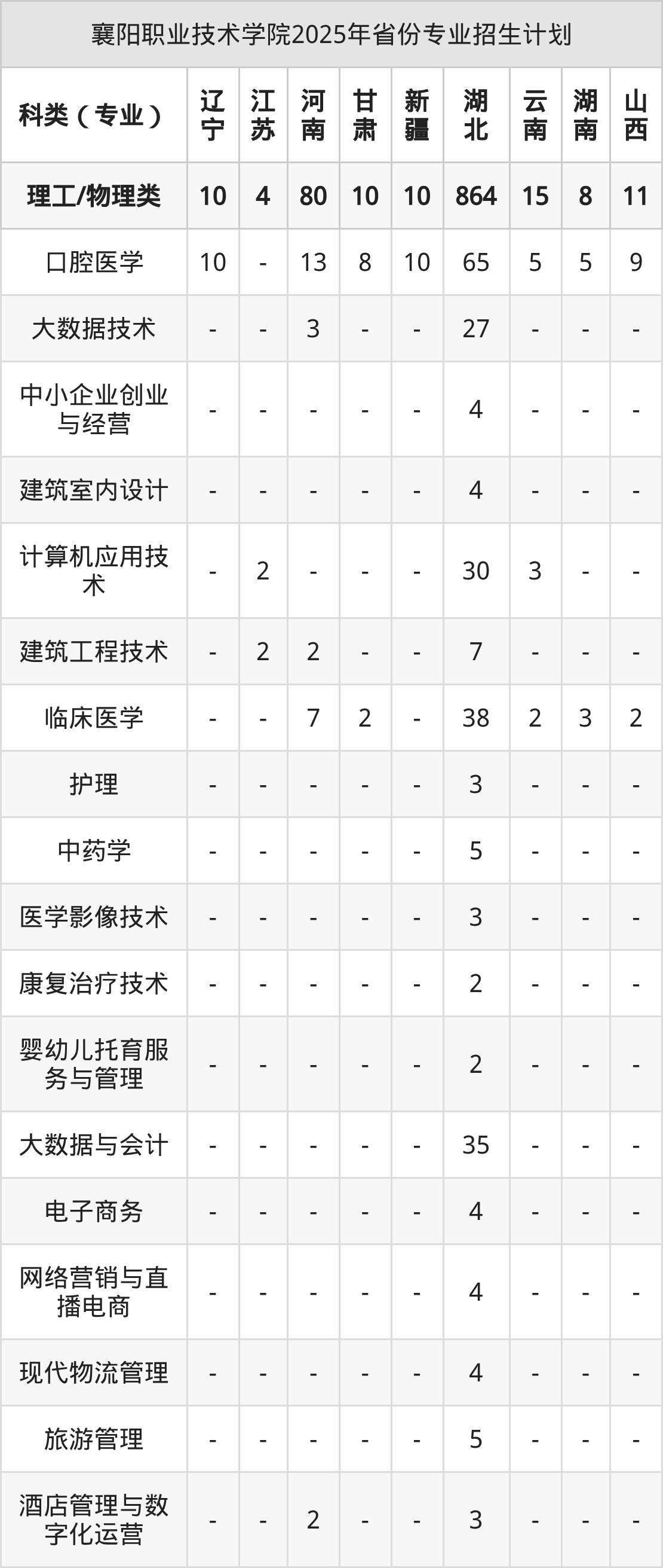 2026年襄阳职业技术学院专科招生计划待公布,下面附上2025年数据,暂供参考: