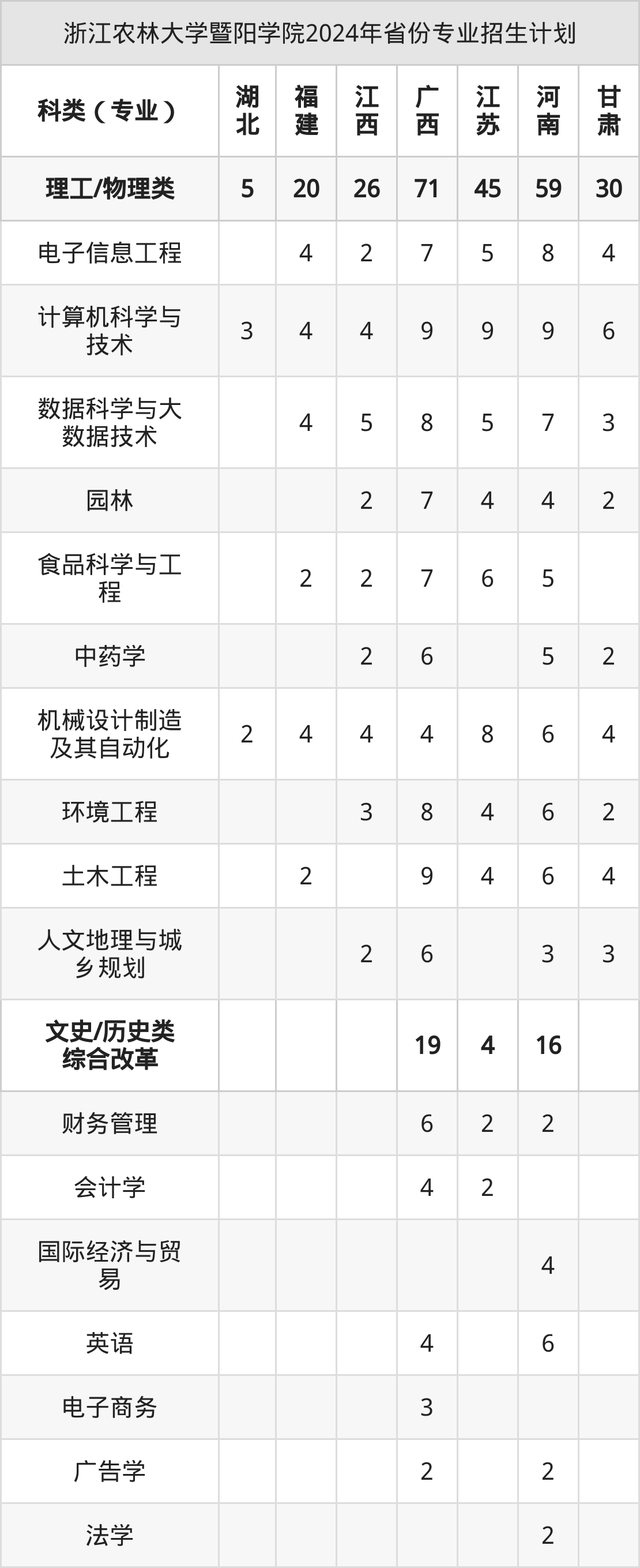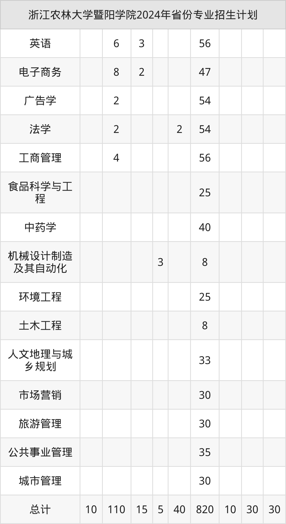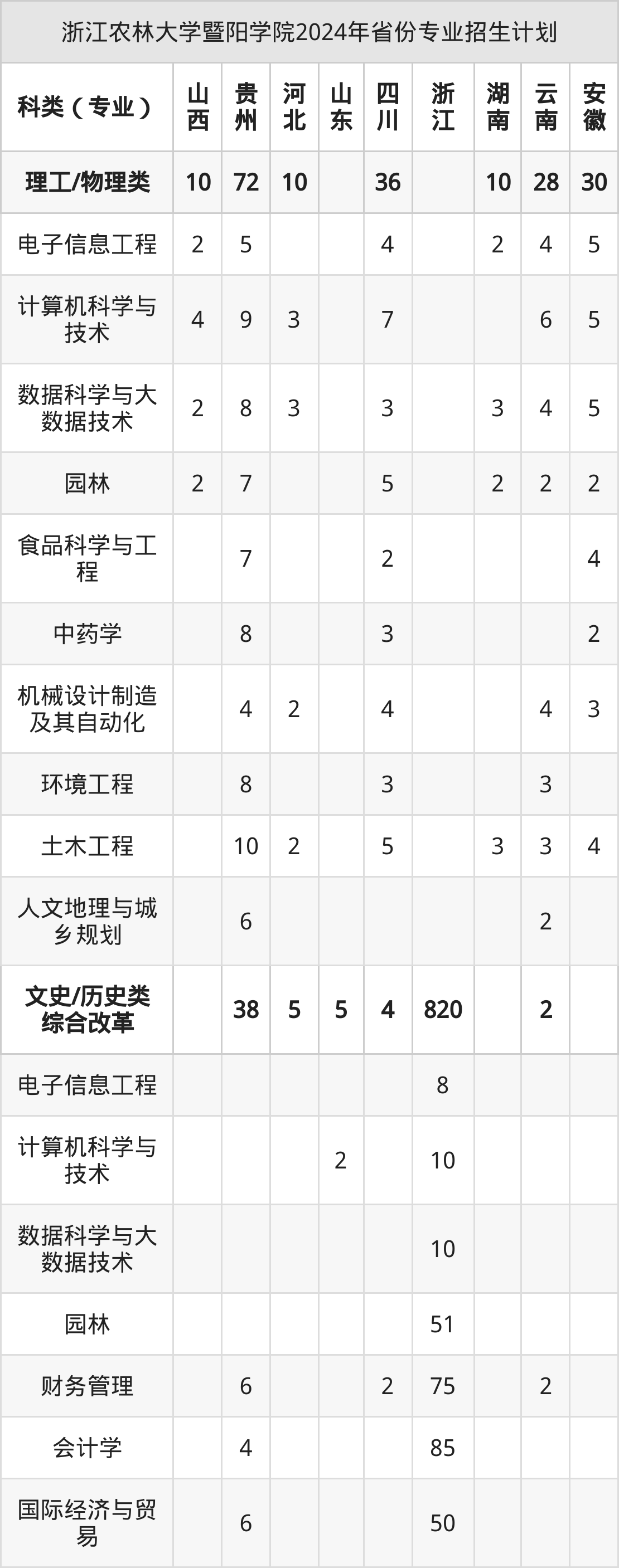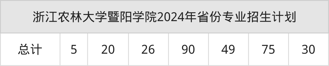 2025年浙江农林大学暨阳学院本科招生计划待公布,下面附上2024年数据,暂供参考: