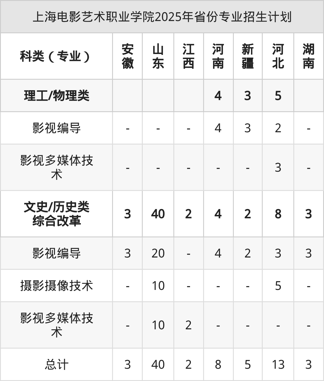 2026年上海电影艺术职业学院专科招生计划待公布,下面附上2025年数据,暂供参考: