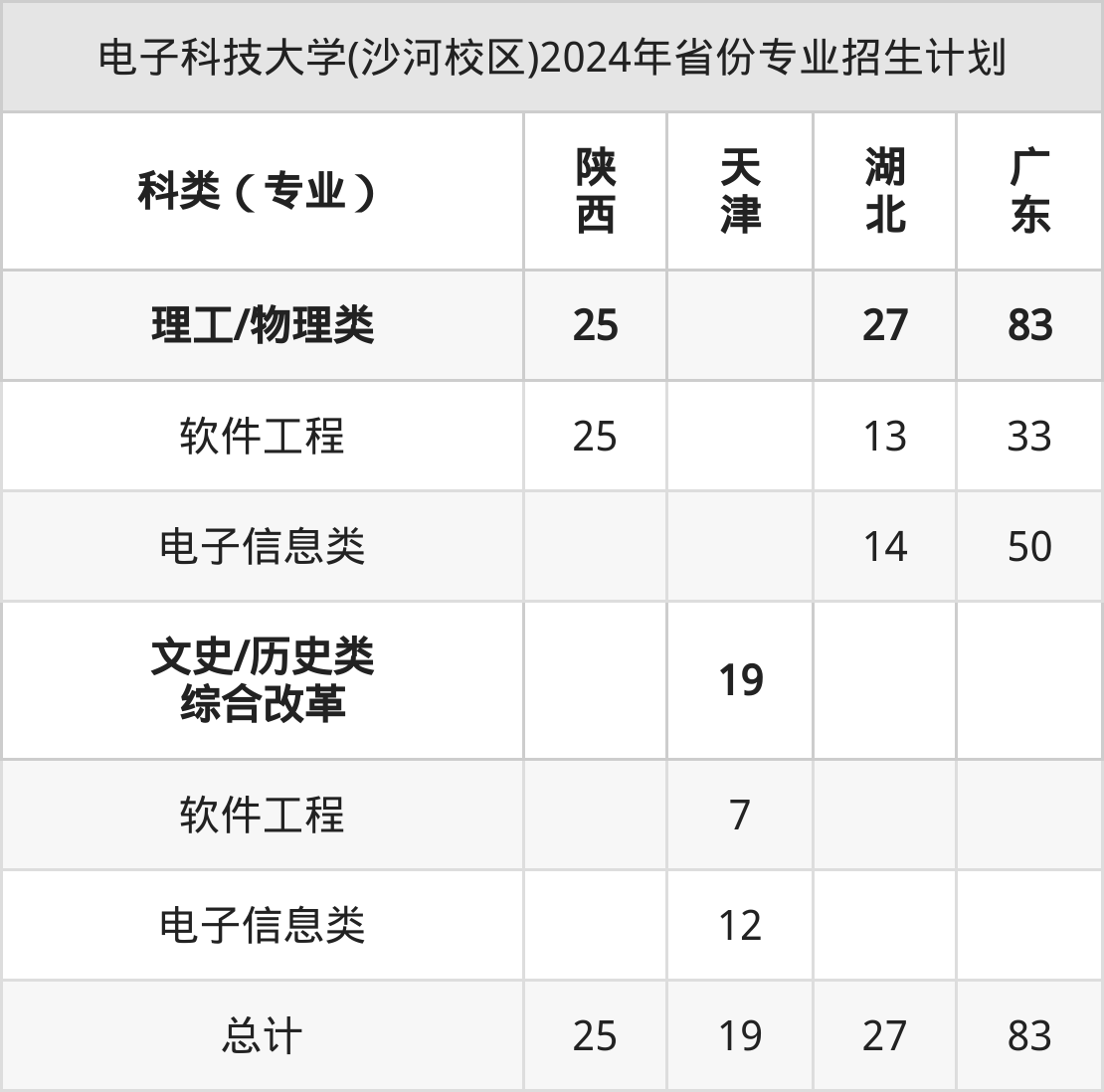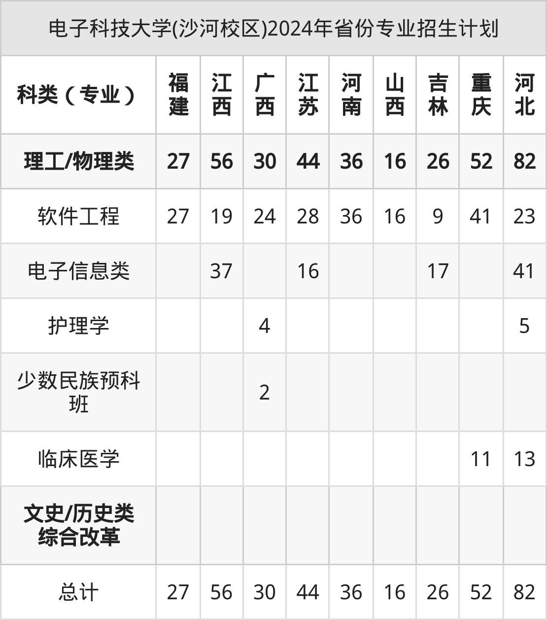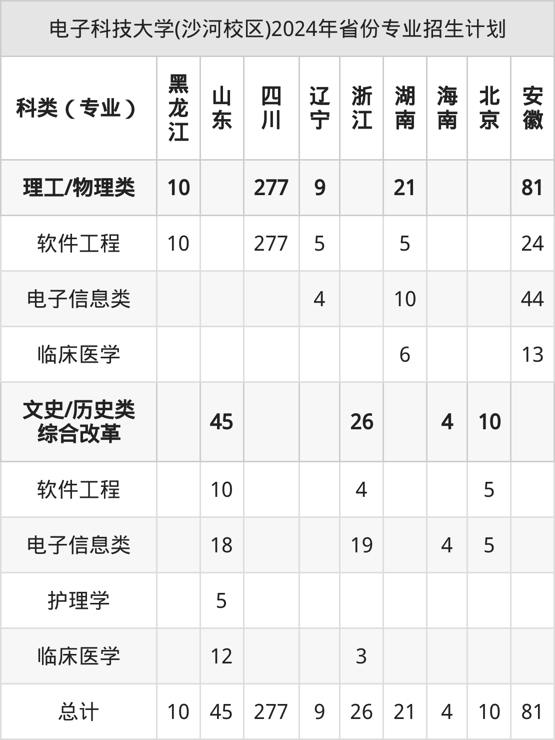 2025年电子科技大学(沙河校区)本科招生计划待公布,下面附上2024年数据,暂供参考: