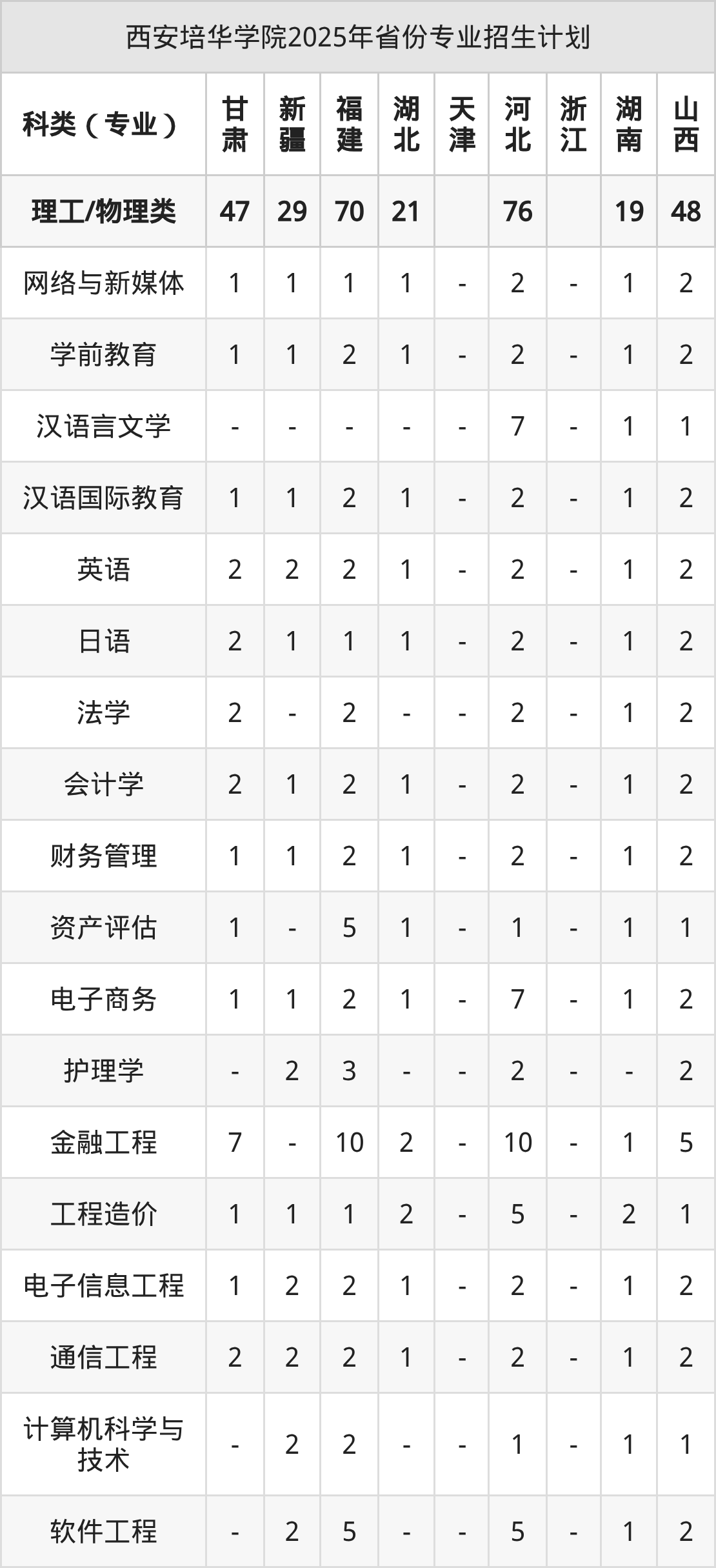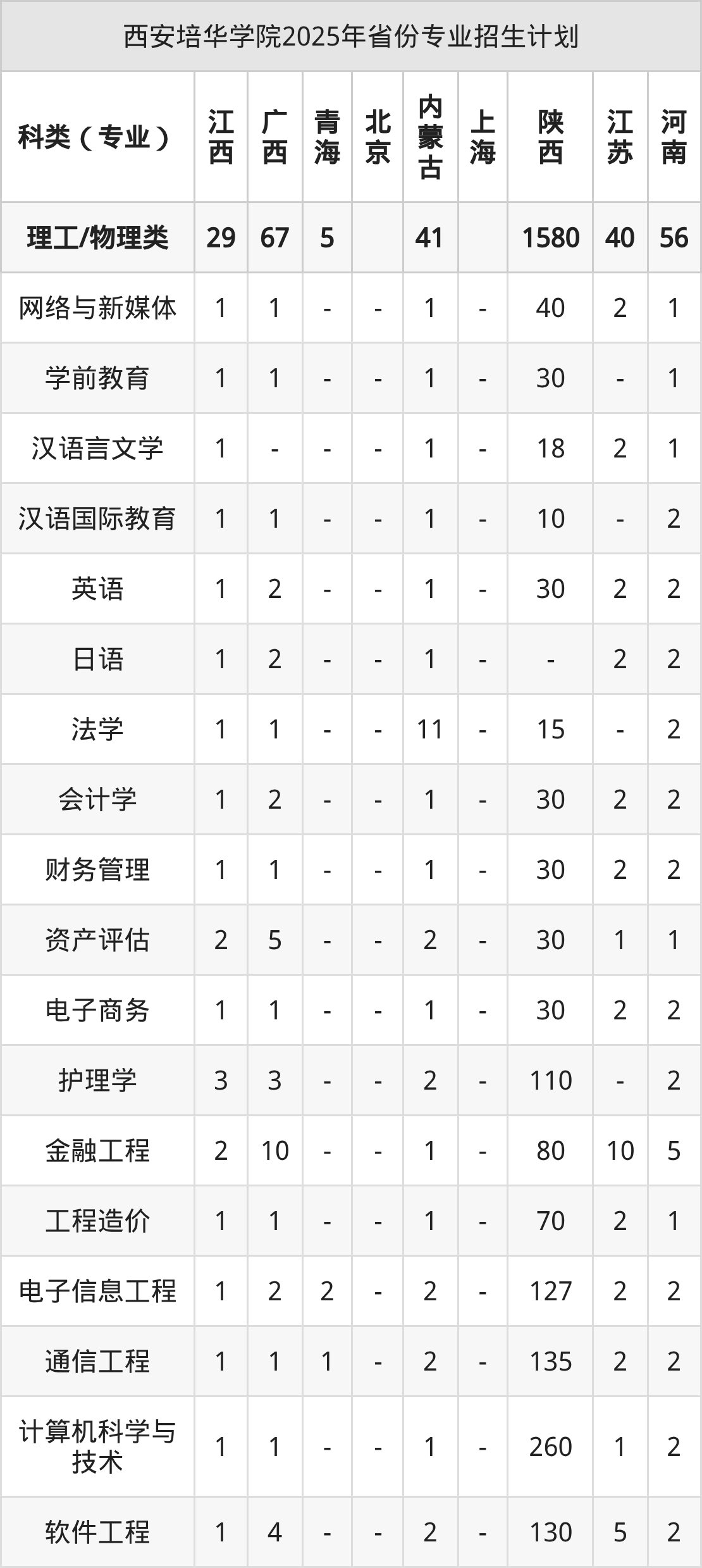 2026年西安培华学院本科招生计划待公布,下面附上2025年数据,暂供参考: