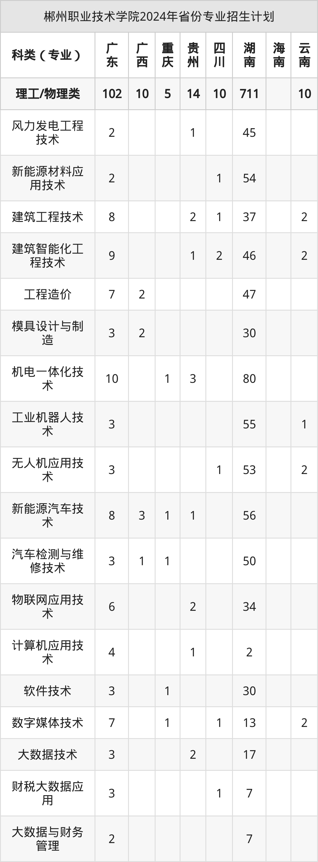 2025年郴州职业技术学院专科招生计划待公布,下面附上2024年数据,暂供参考: