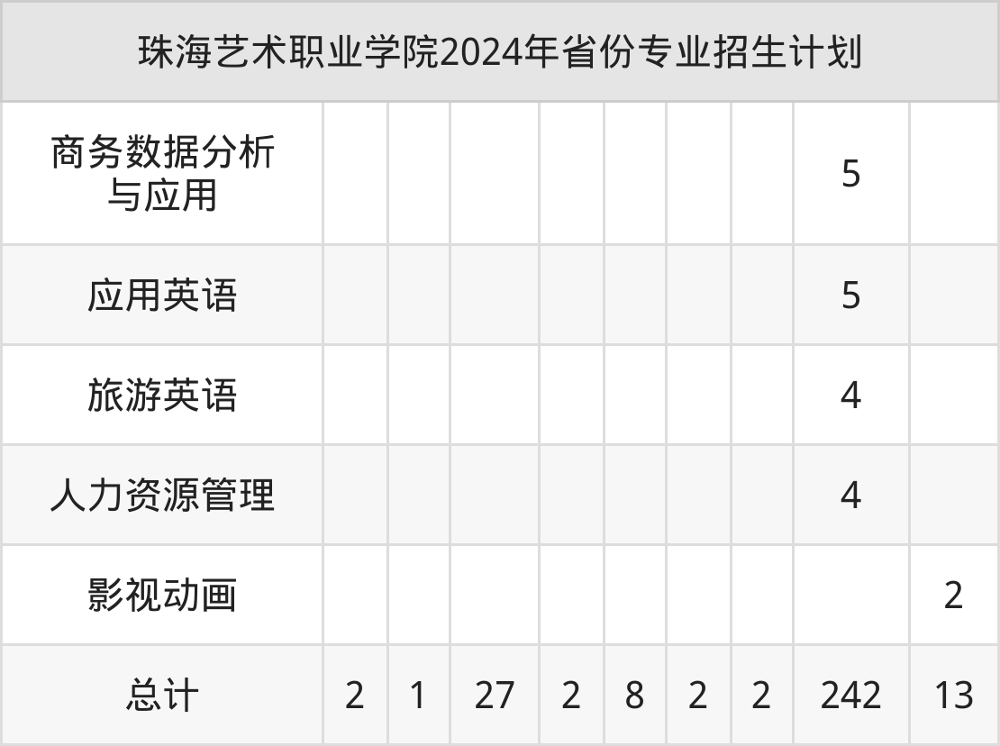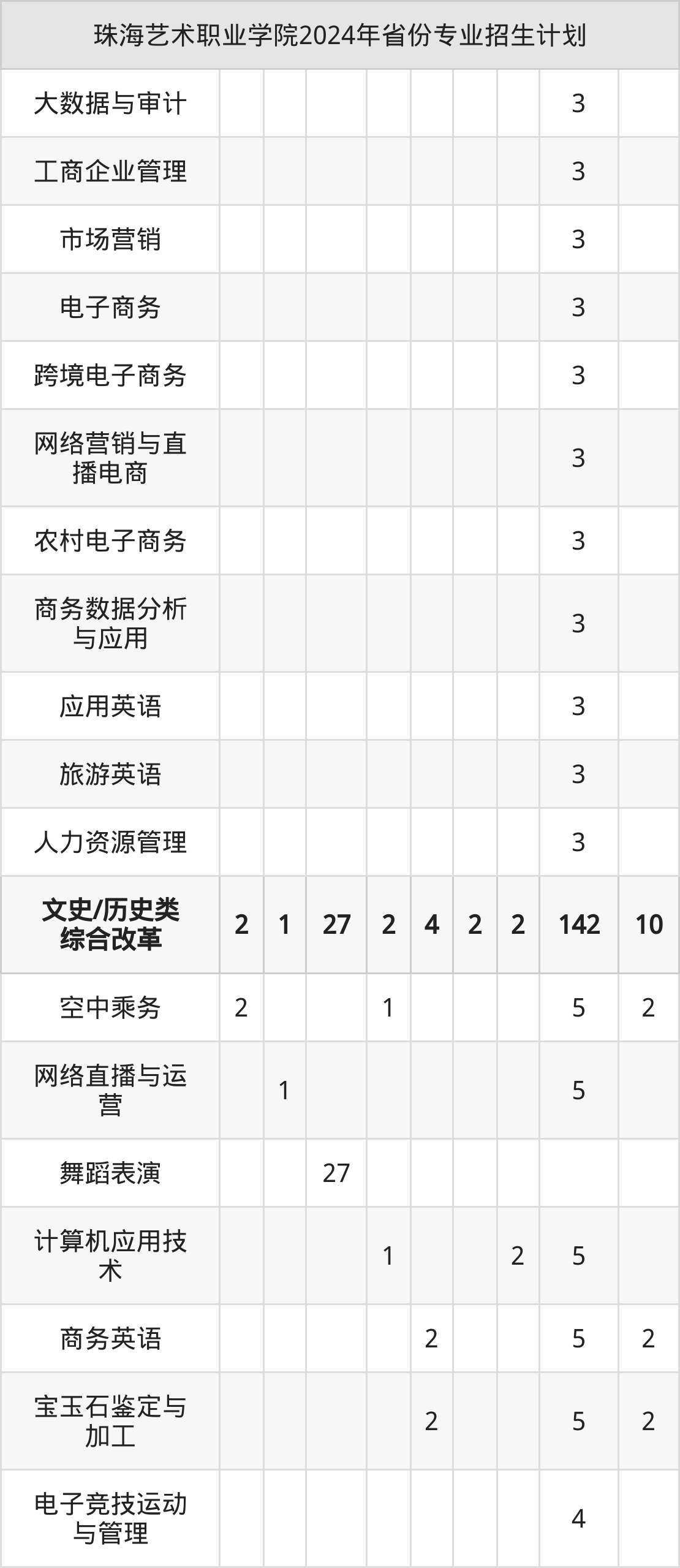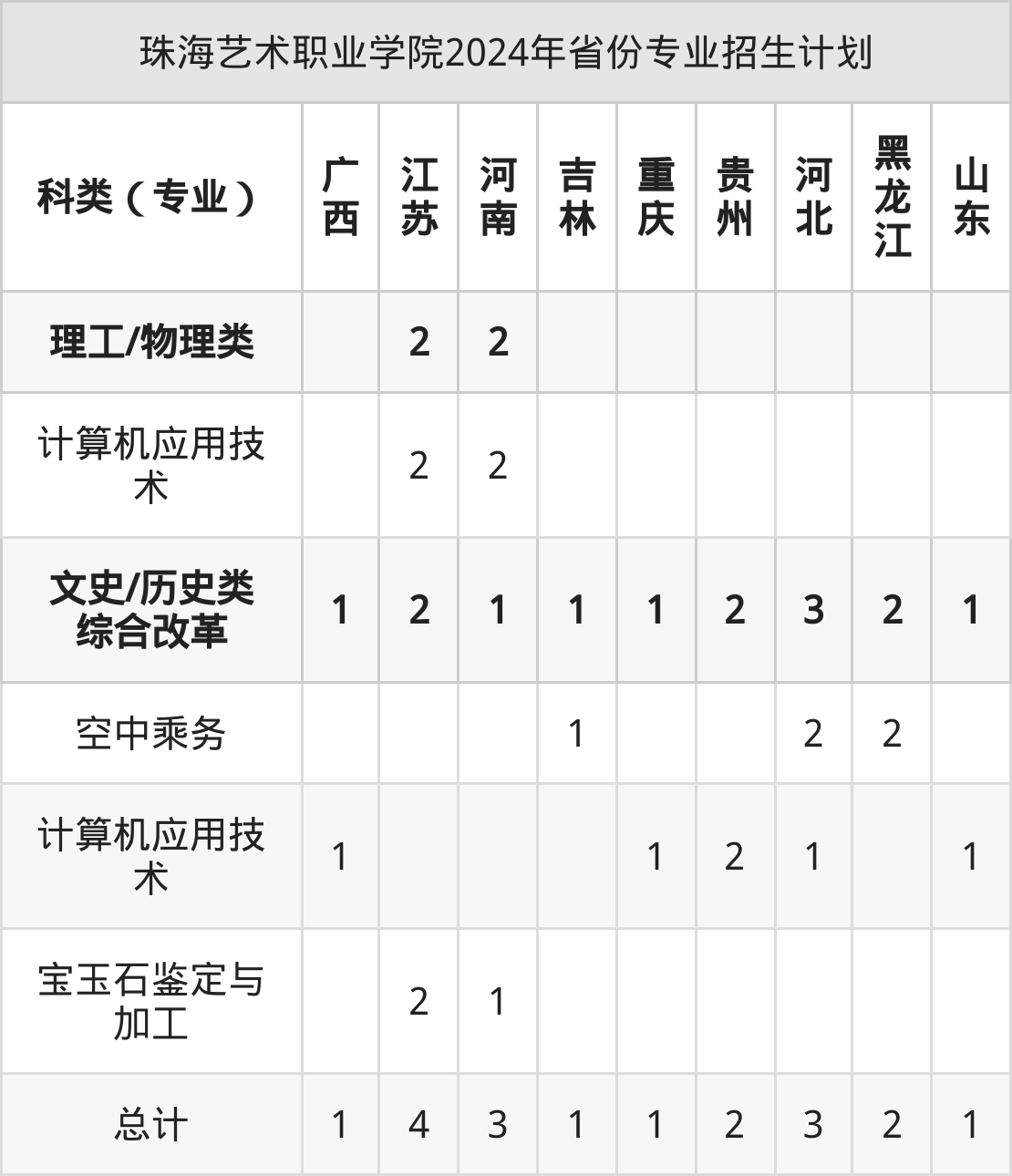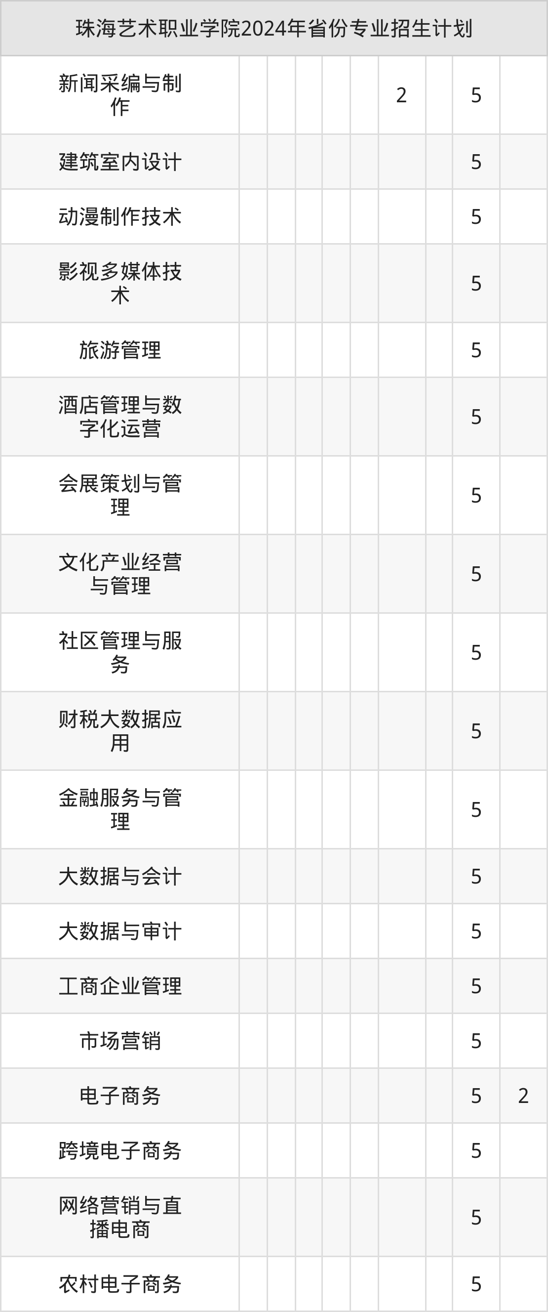 2025年珠海艺术职业学院专科招生计划待公布,下面附上2024年数据,暂供参考: