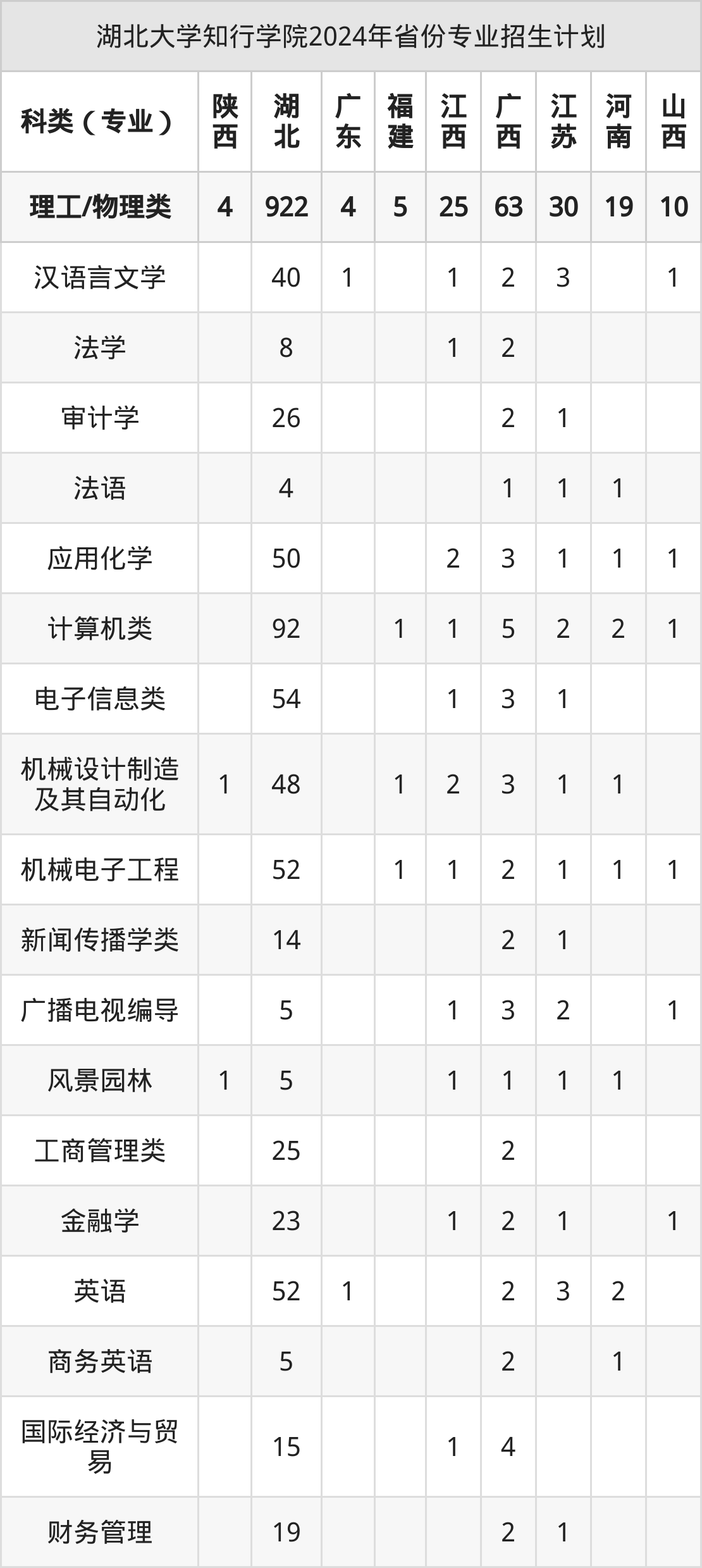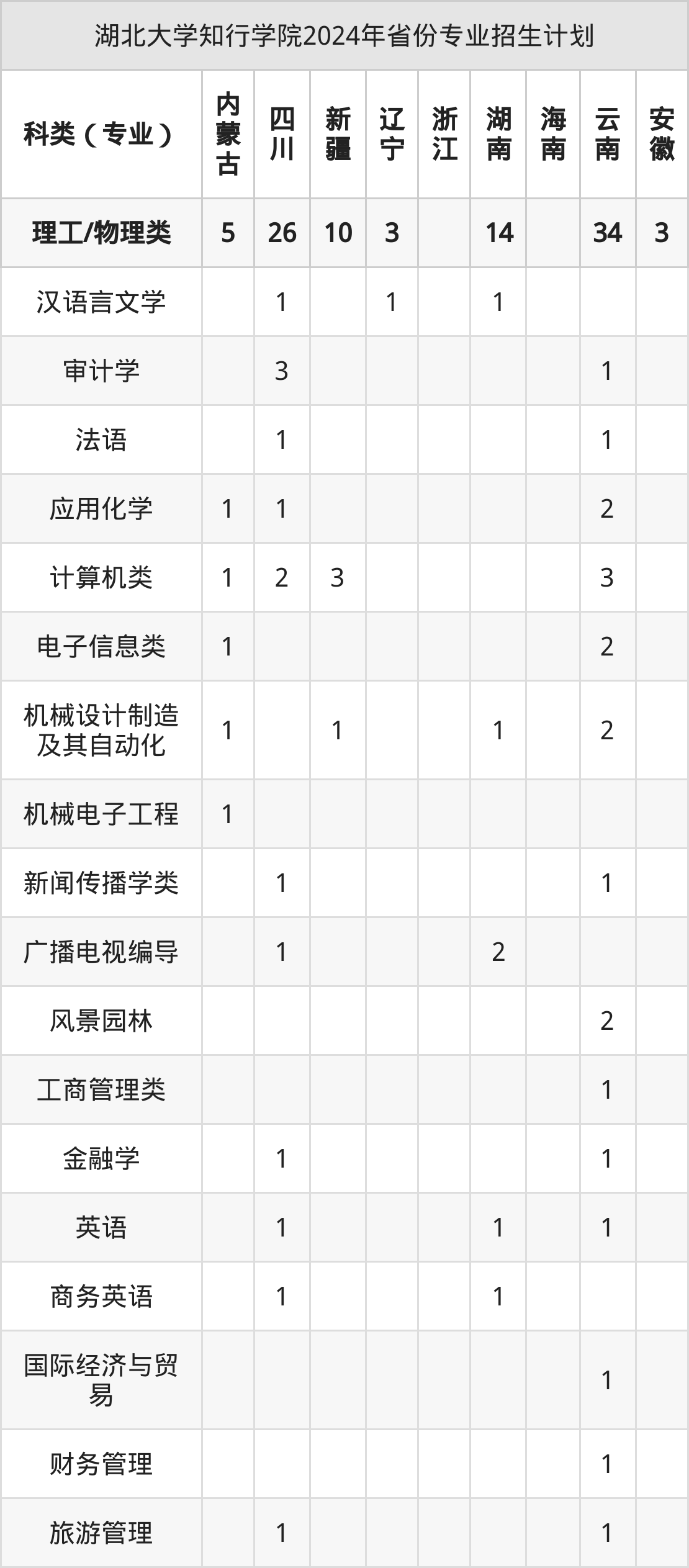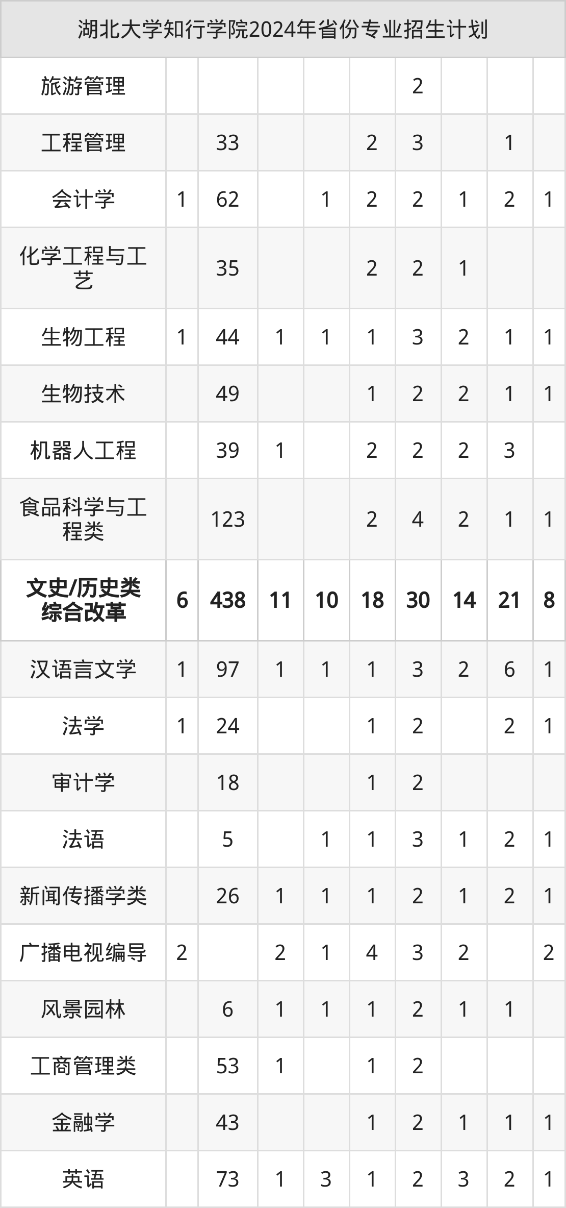 2025年湖北大学知行学院本科招生计划待公布,下面附上2024年数据,暂供参考: