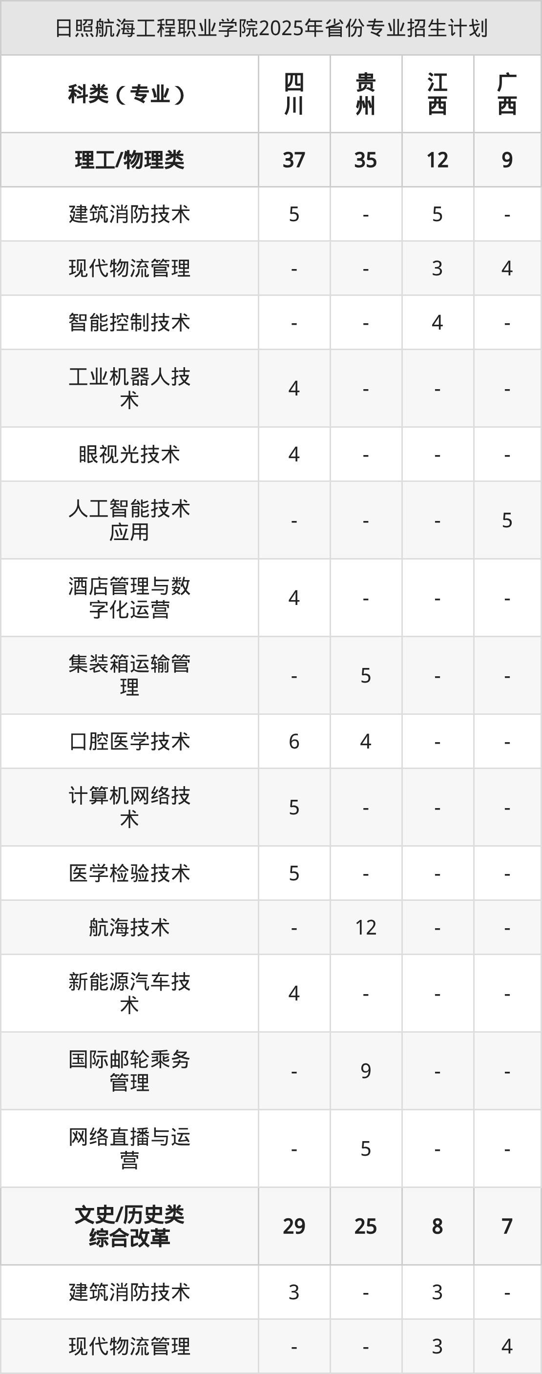 2026年日照航海工程职业学院专科招生计划待公布,下面附上2025年数据,暂供参考: