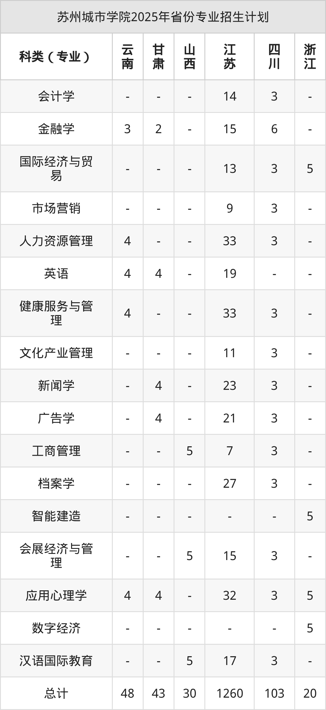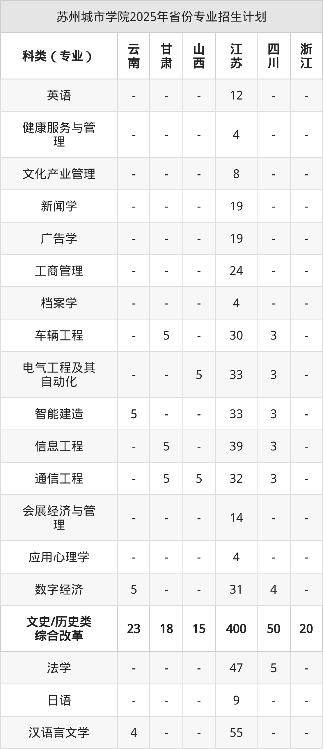 2026年苏州城市学院本科招生计划待公布,下面附上2025年数据,暂供参考: