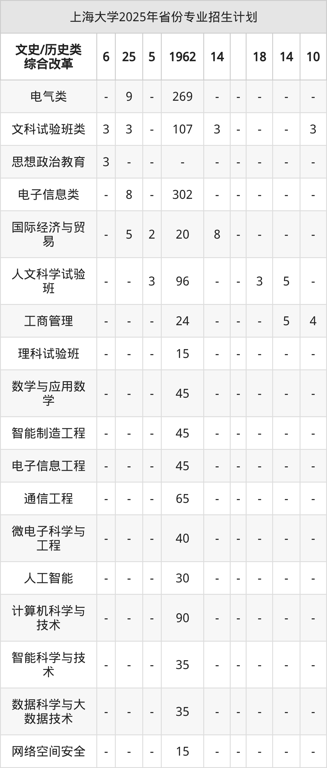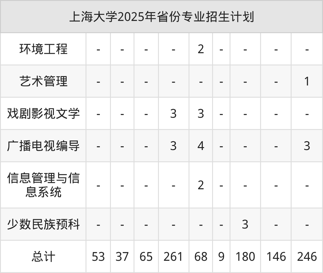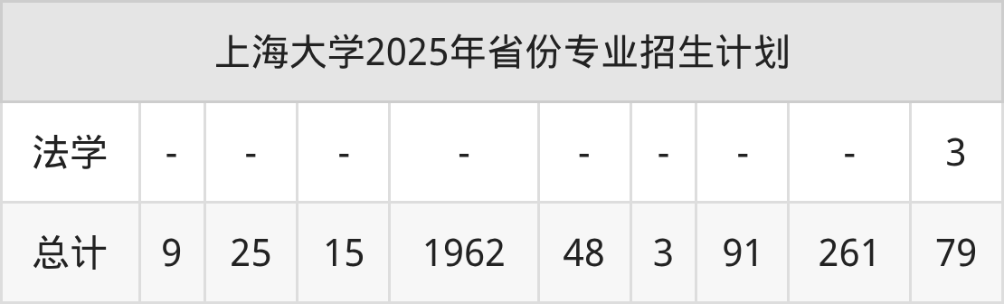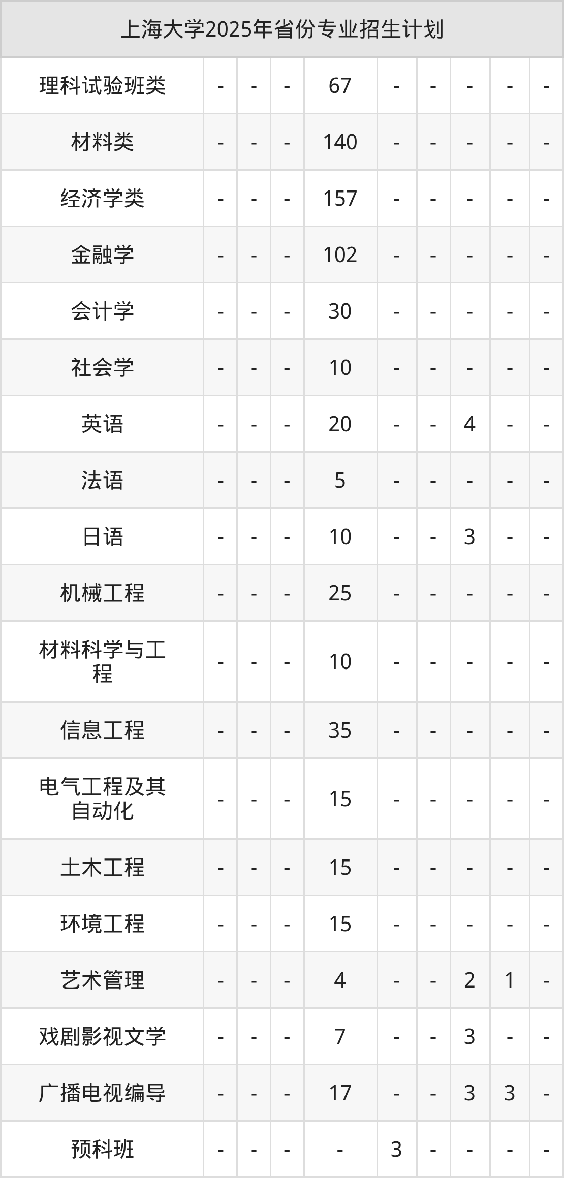 2026年上海大学本科招生计划待公布,下面附上2025年数据,暂供参考: