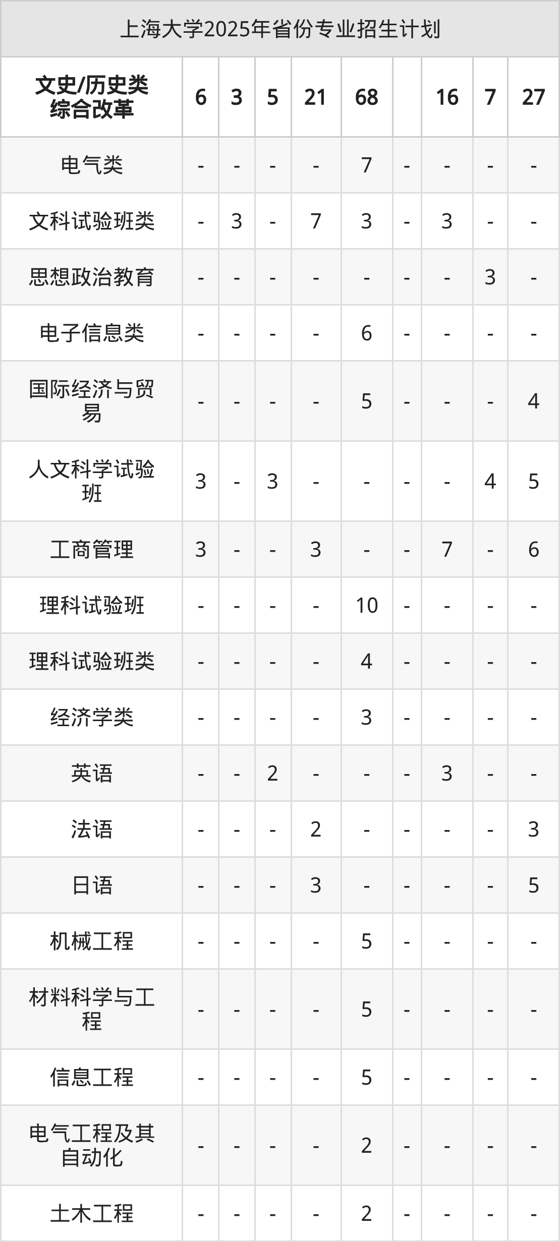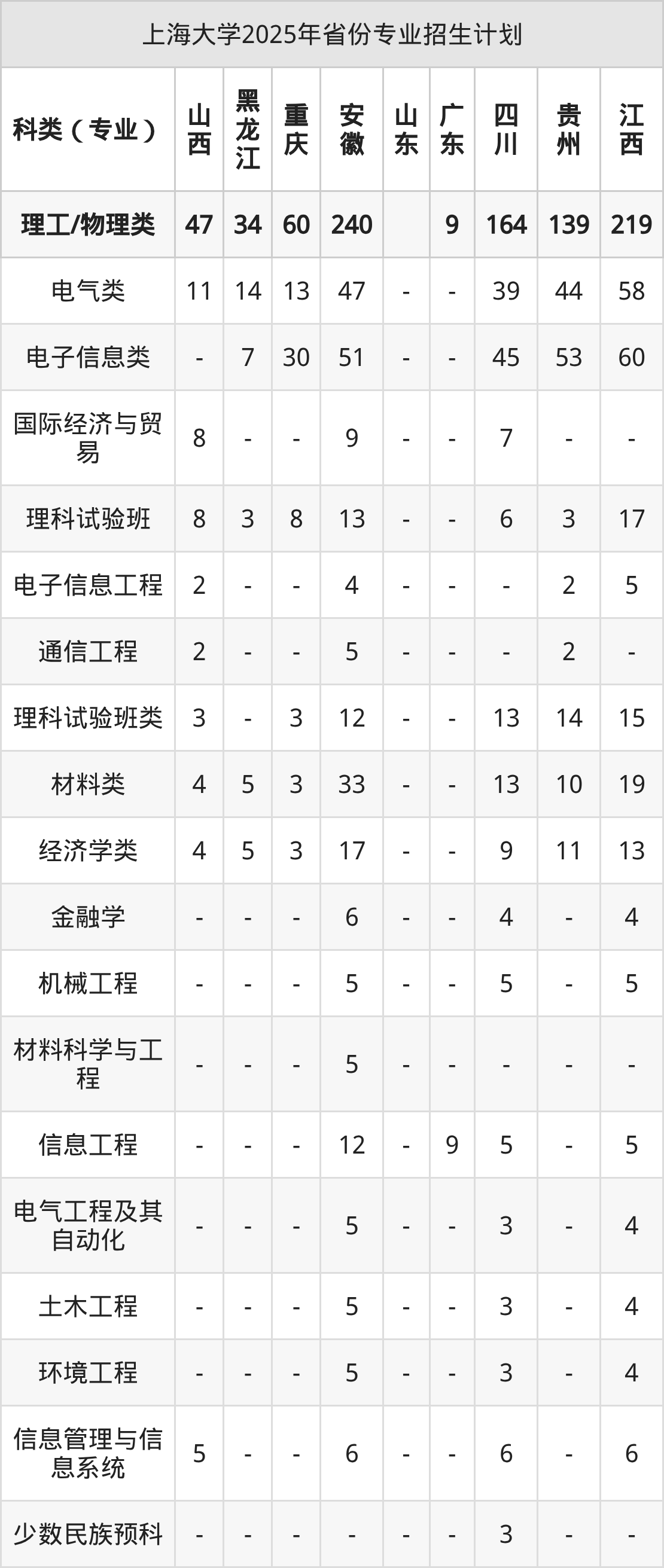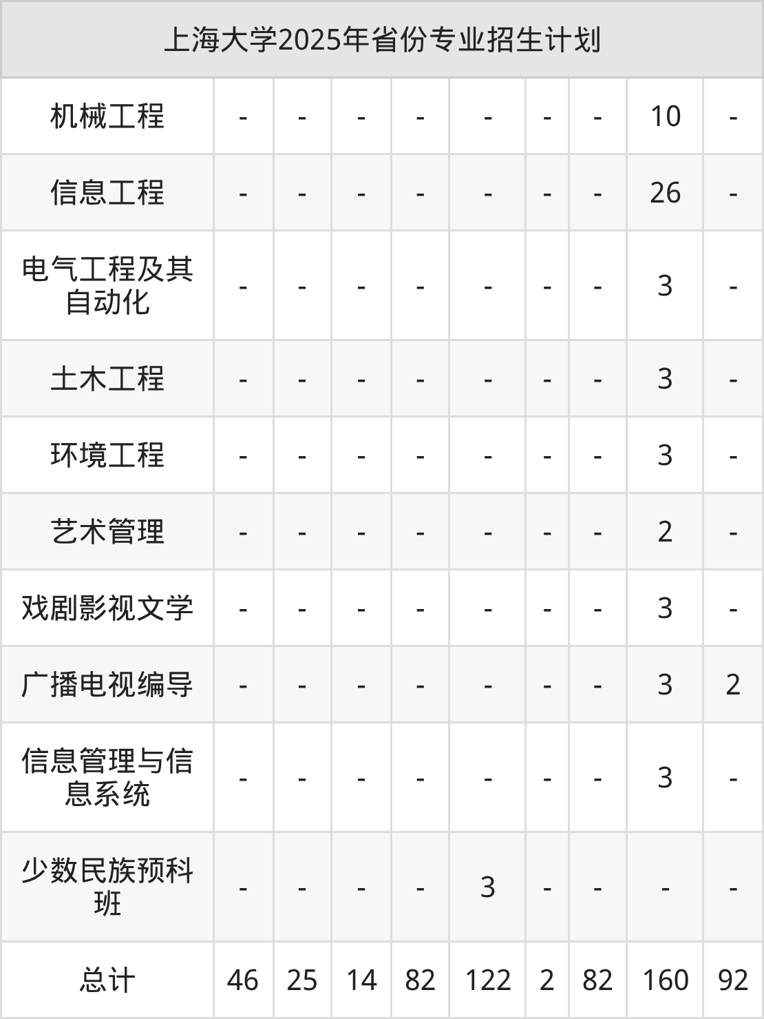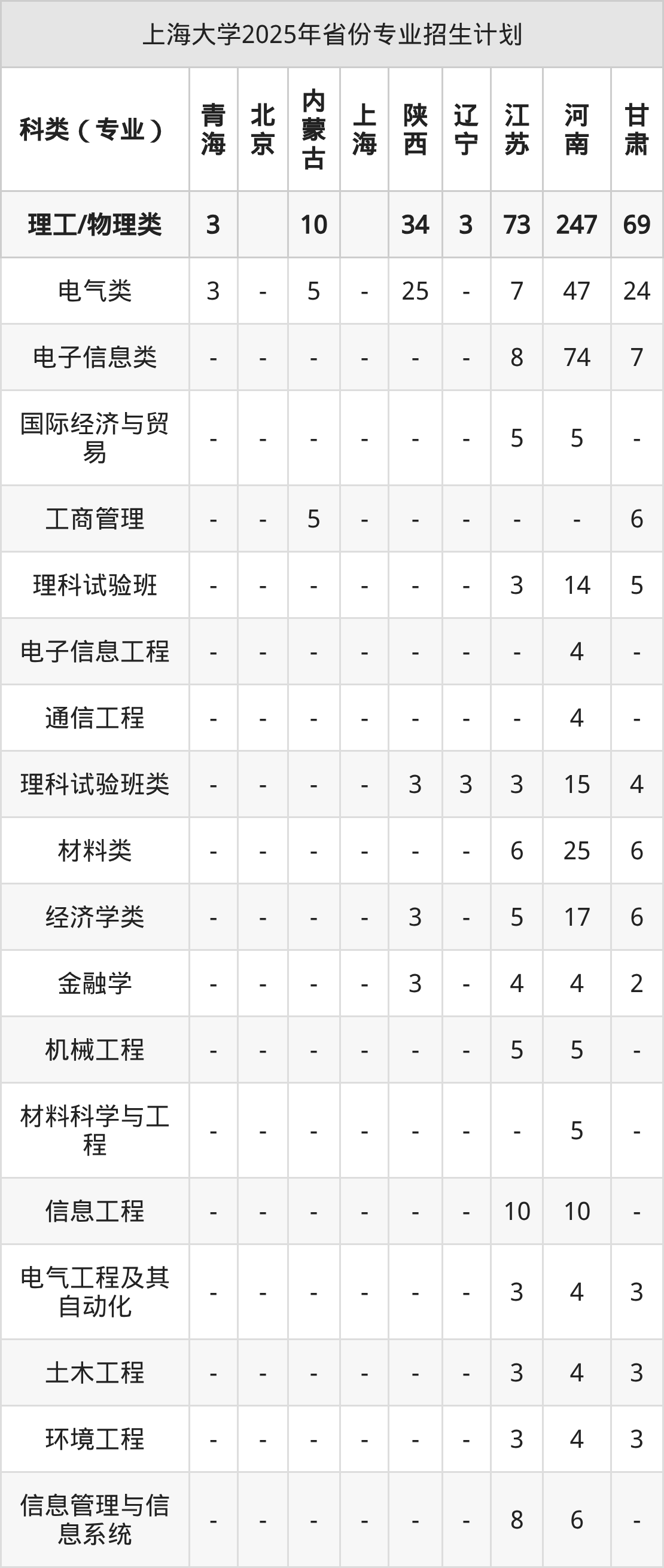 2026年上海大学本科招生计划待公布,下面附上2025年数据,暂供参考: