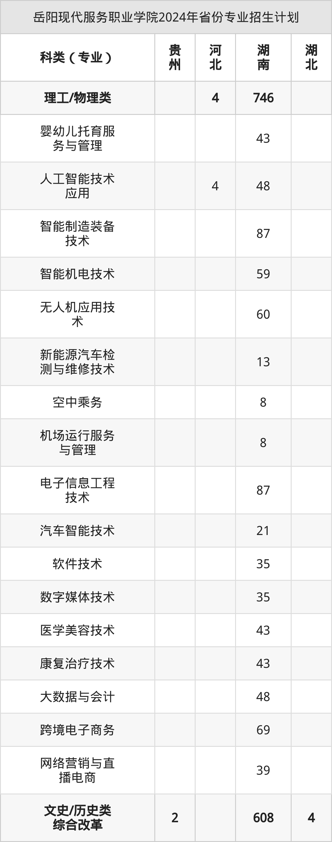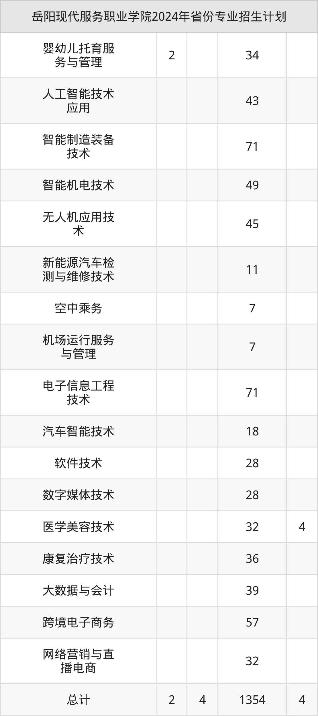 2025年岳阳现代服务职业学院专科招生计划待公布,下面附上2024年数据,暂供参考: