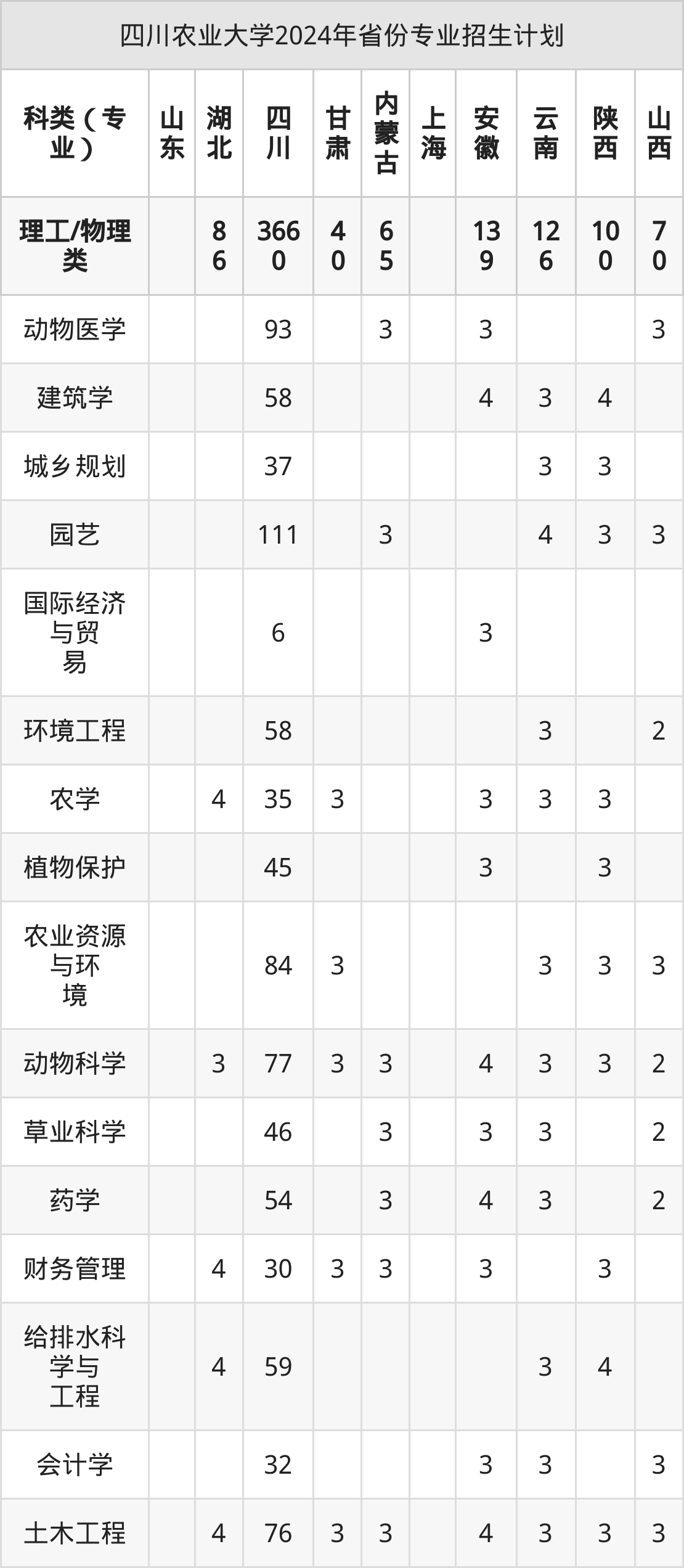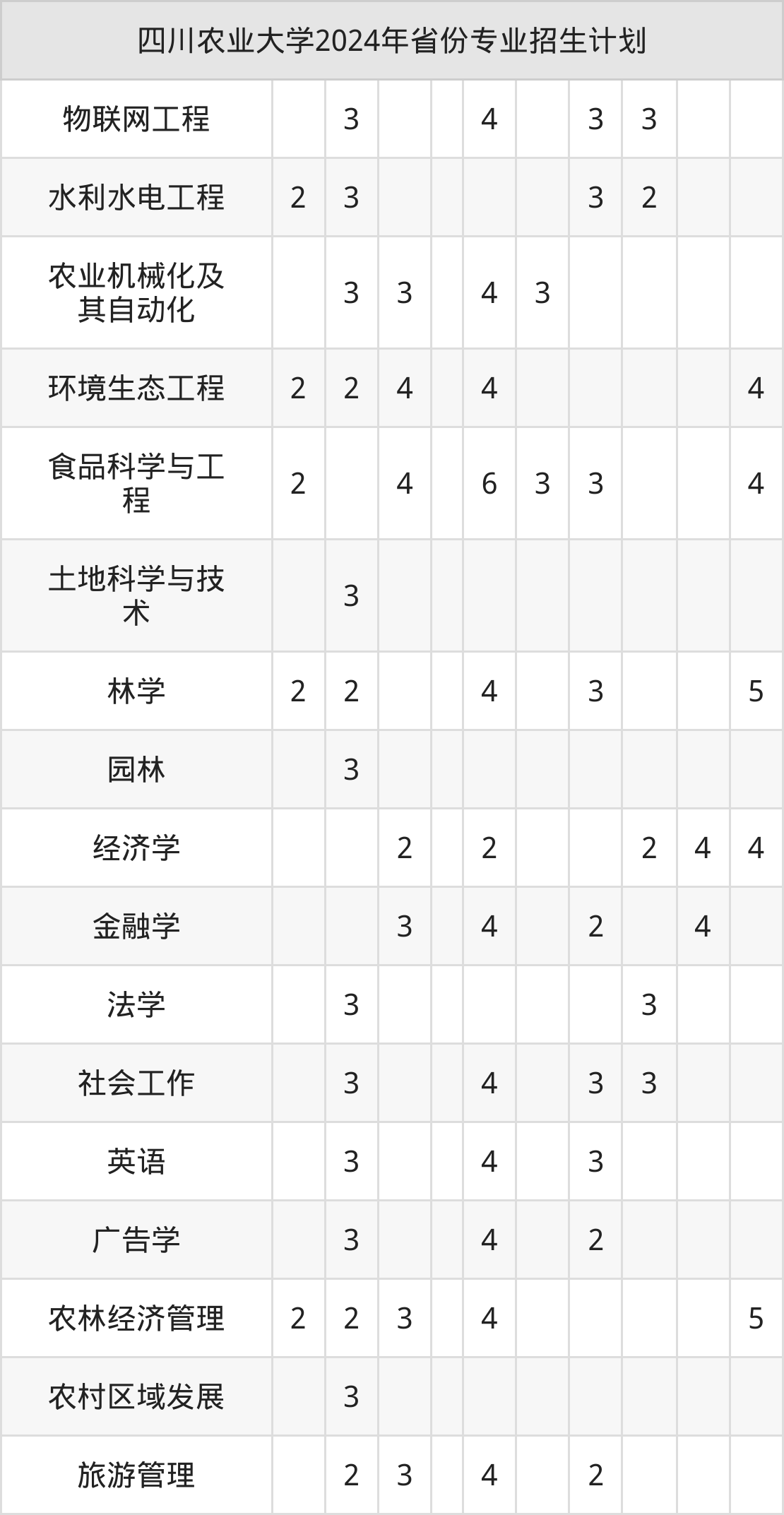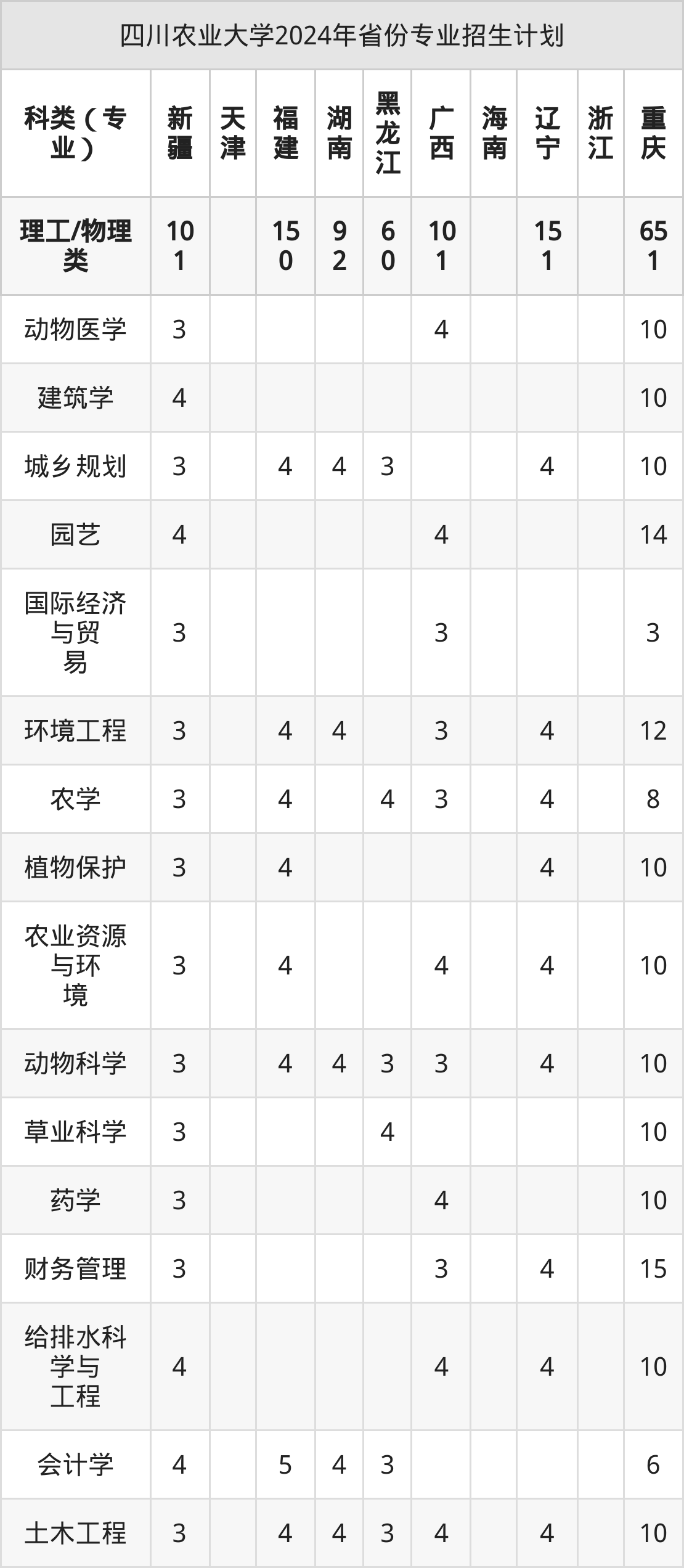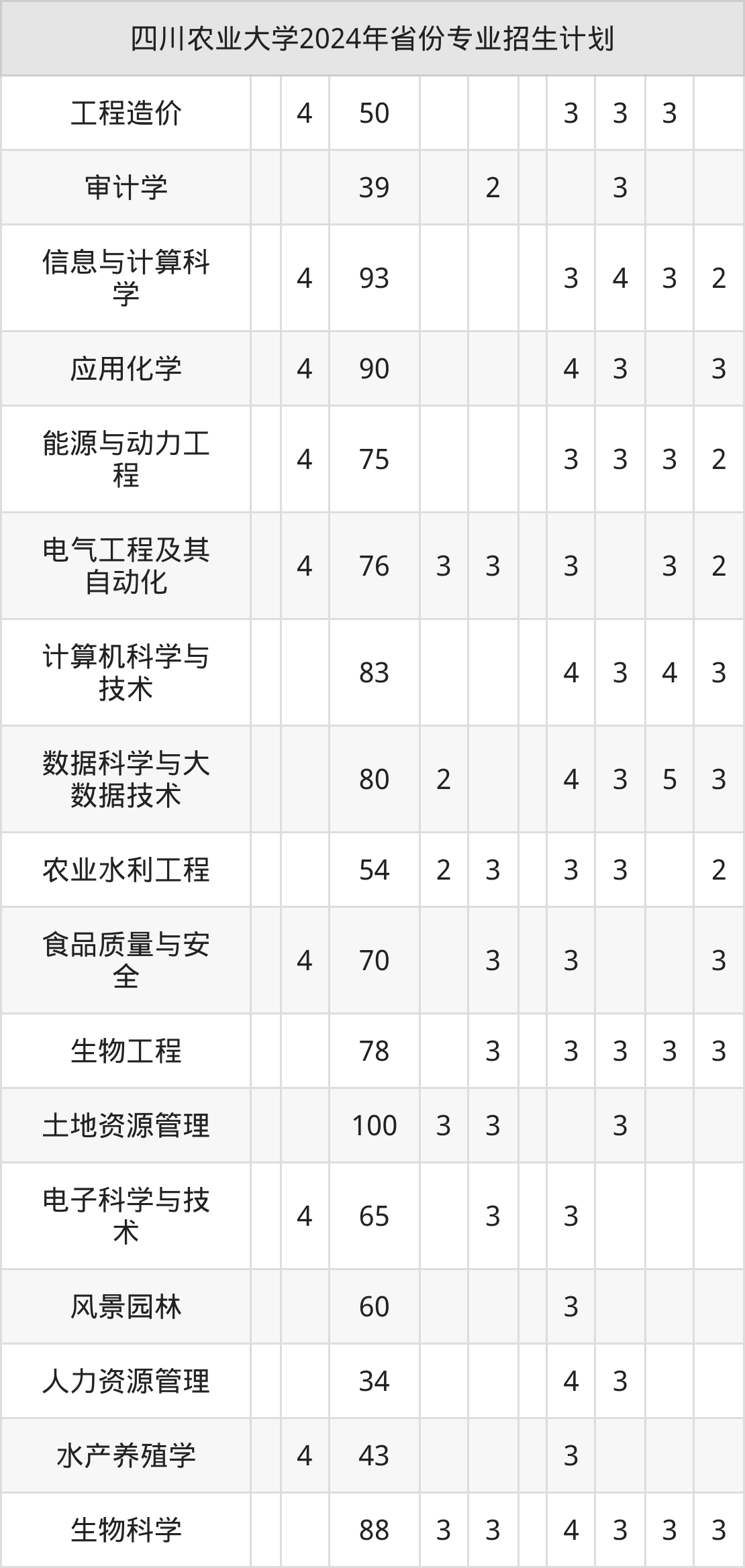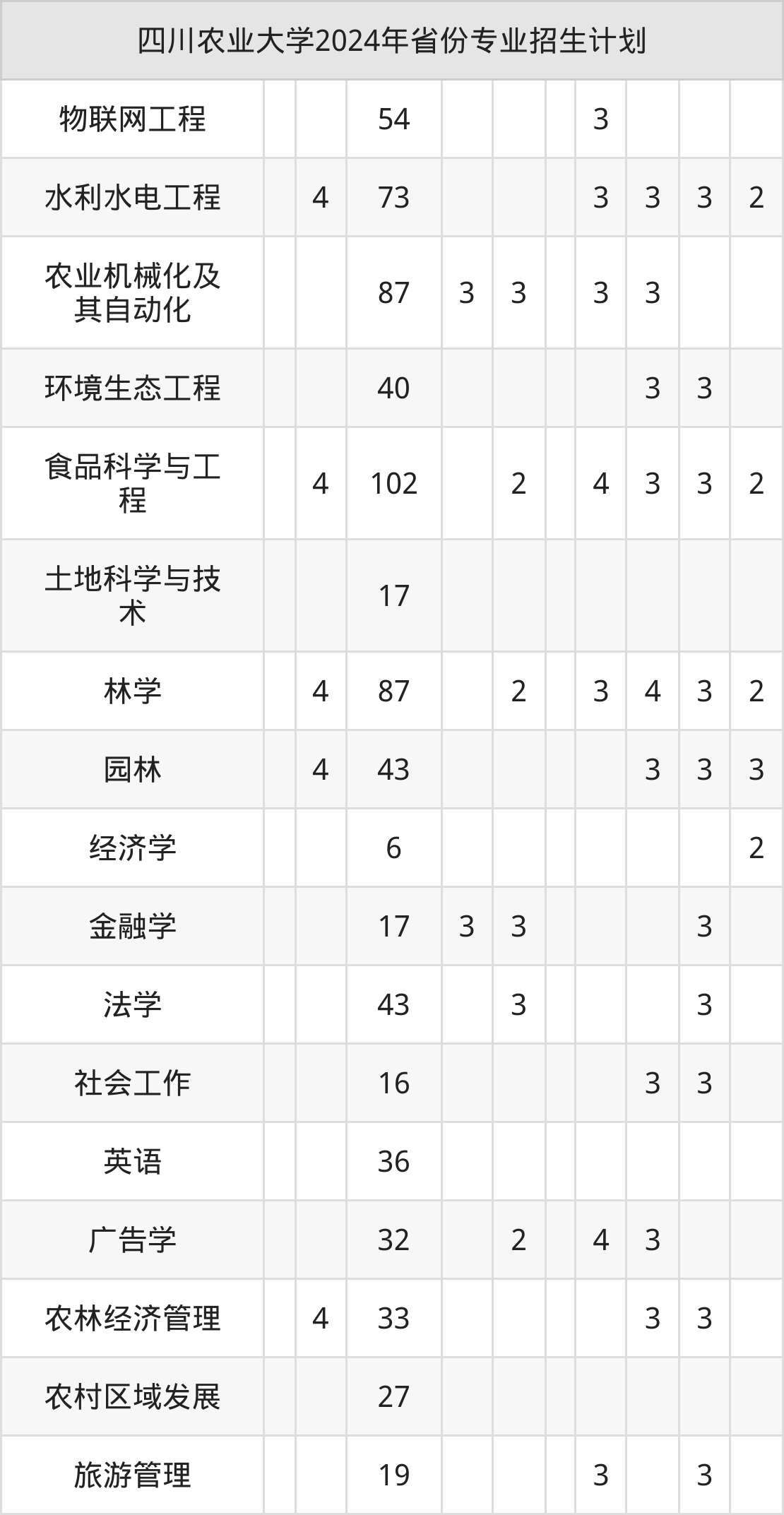 2025年四川农业大学本科招生计划待公布,下面附上2024年数据,暂供参考: