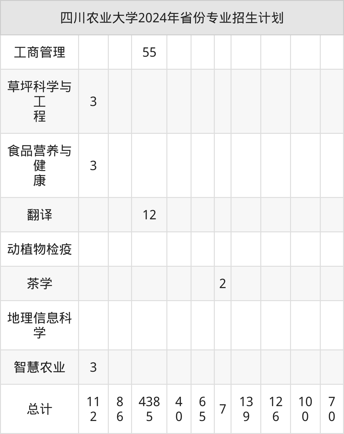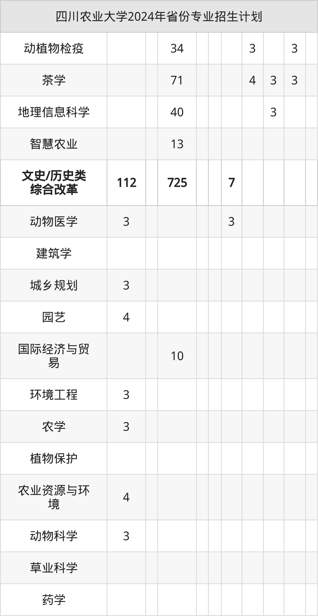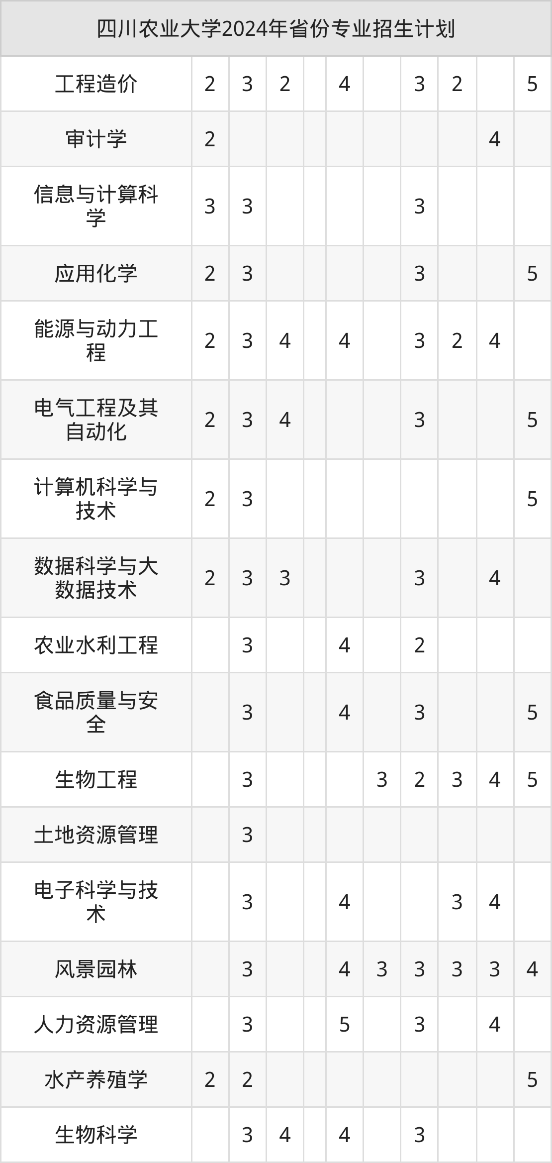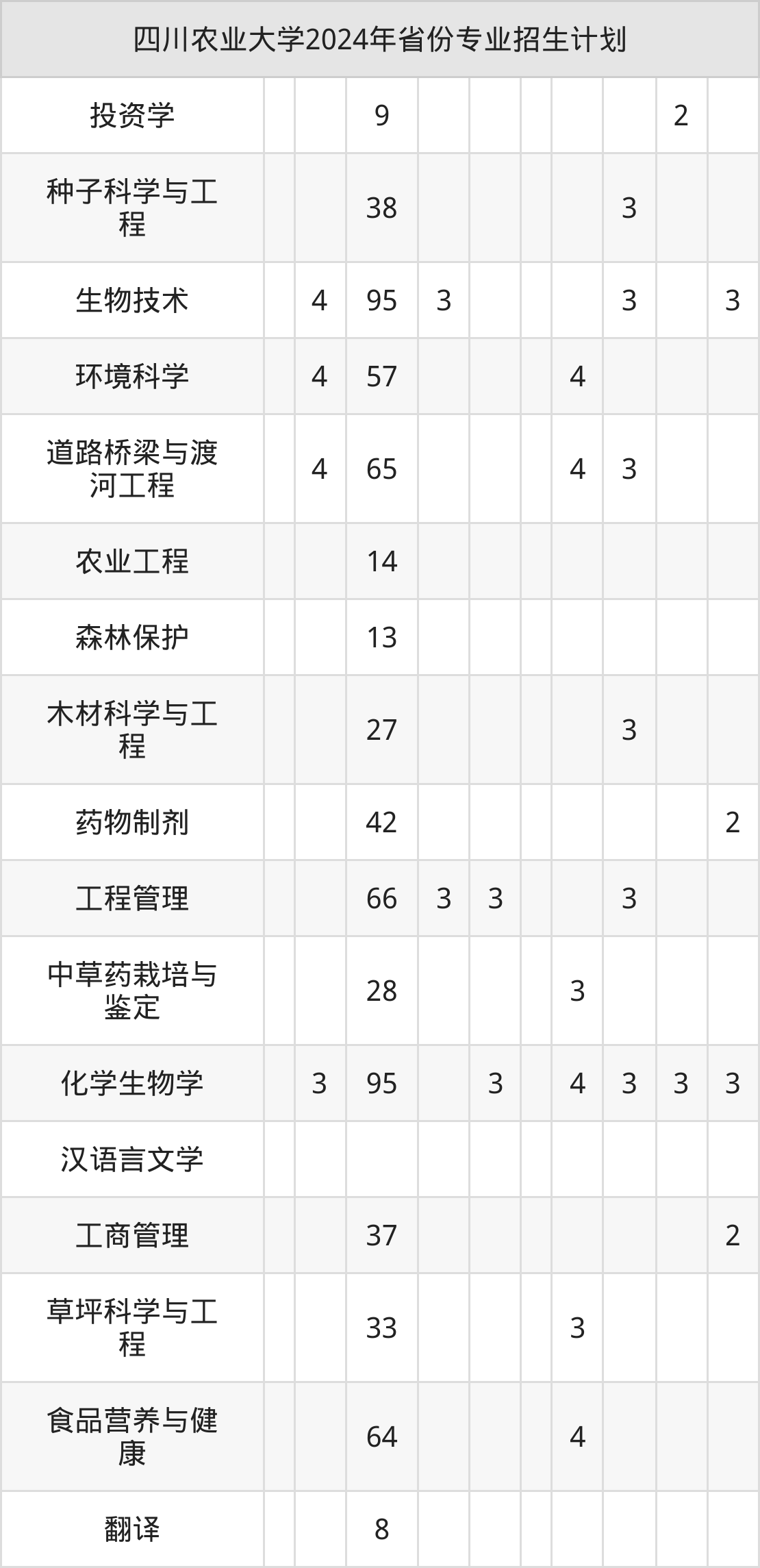 2025年四川农业大学本科招生计划待公布,下面附上2024年数据,暂供参考: