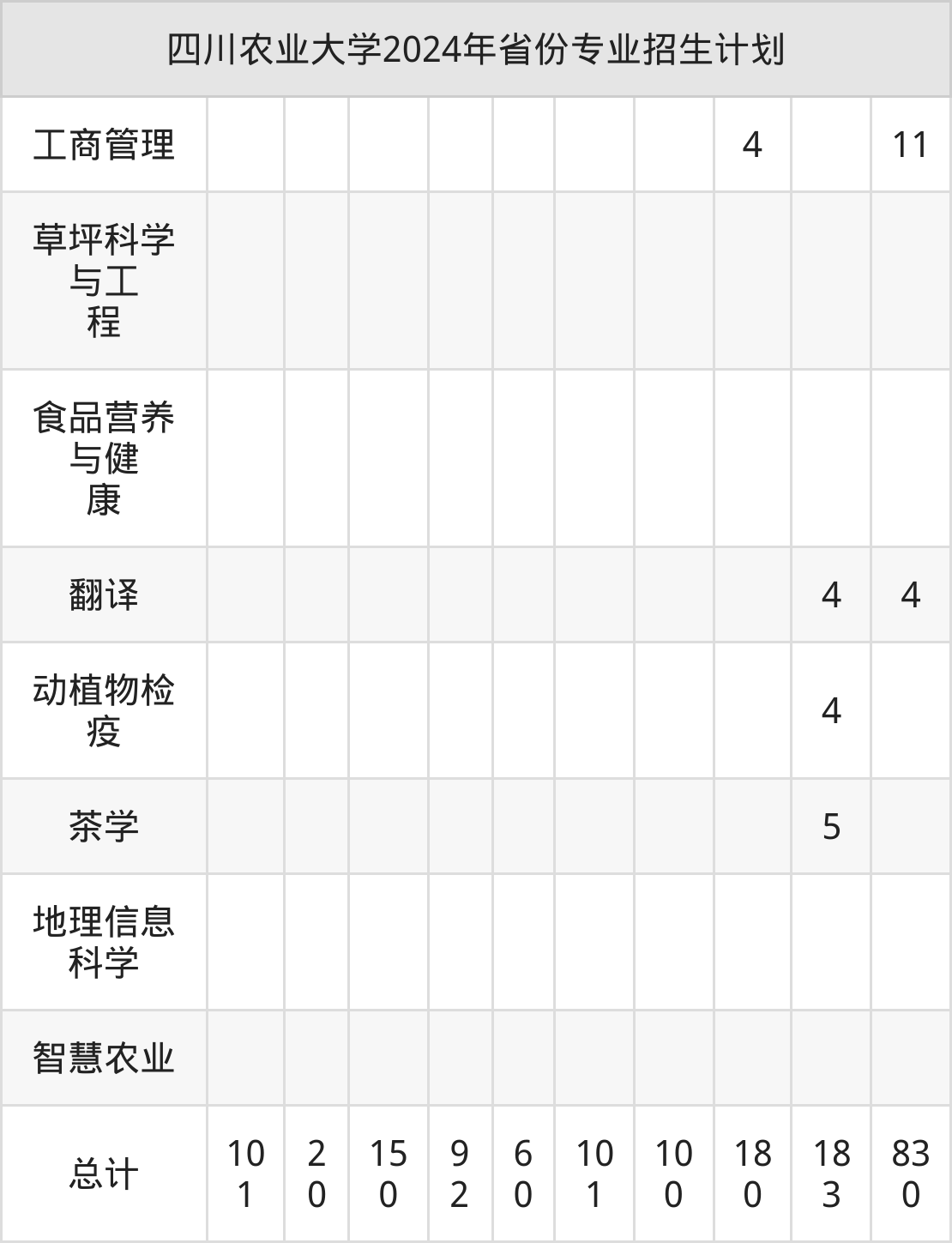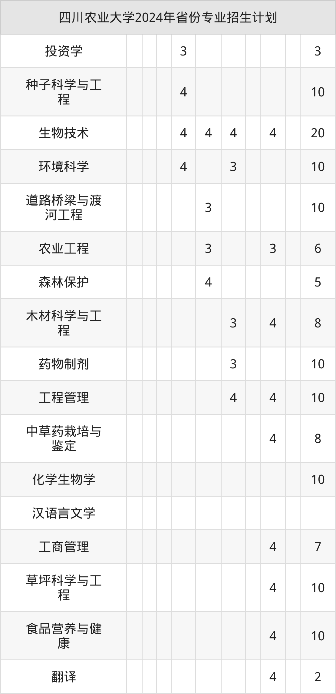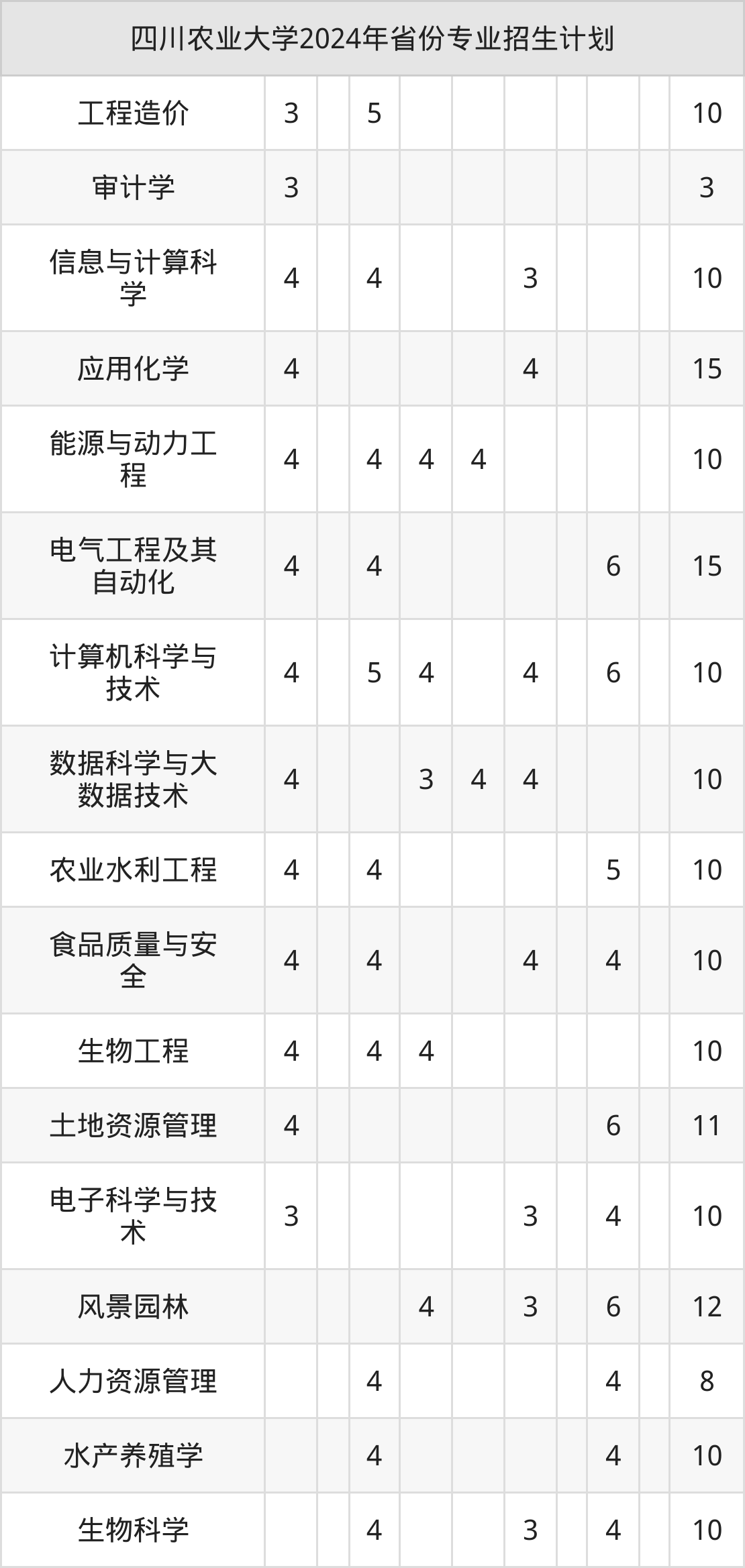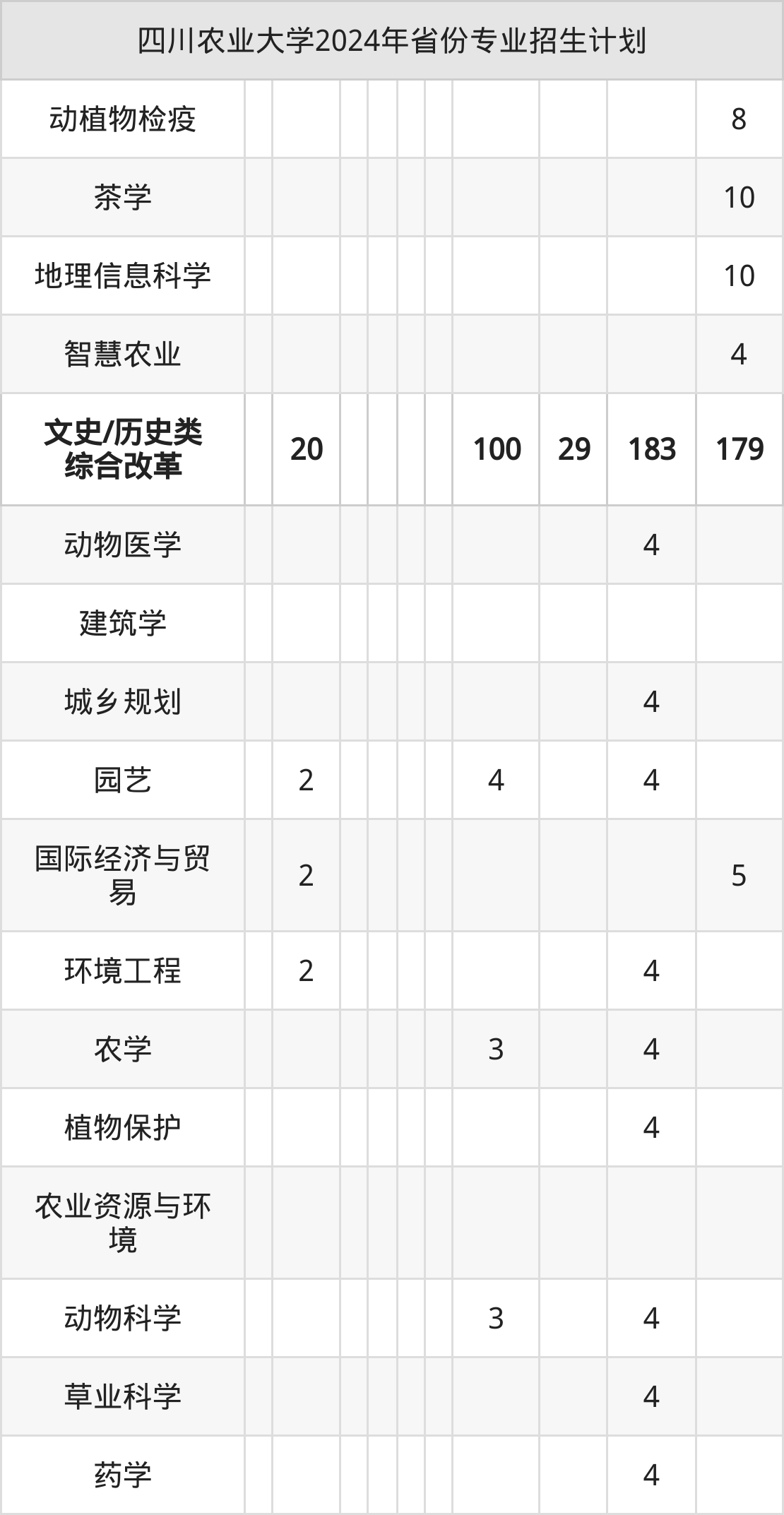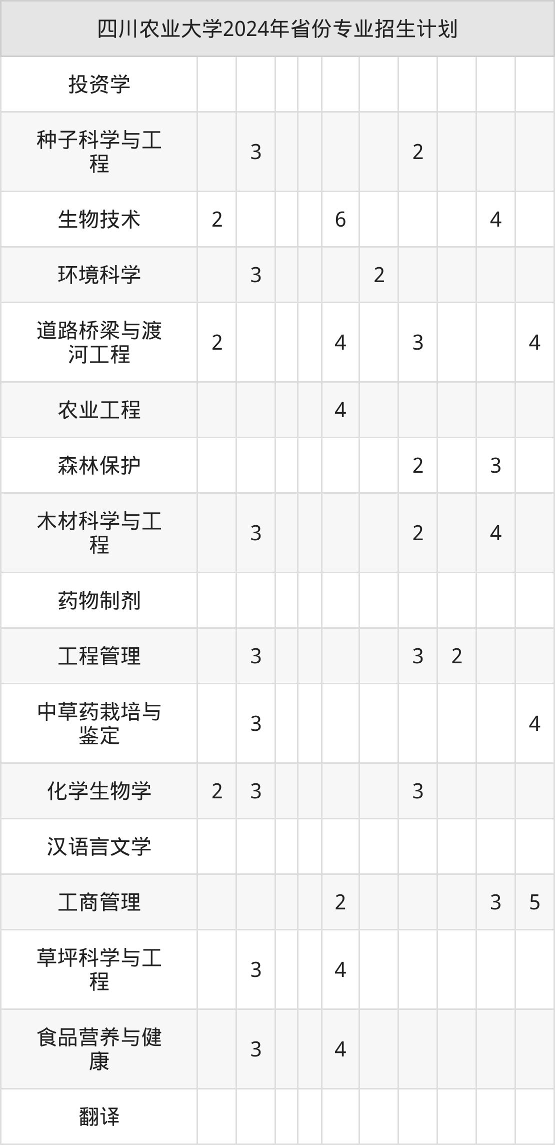 2025年四川农业大学本科招生计划待公布,下面附上2024年数据,暂供参考: