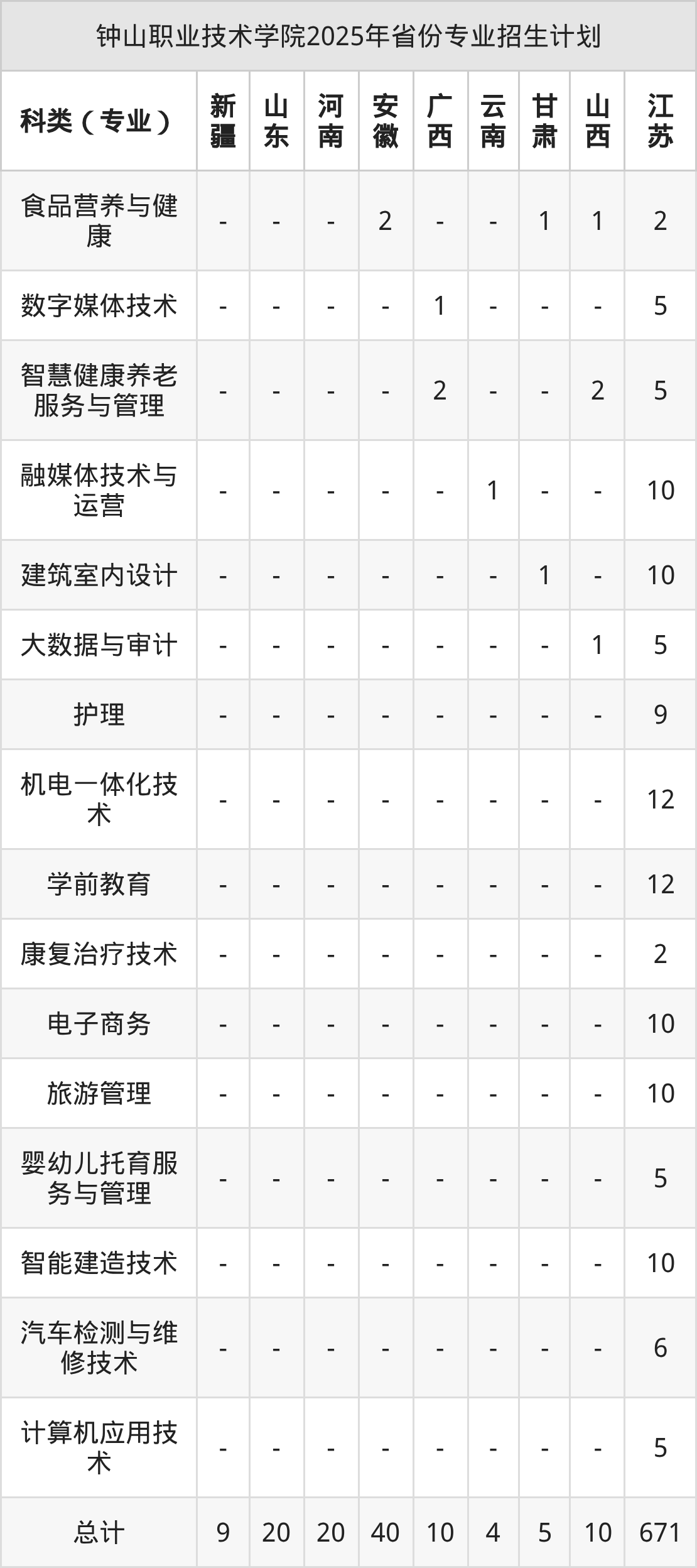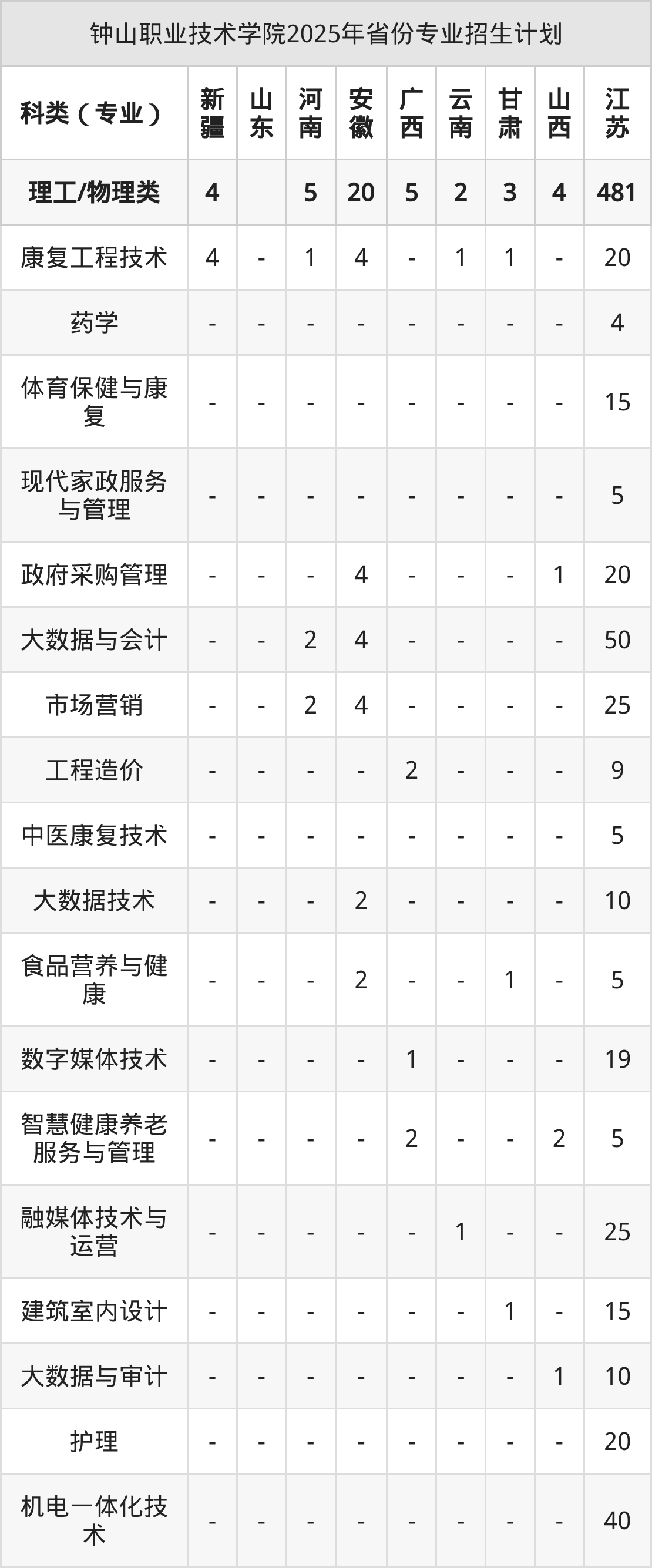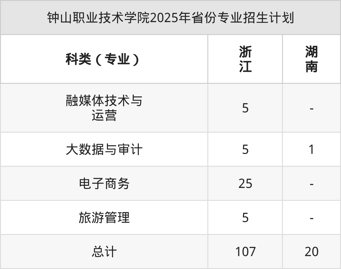 2026年钟山职业技术学院专科招生计划待公布,下面附上2025年数据,暂供参考:
