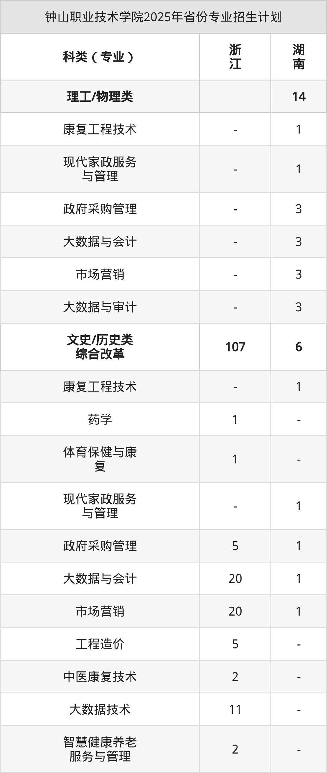 | 钟山职业技术学院2025年专科最低分汇总 | ||||