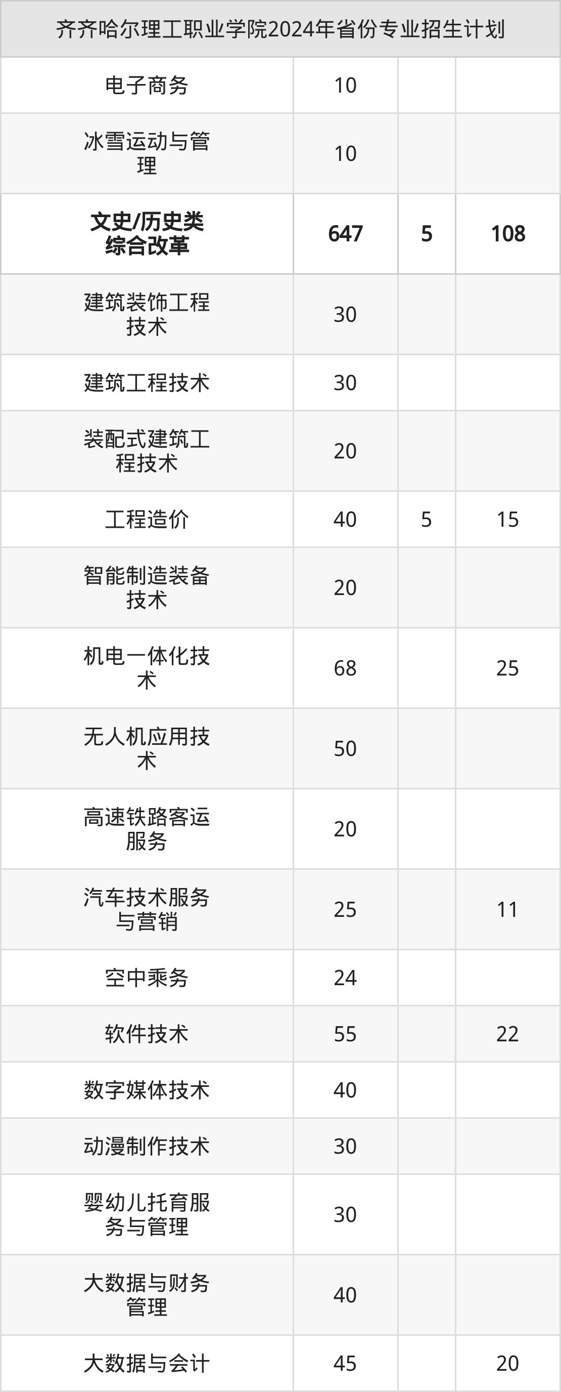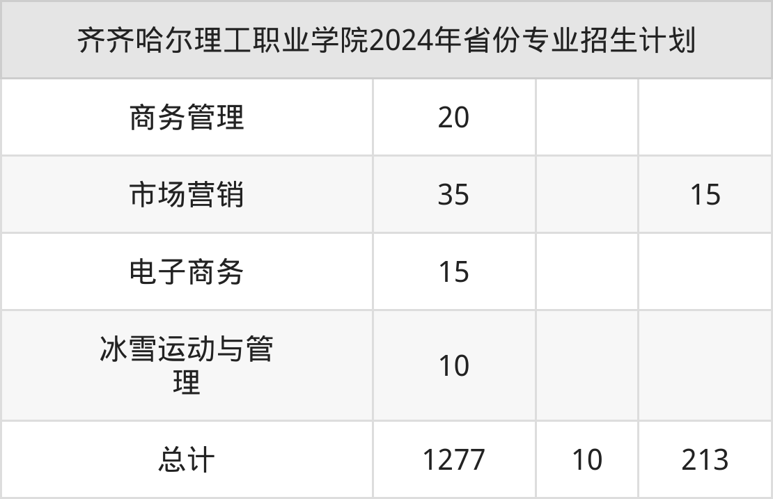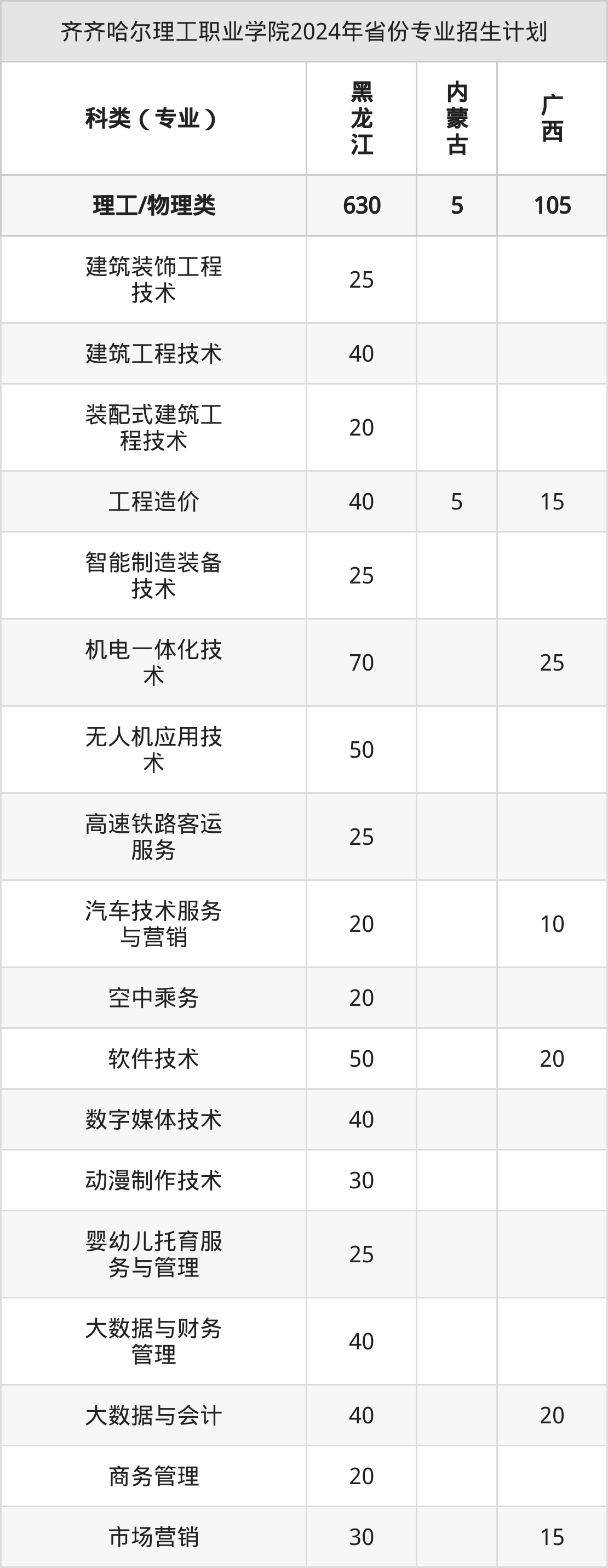 2025年齐齐哈尔理工职业学院专科招生计划待公布,下面附上2024年数据,暂供参考: