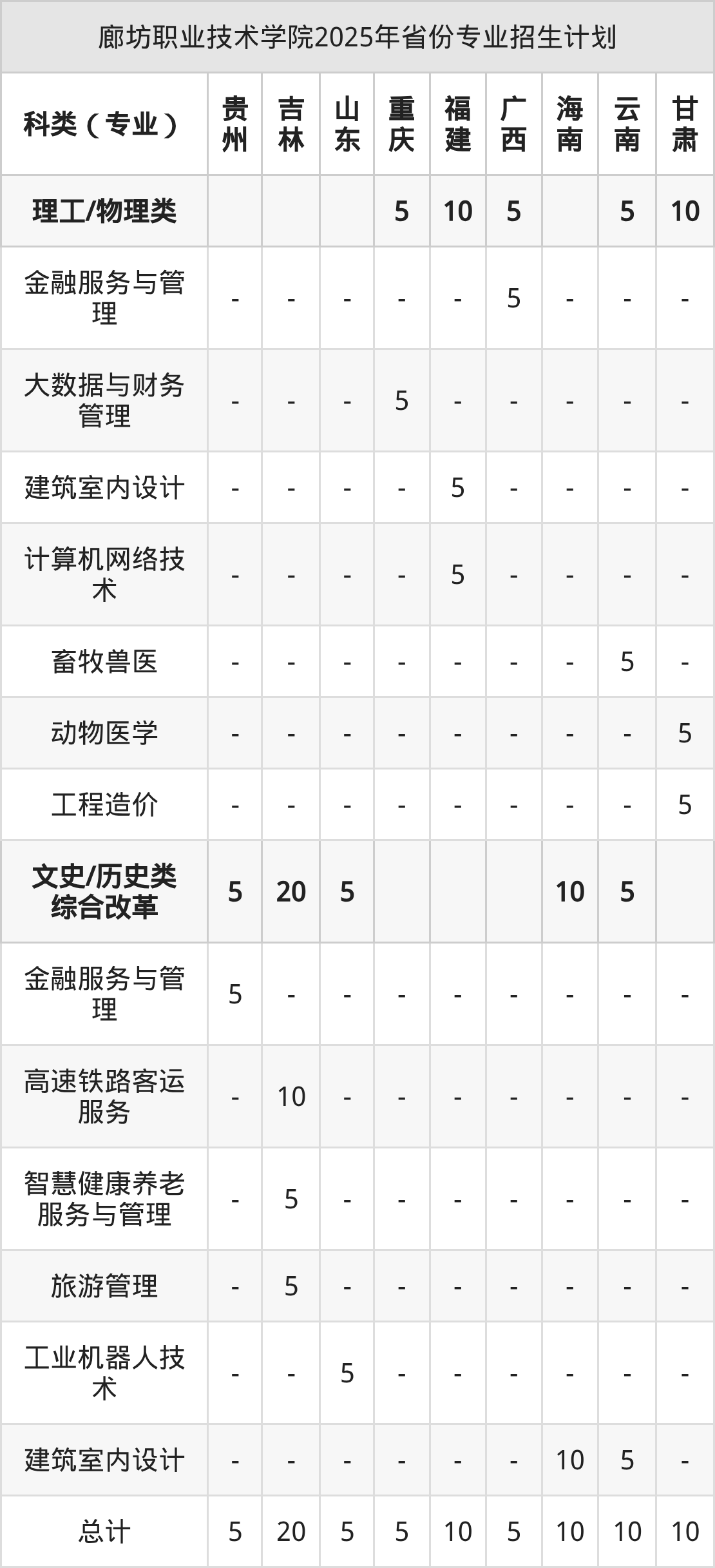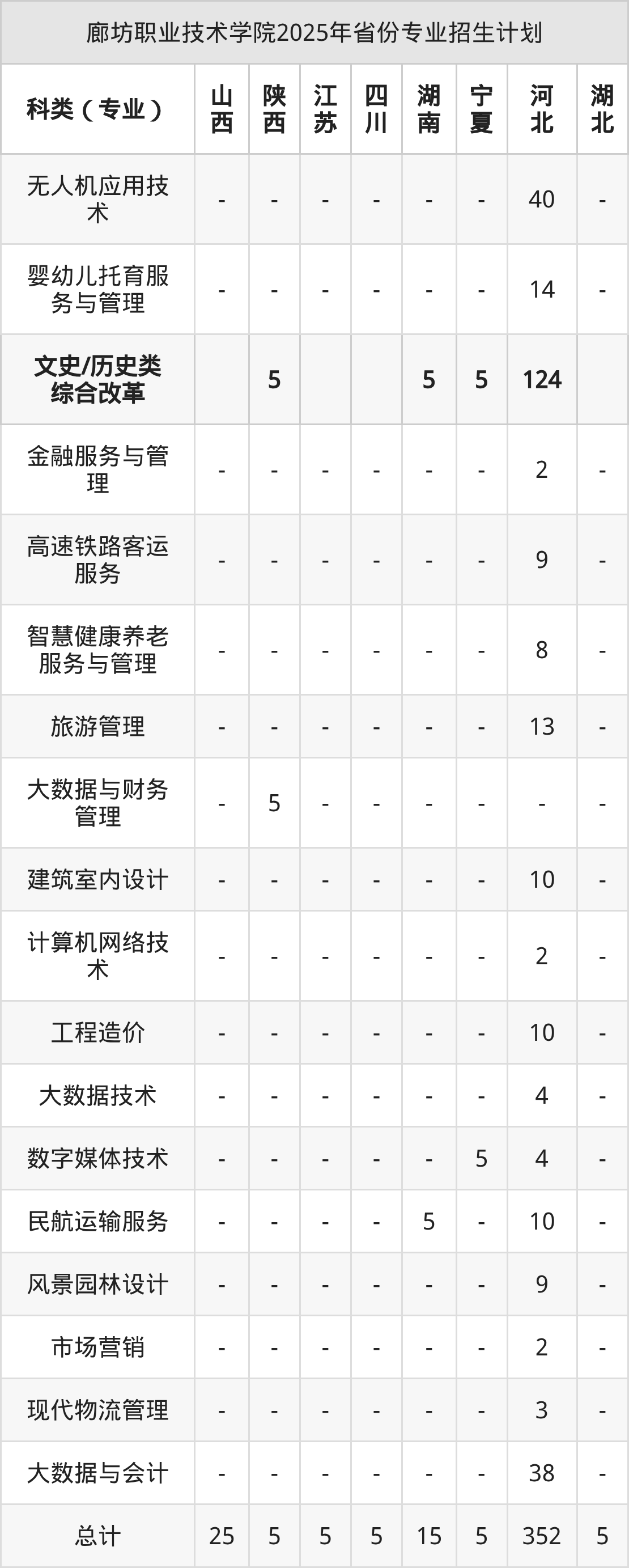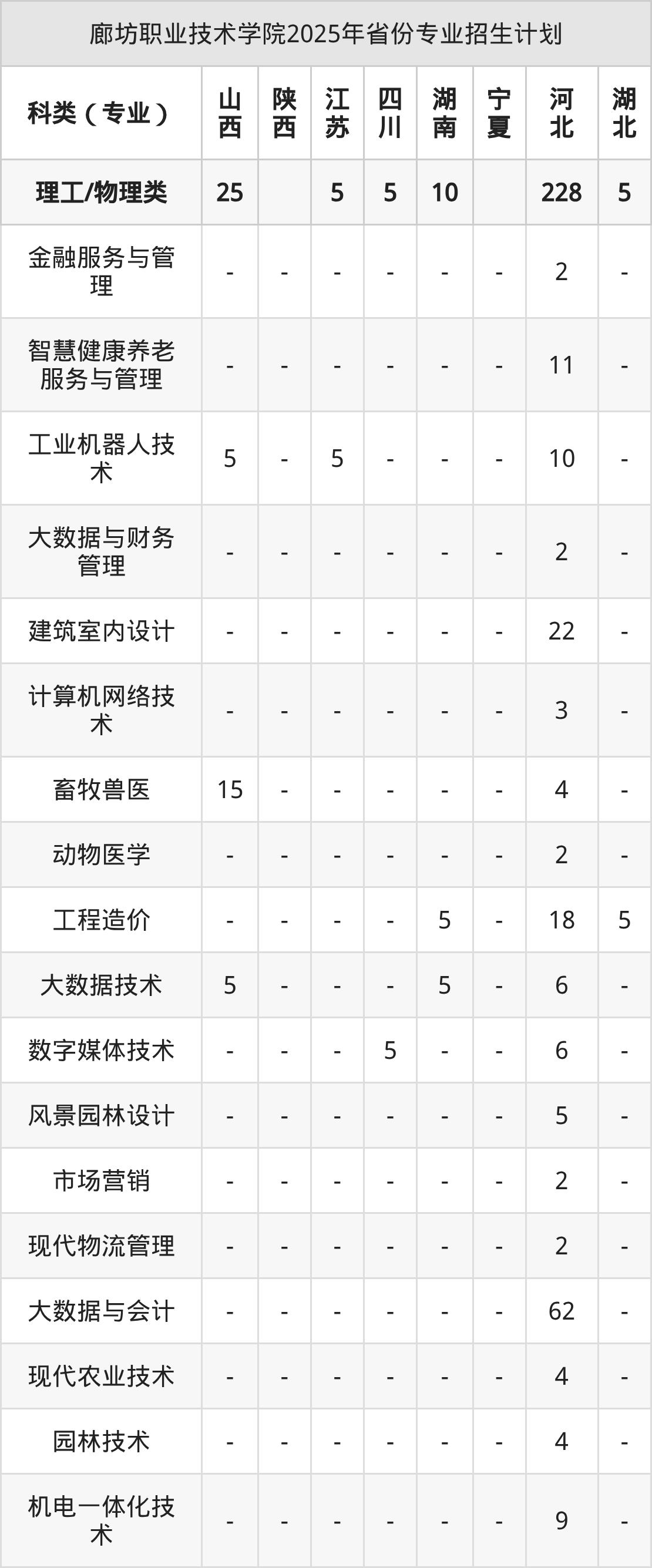 2026年廊坊职业技术学院专科招生计划待公布,下面附上2025年数据,暂供参考: