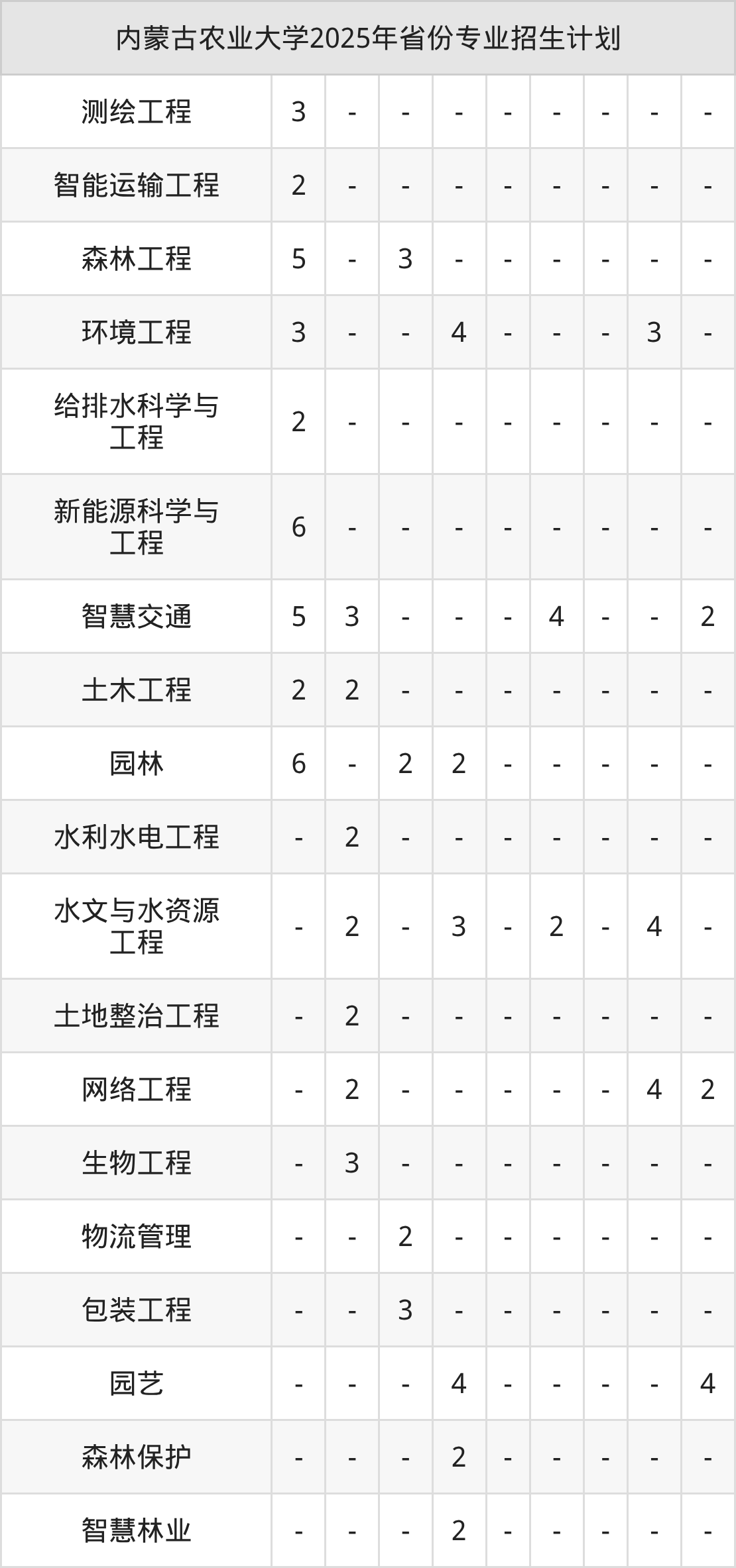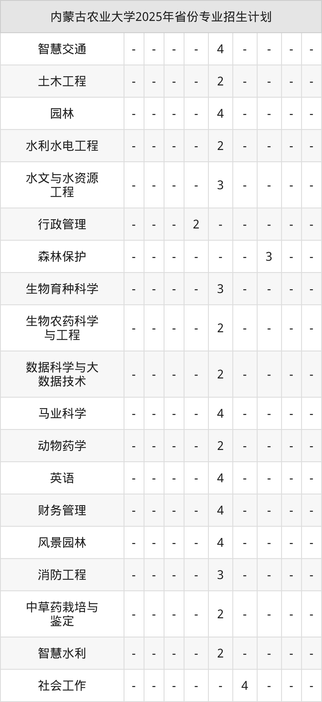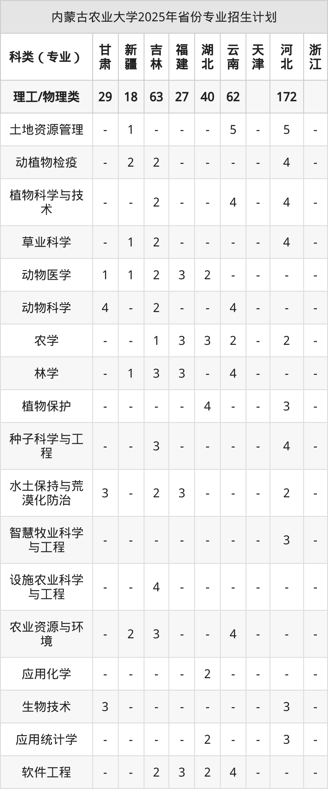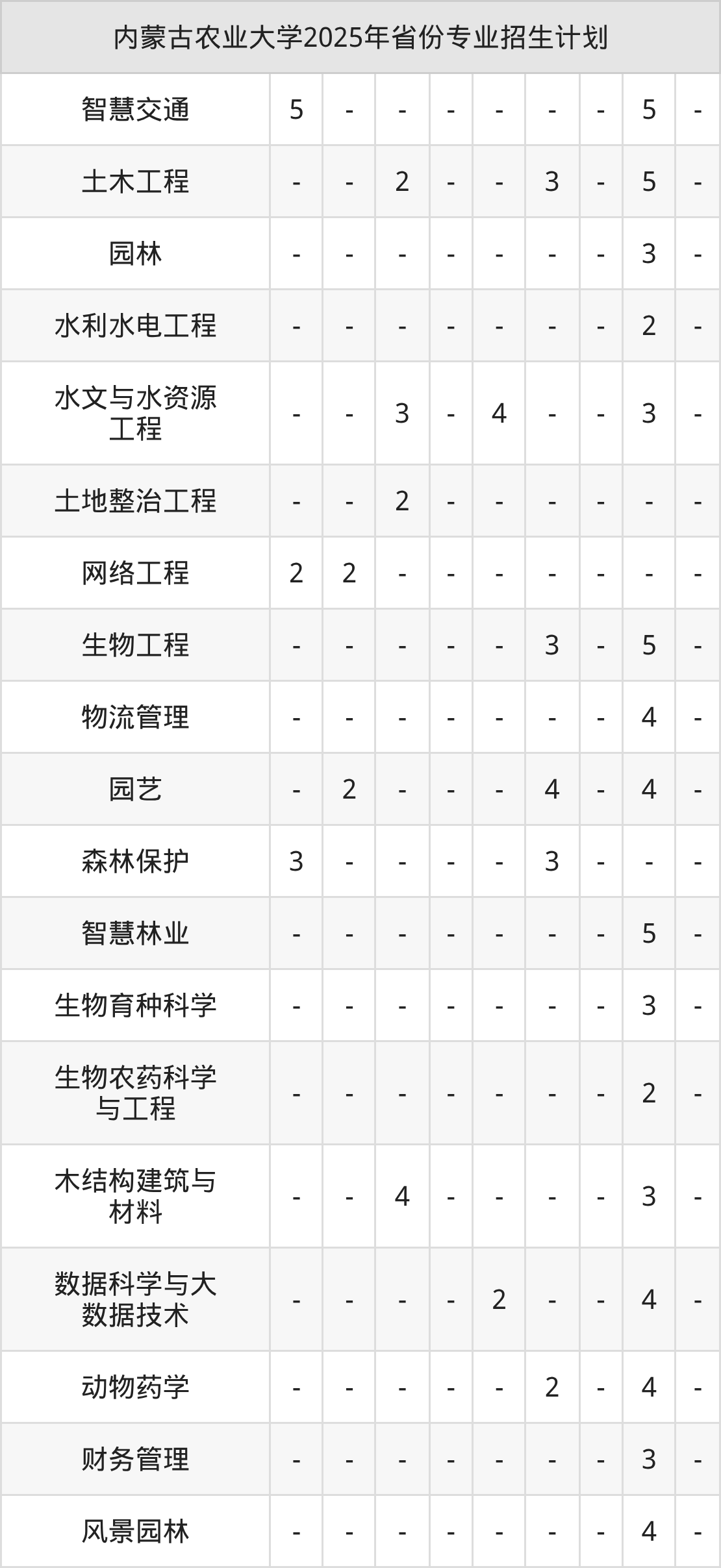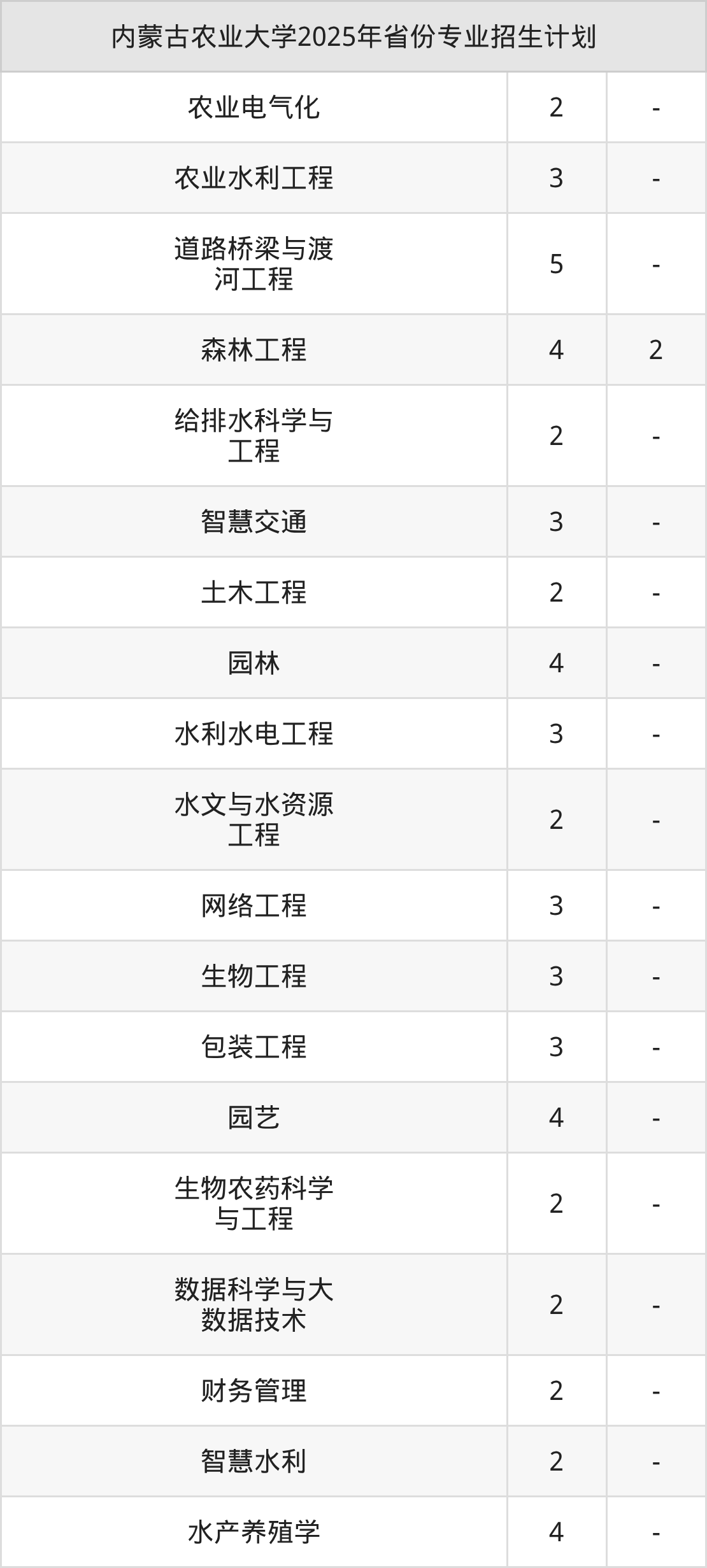2026年内蒙古农业大学本科招生计划待公布,下面附上2025年数据,暂供参考: