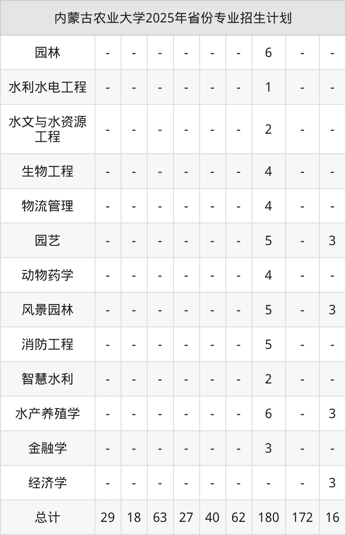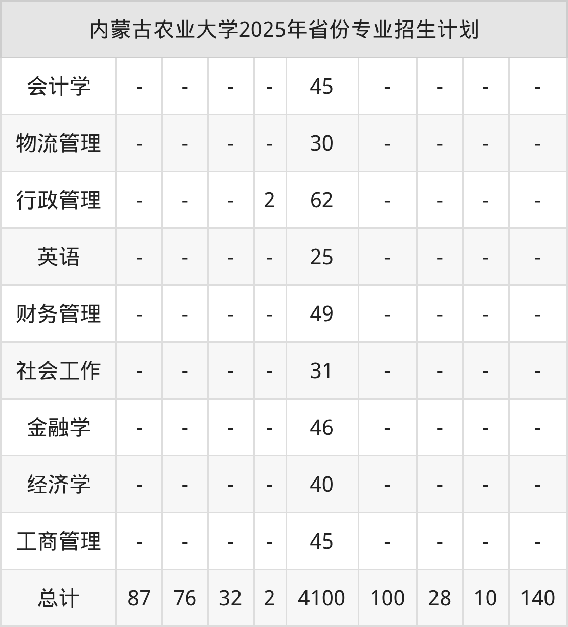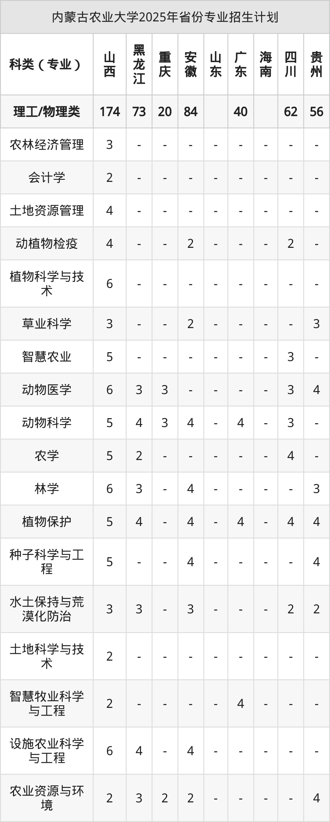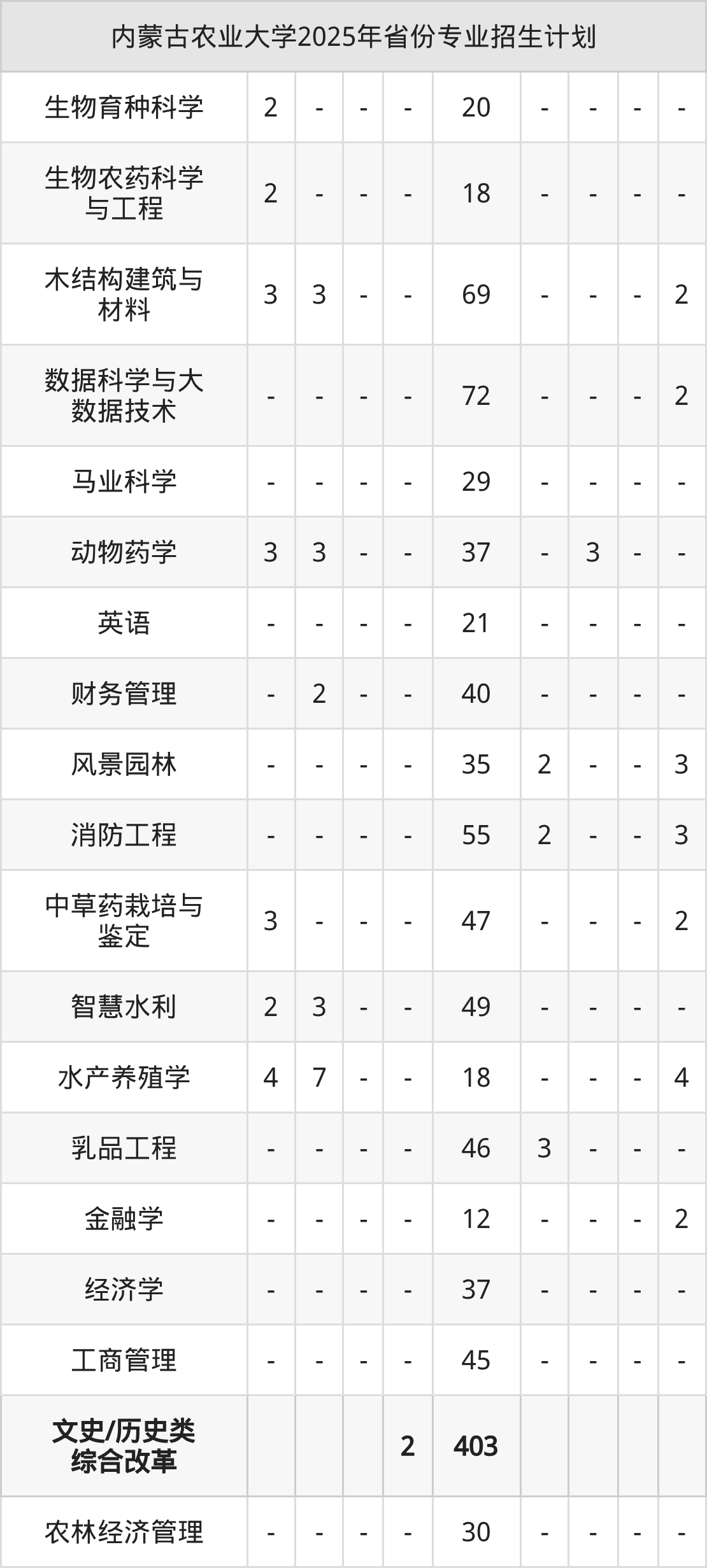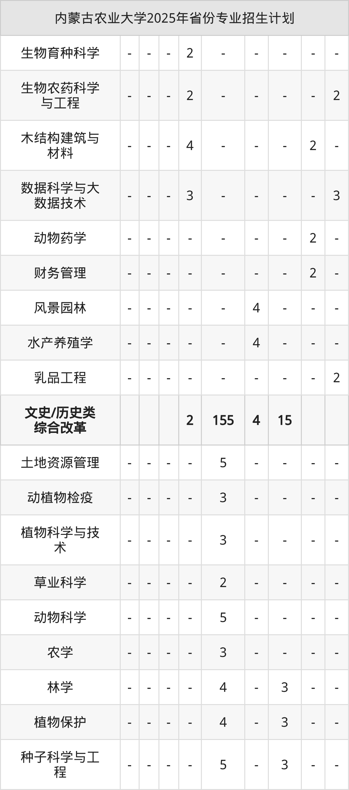 2026年内蒙古农业大学本科招生计划待公布,下面附上2025年数据,暂供参考: