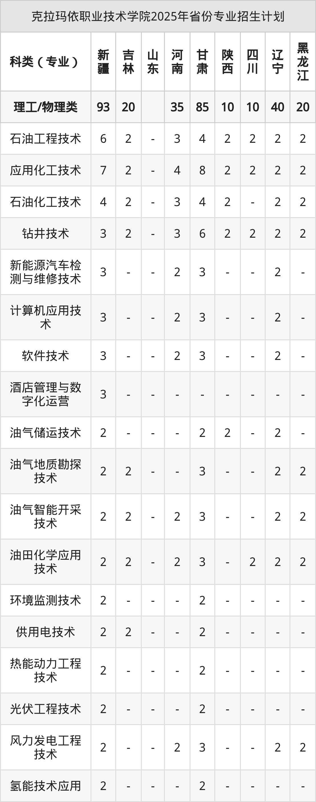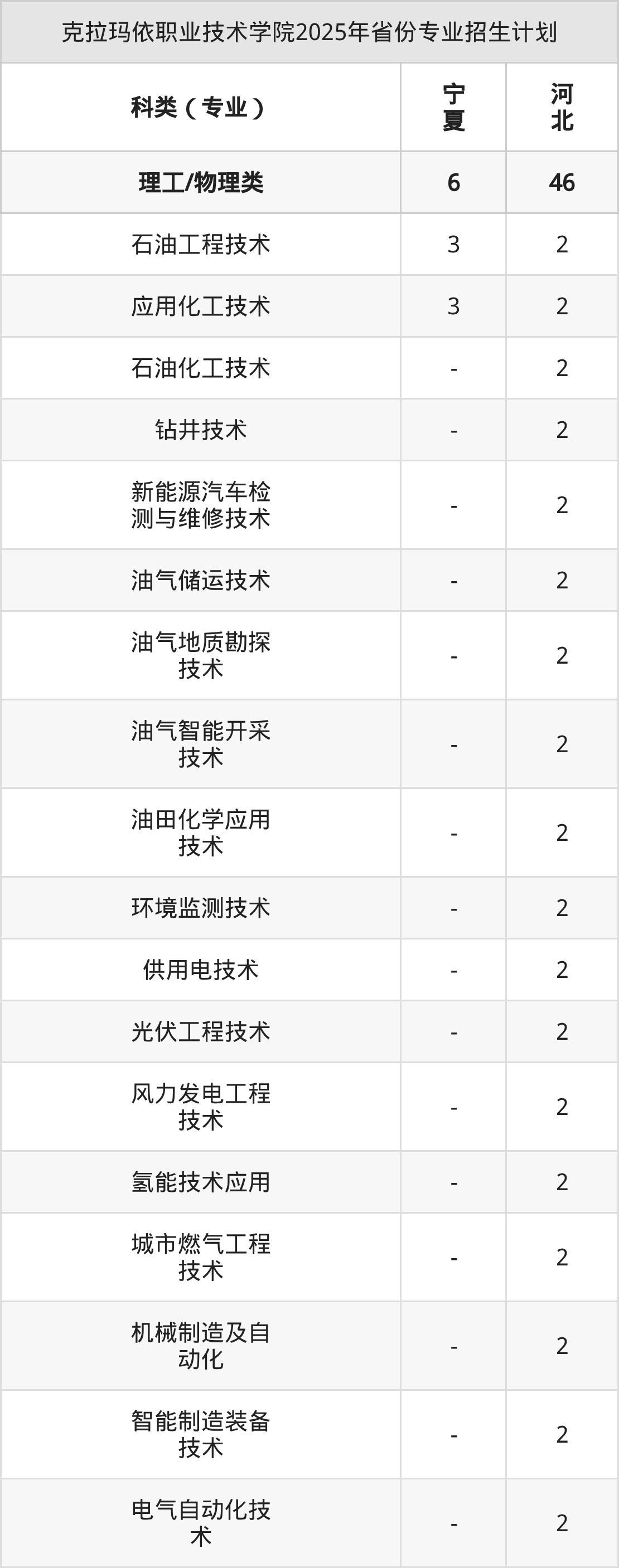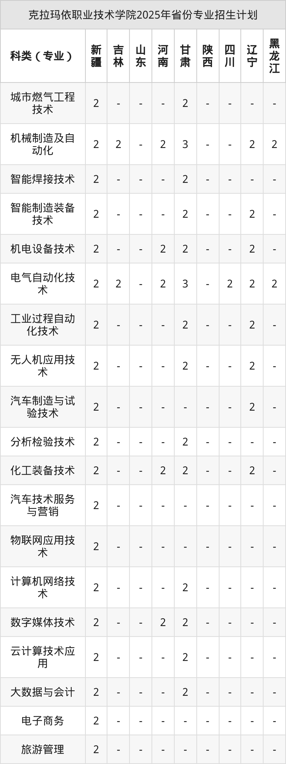 2026年克拉玛依职业技术学院专科招生计划待公布,下面附上2025年数据,暂供参考: