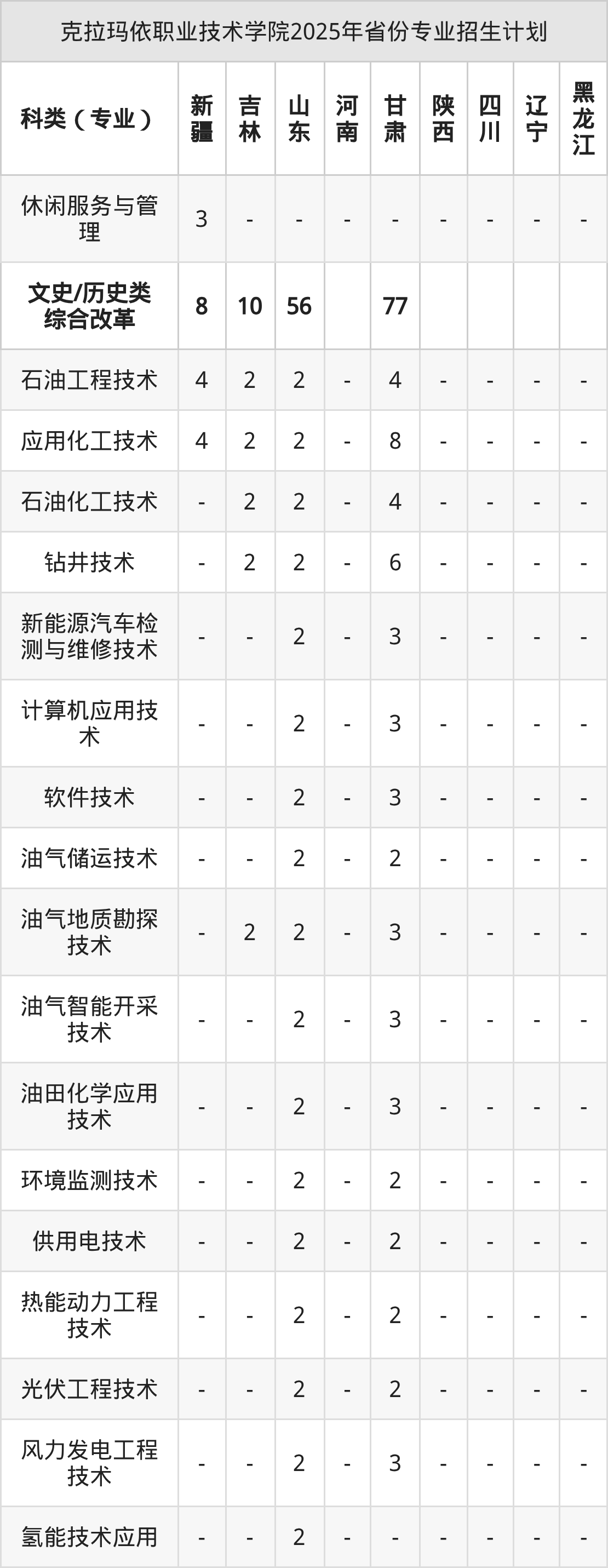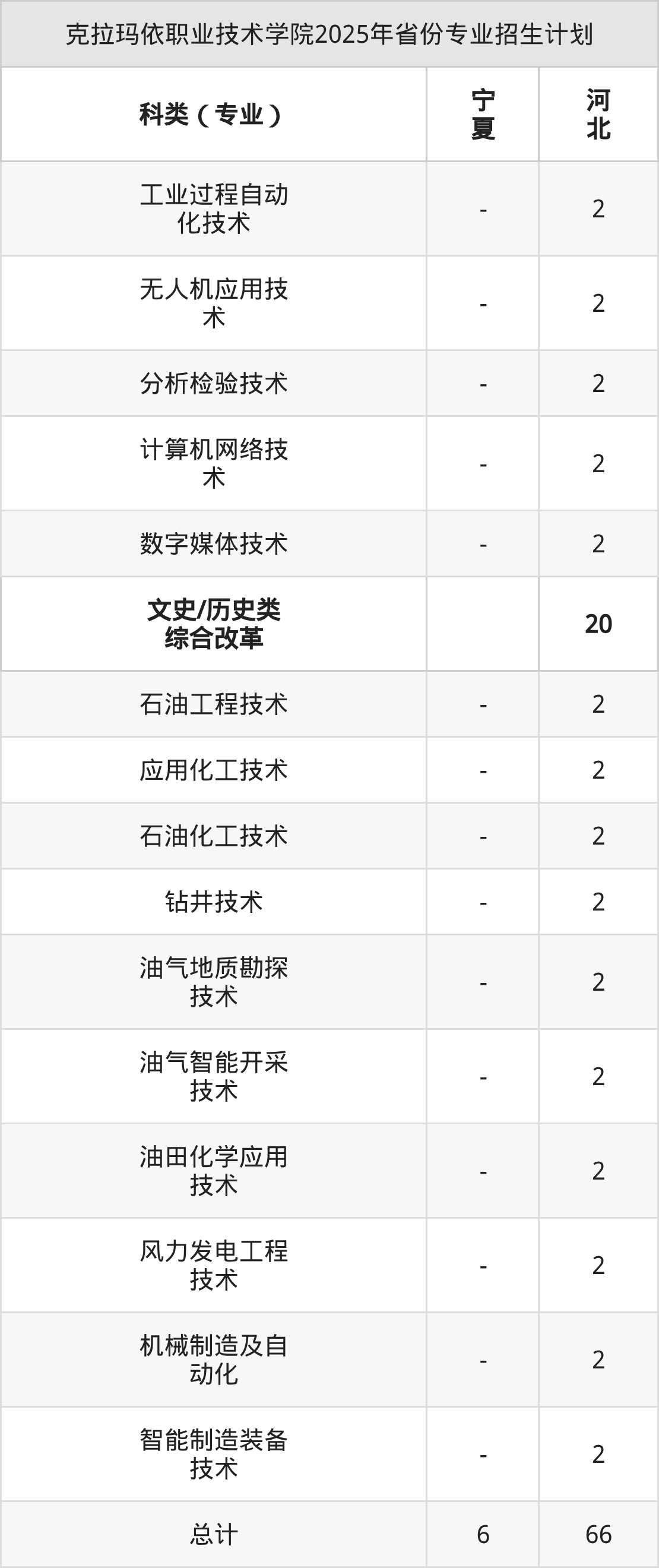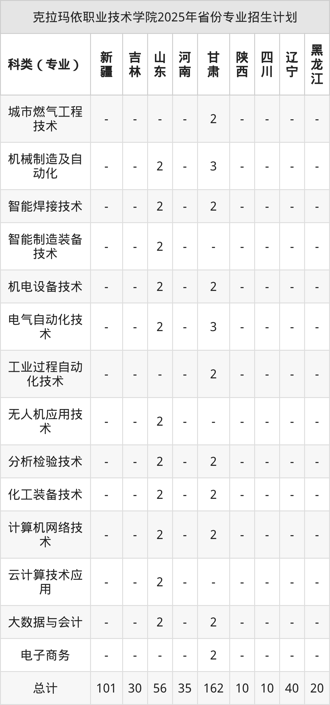 2026年克拉玛依职业技术学院专科招生计划待公布,下面附上2025年数据,暂供参考: