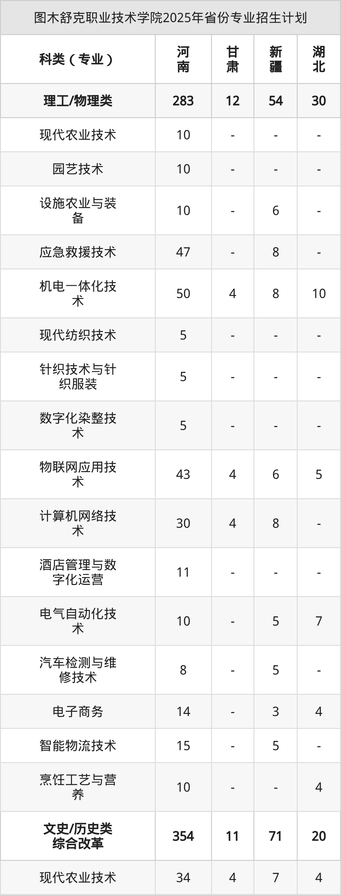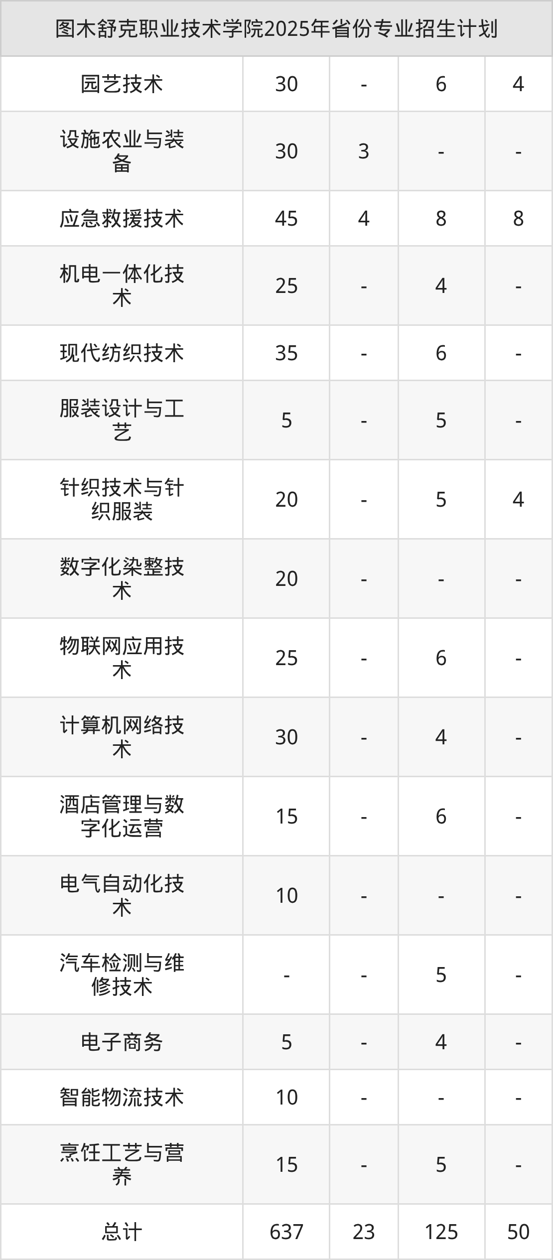 2026年图木舒克职业技术学院专科招生计划待公布,下面附上2025年数据,暂供参考: