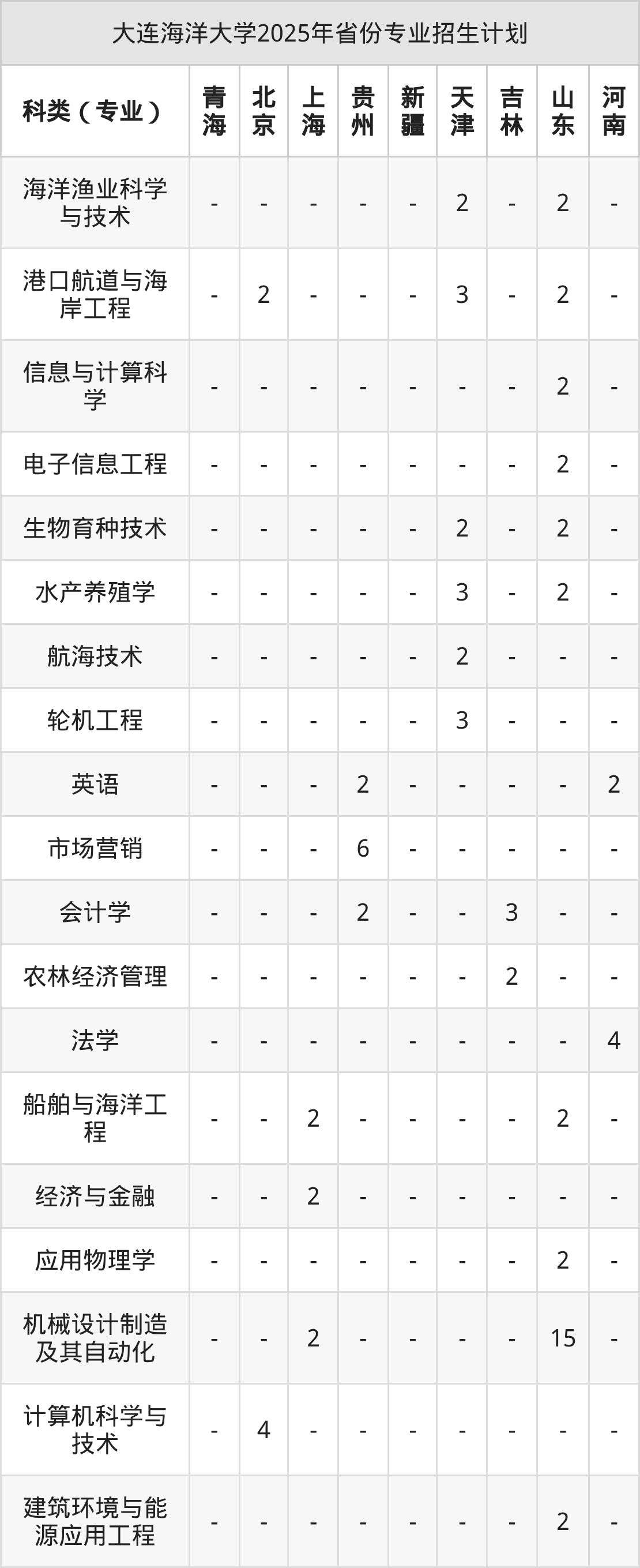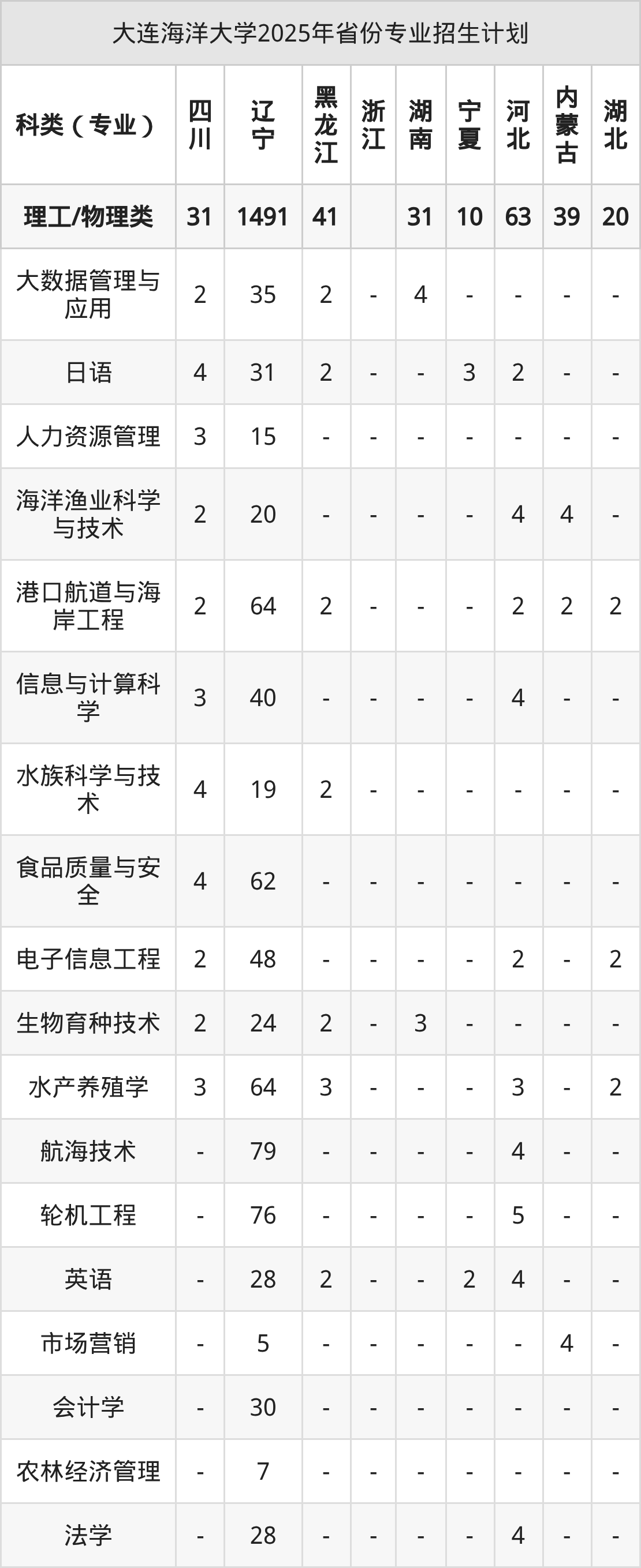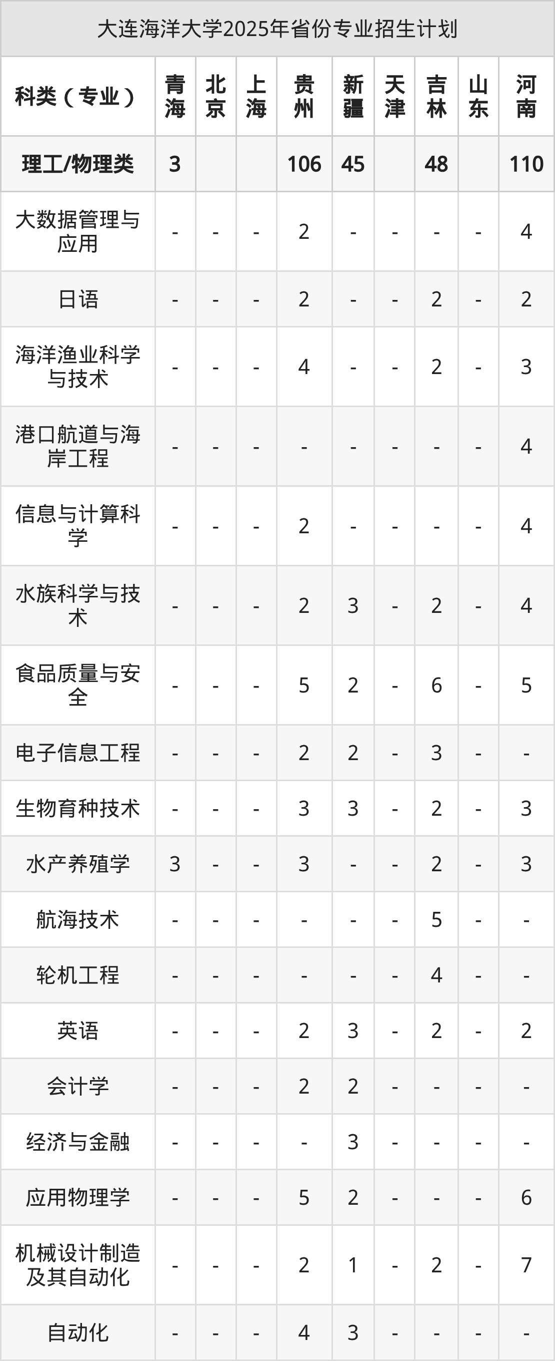 2026年大连海洋大学本科招生计划待公布,下面附上2025年数据,暂供参考: