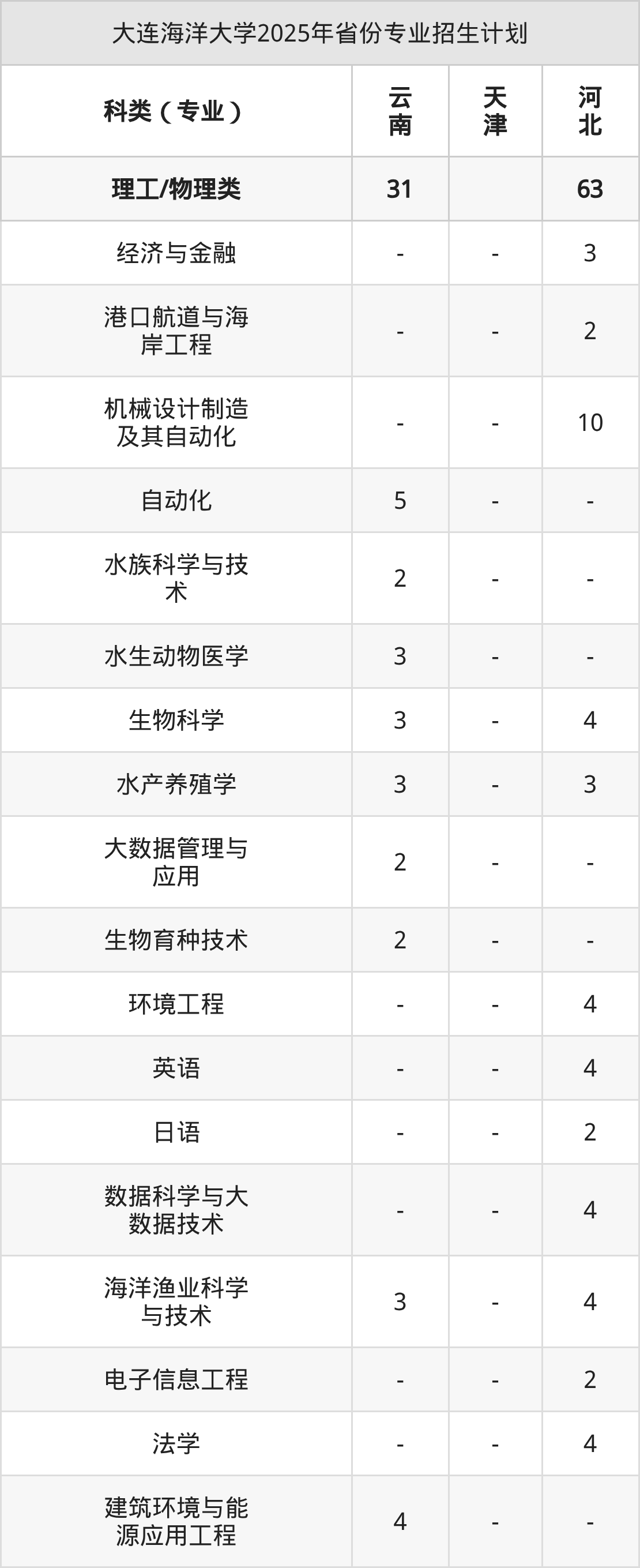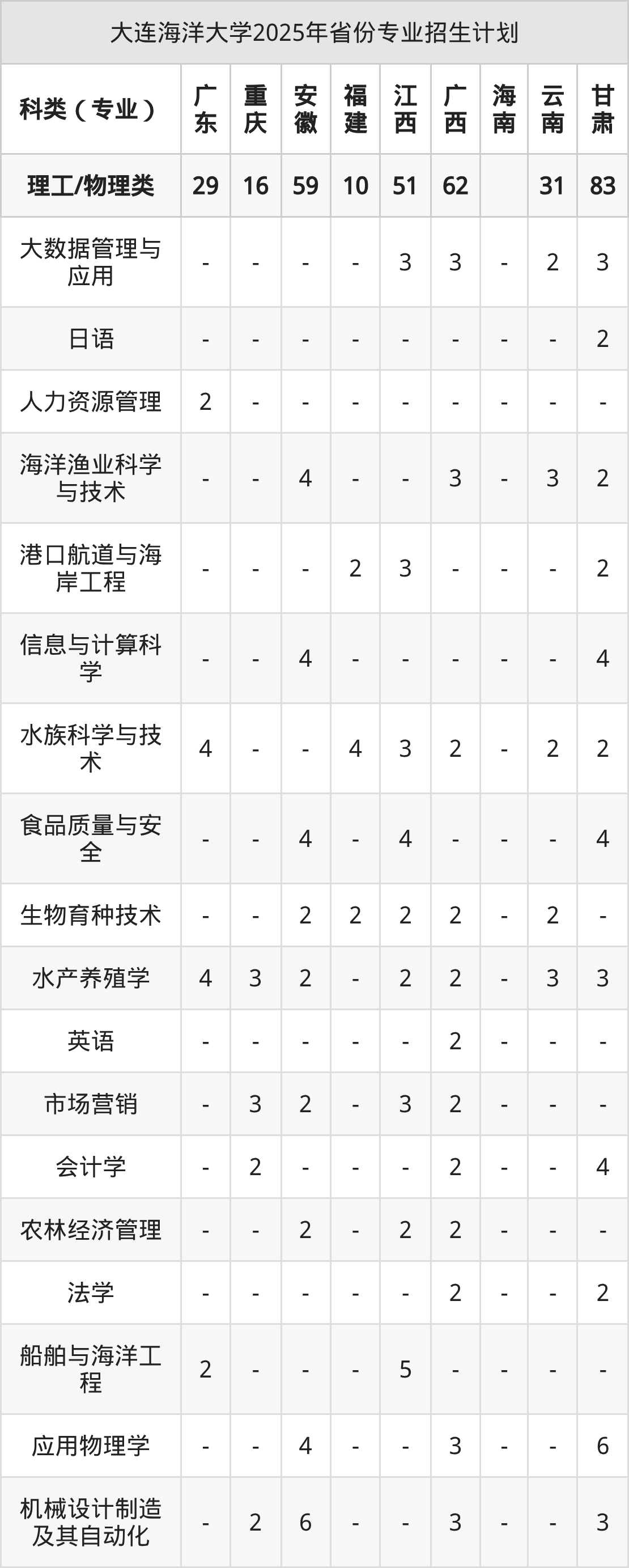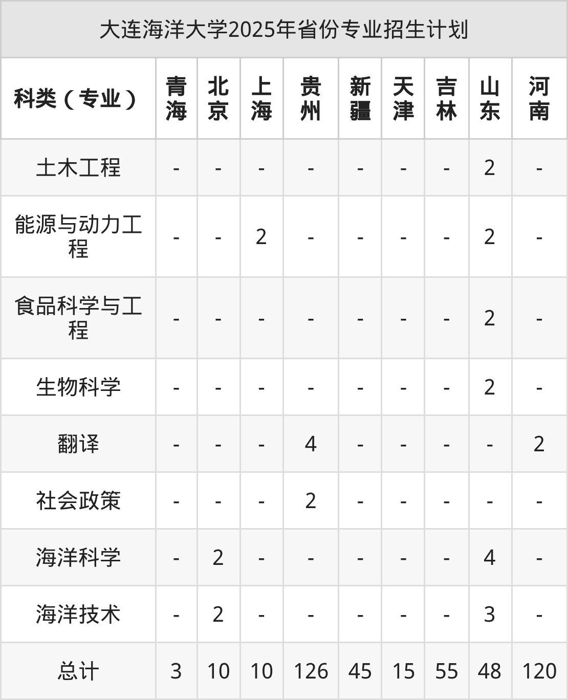 2026年大连海洋大学本科招生计划待公布,下面附上2025年数据,暂供参考: