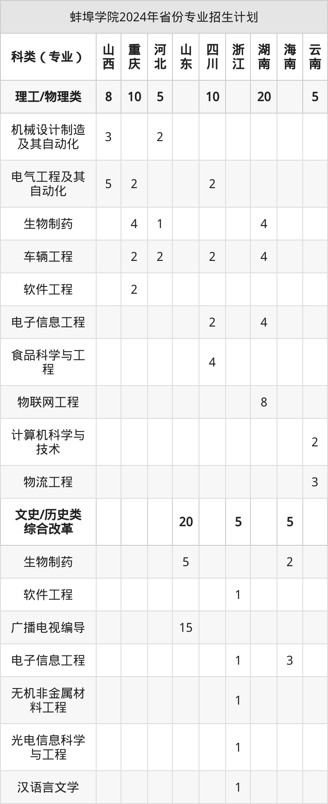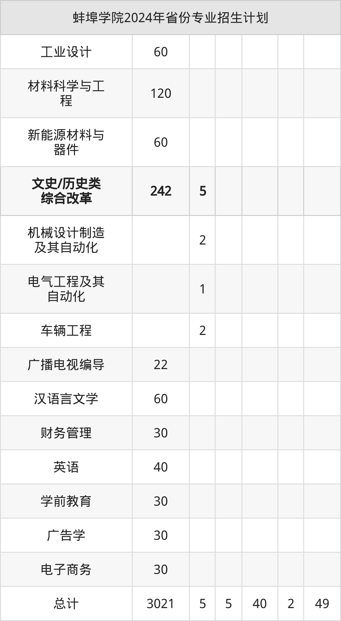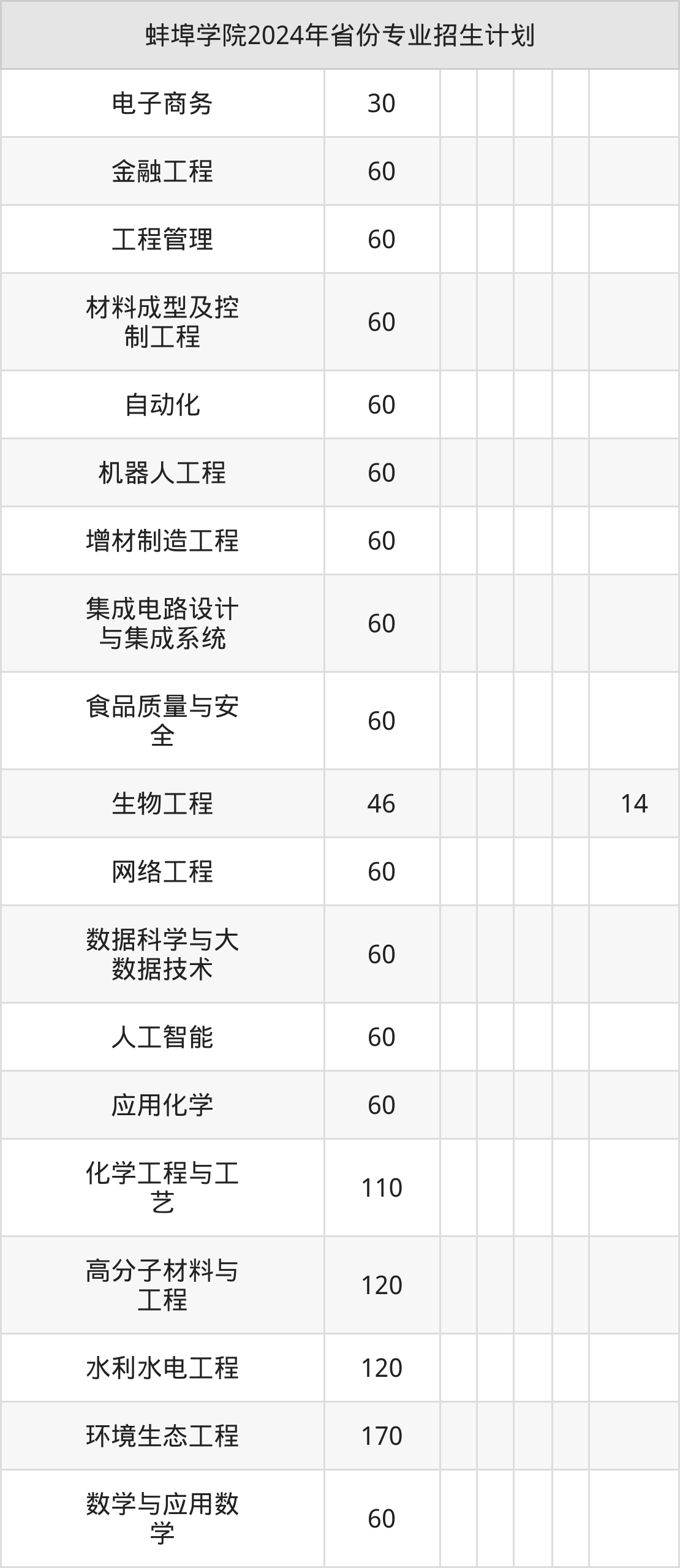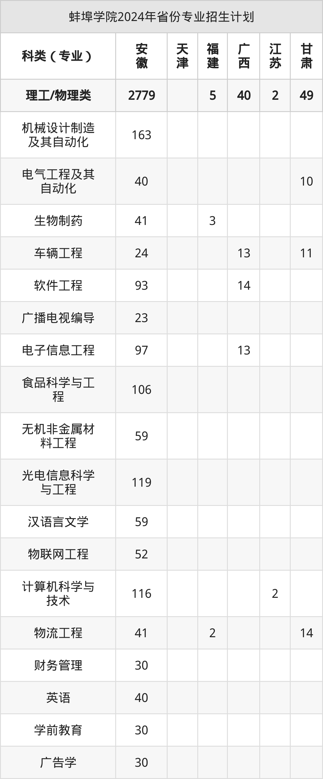 2025年蚌埠学院本科招生计划待公布,下面附上2024年数据,暂供参考: