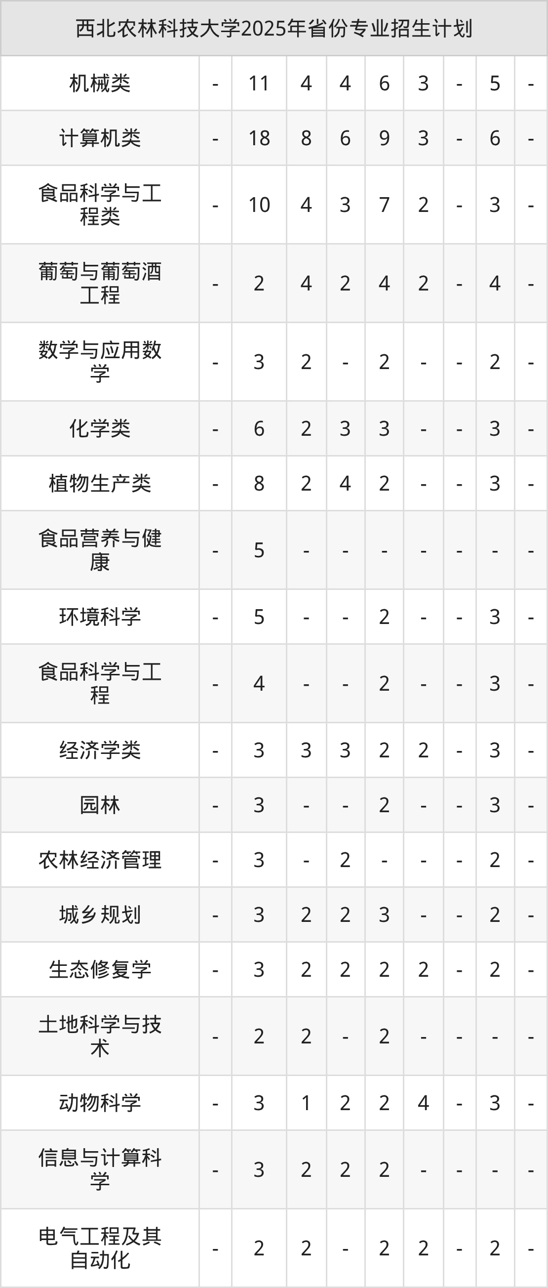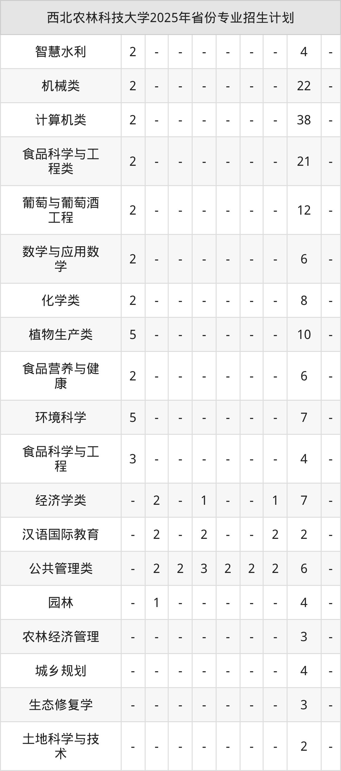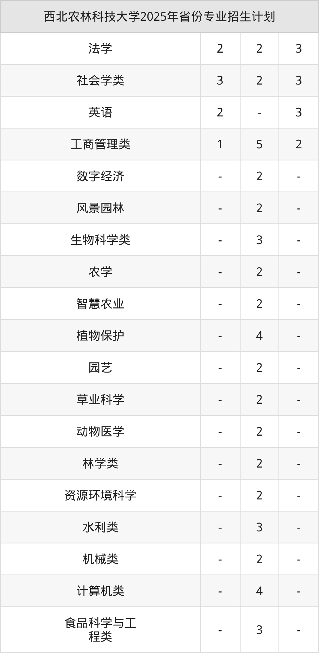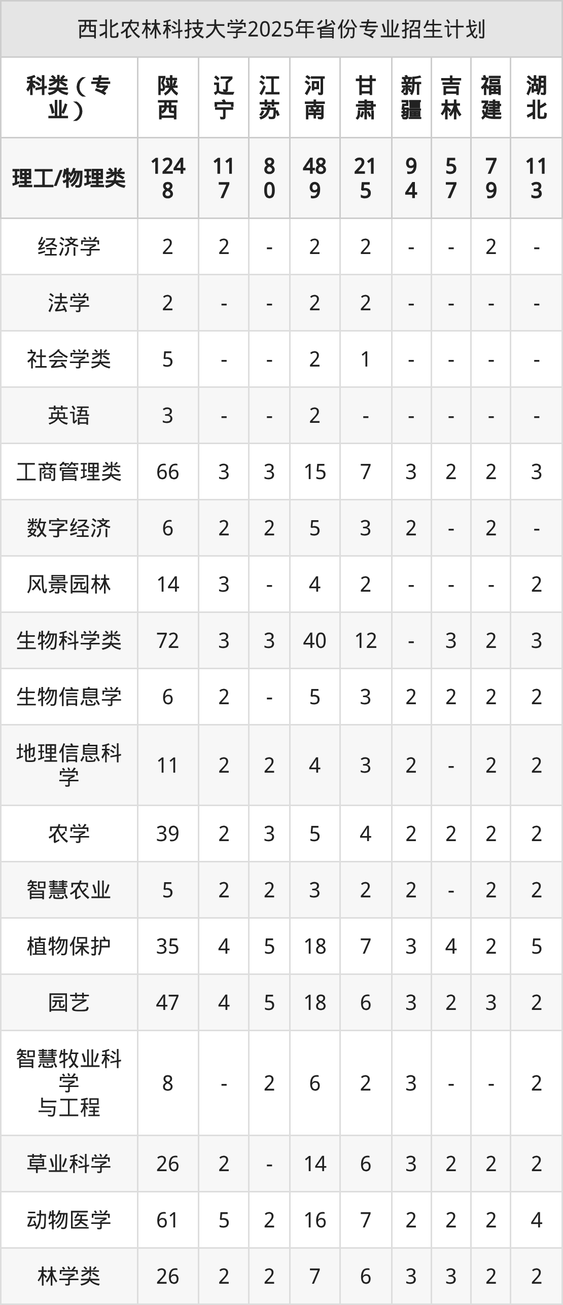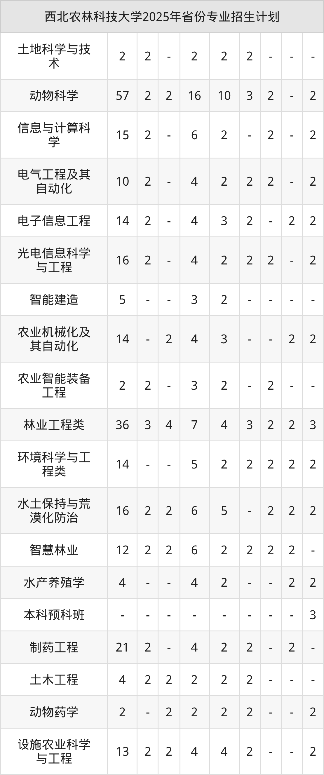 2026年西北农林科技大学本科招生计划待公布,下面附上2025年数据,暂供参考: