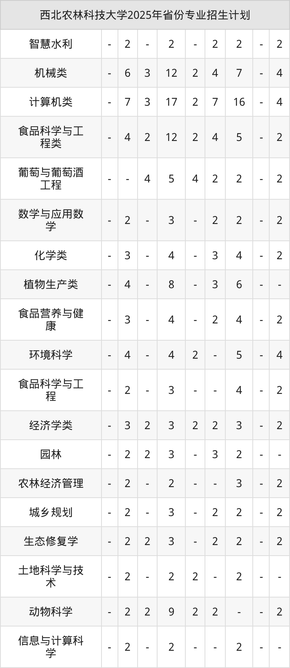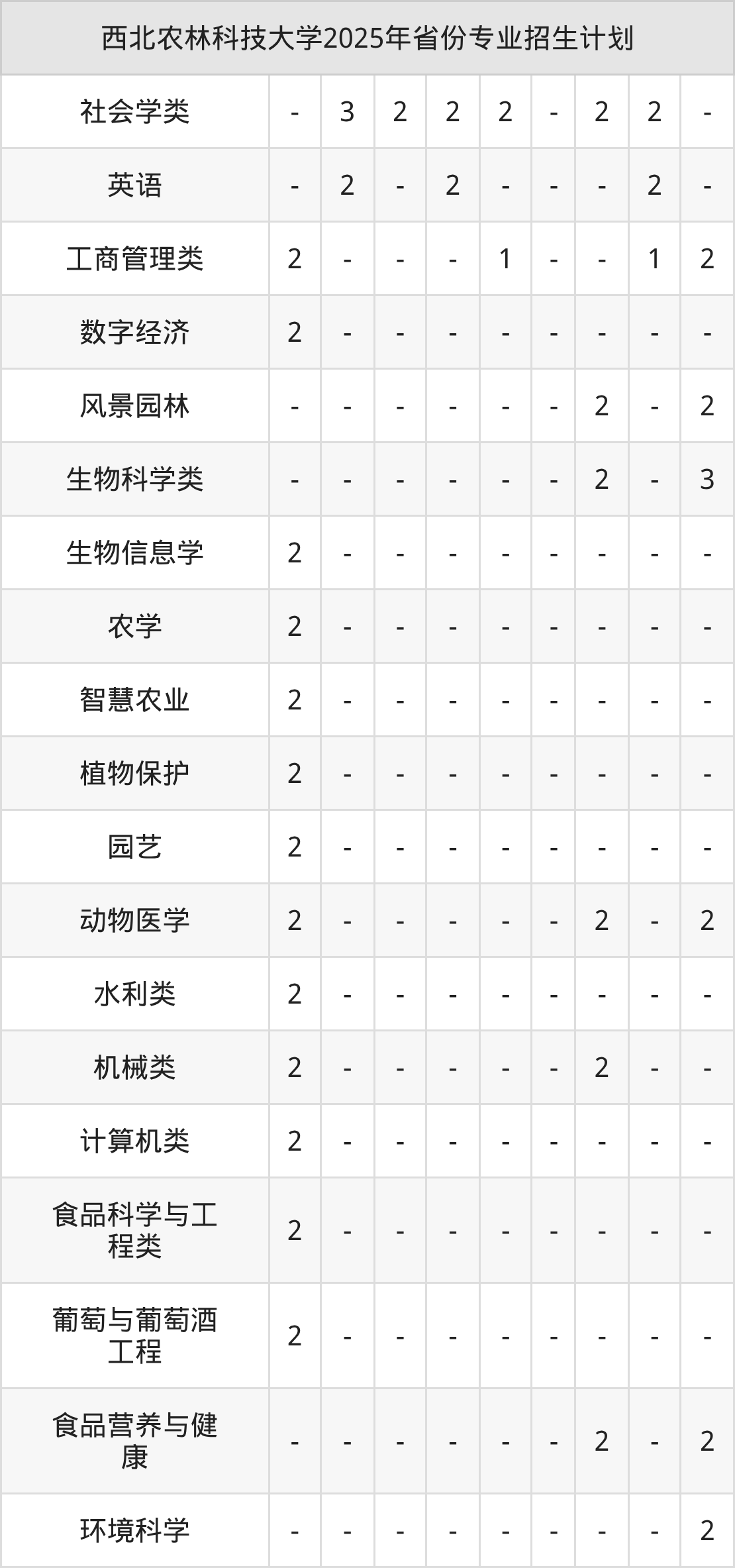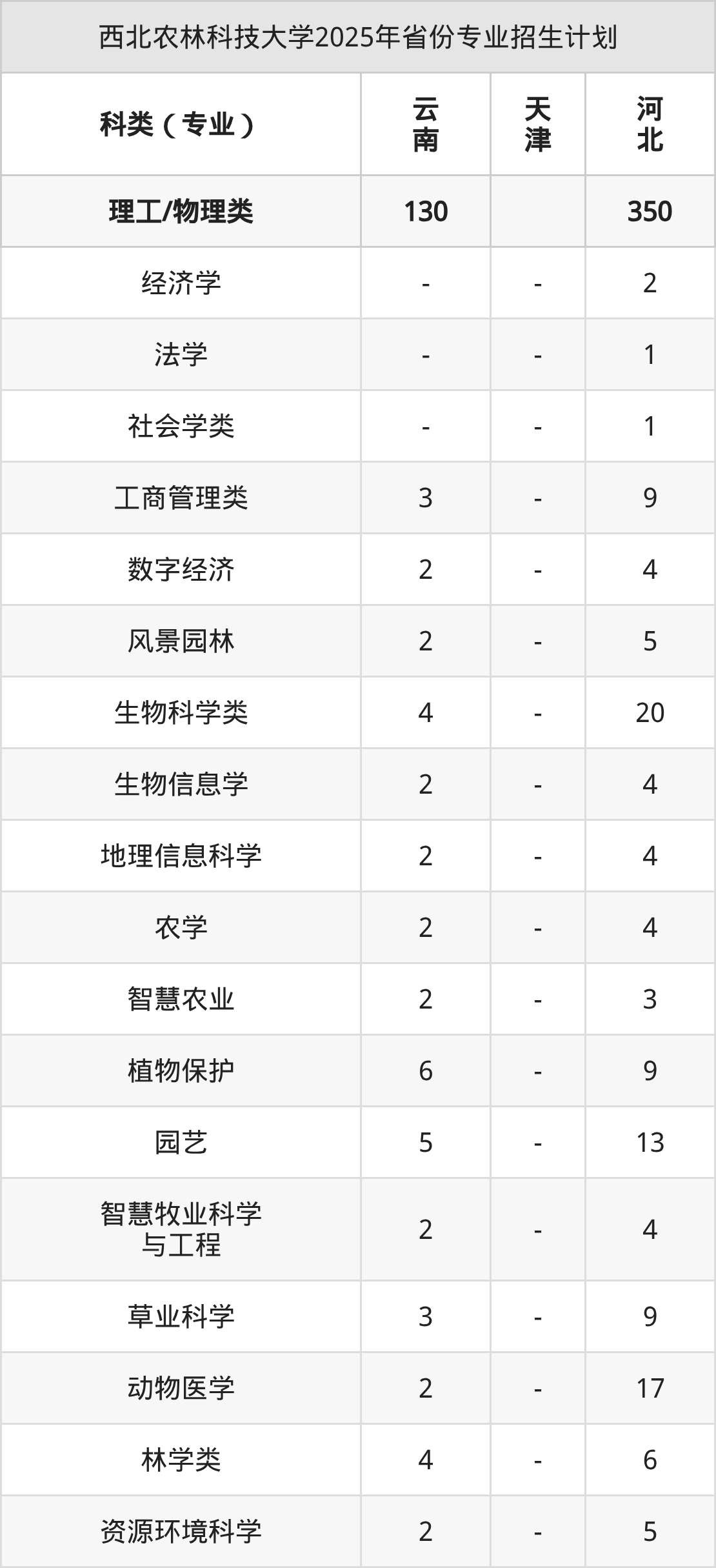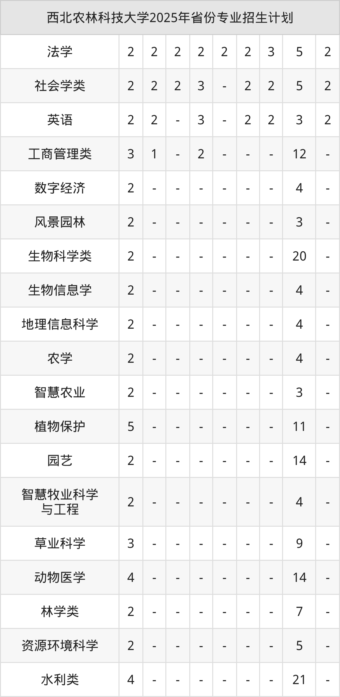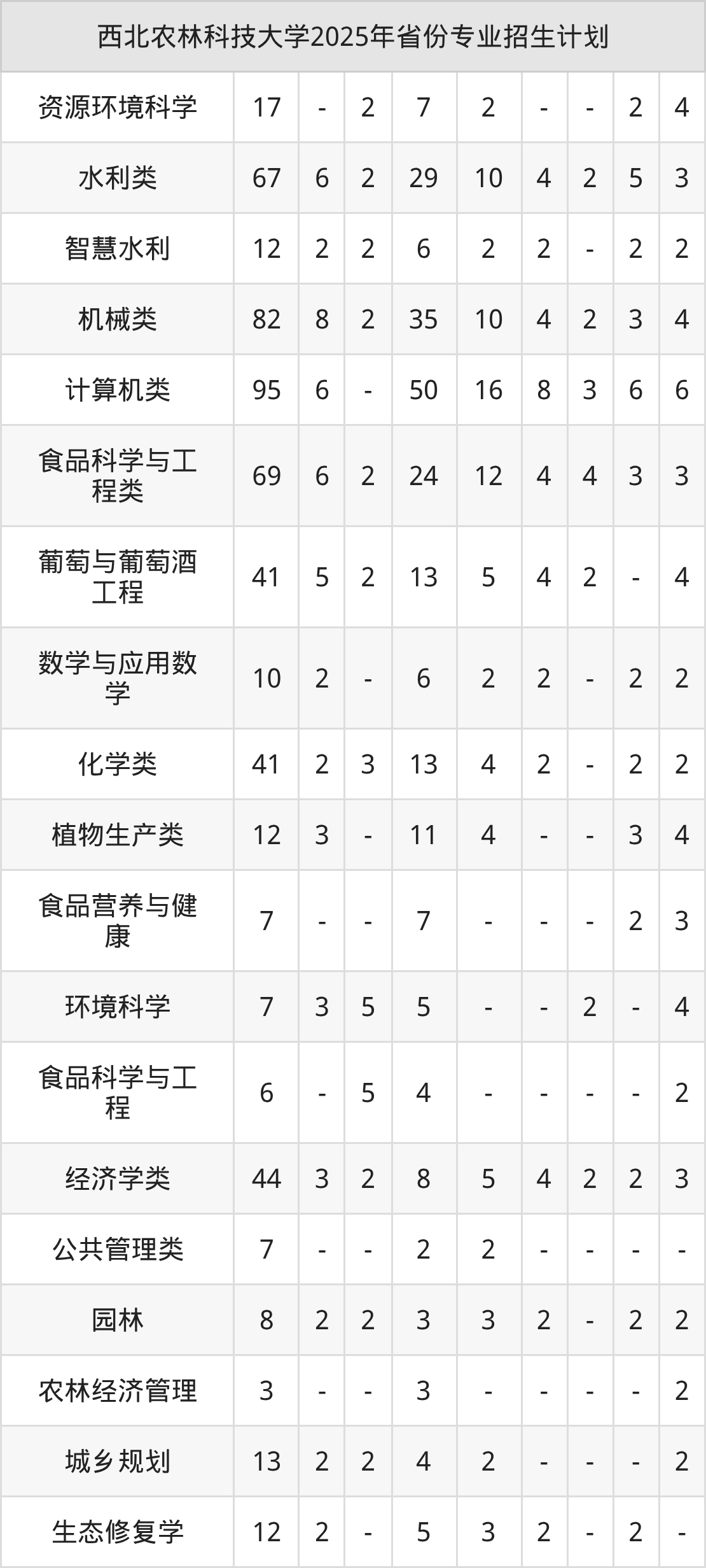 2026年西北农林科技大学本科招生计划待公布,下面附上2025年数据,暂供参考: