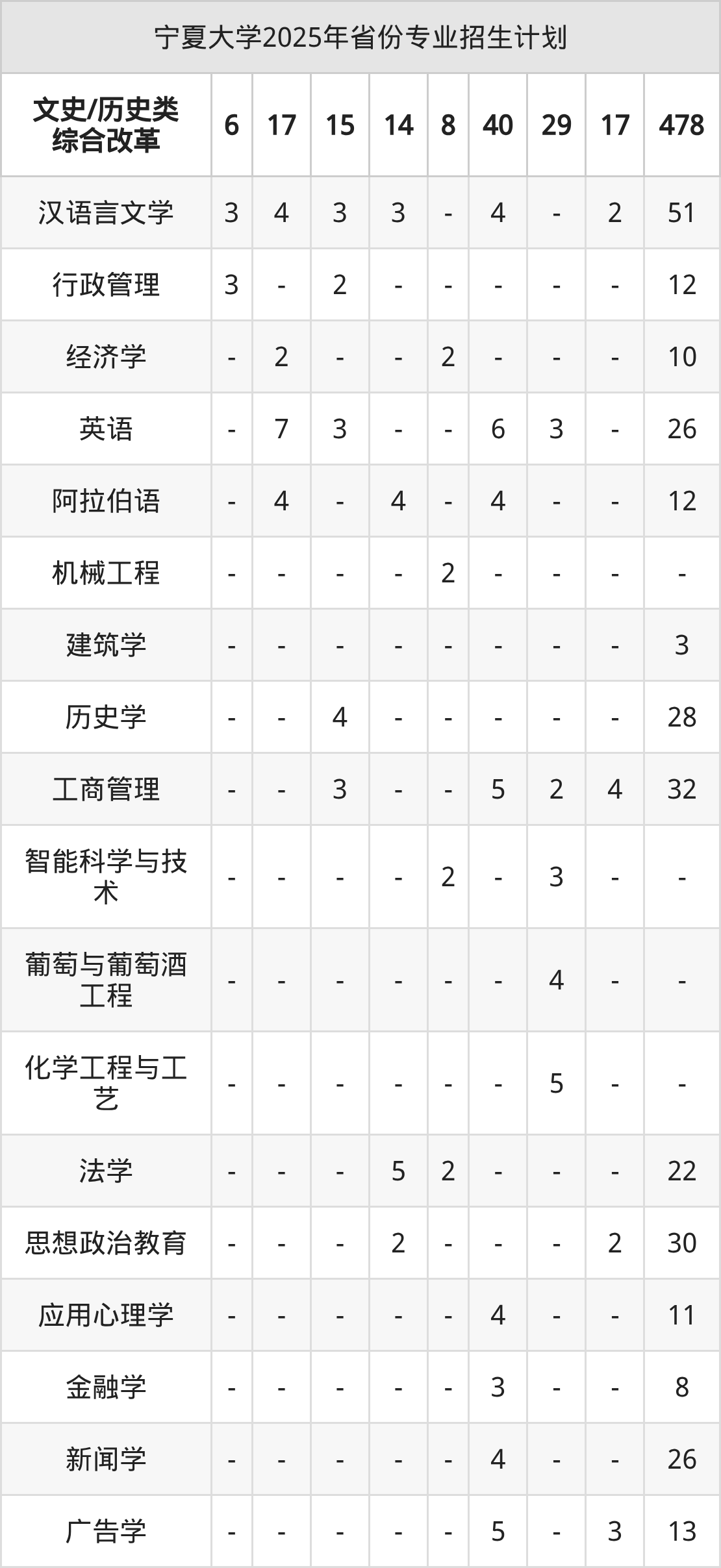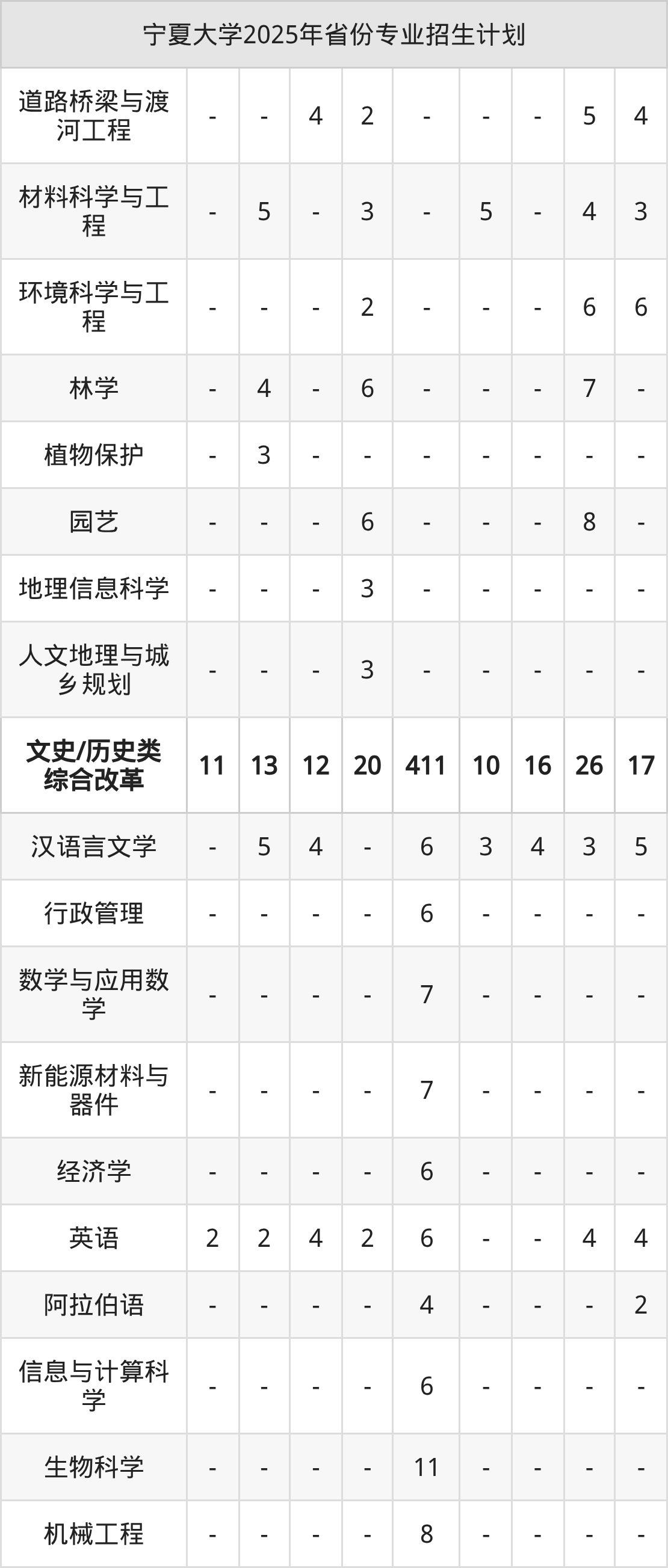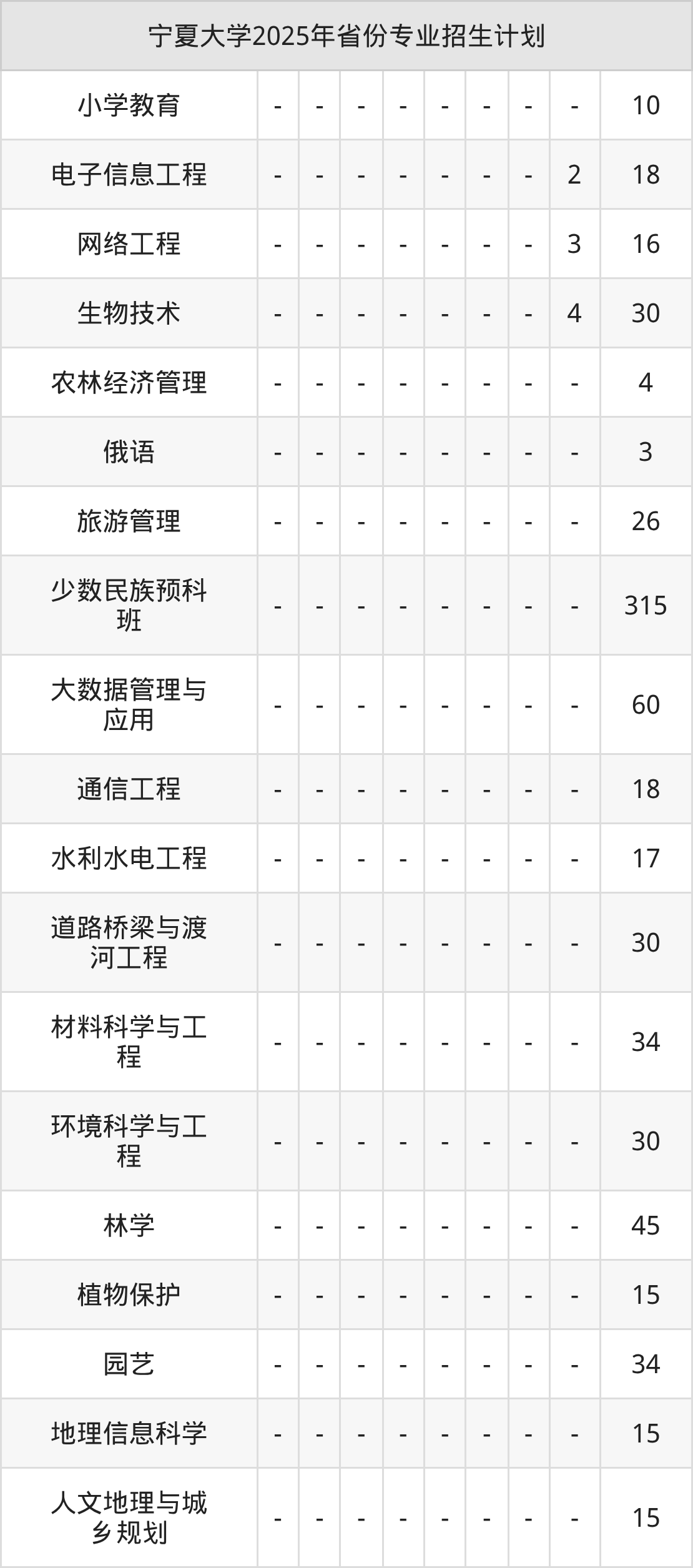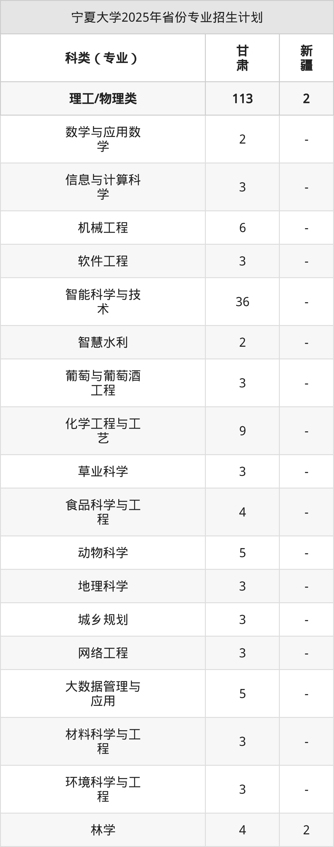 2026年宁夏大学本科招生计划待公布,下面附上2025年数据,暂供参考:
