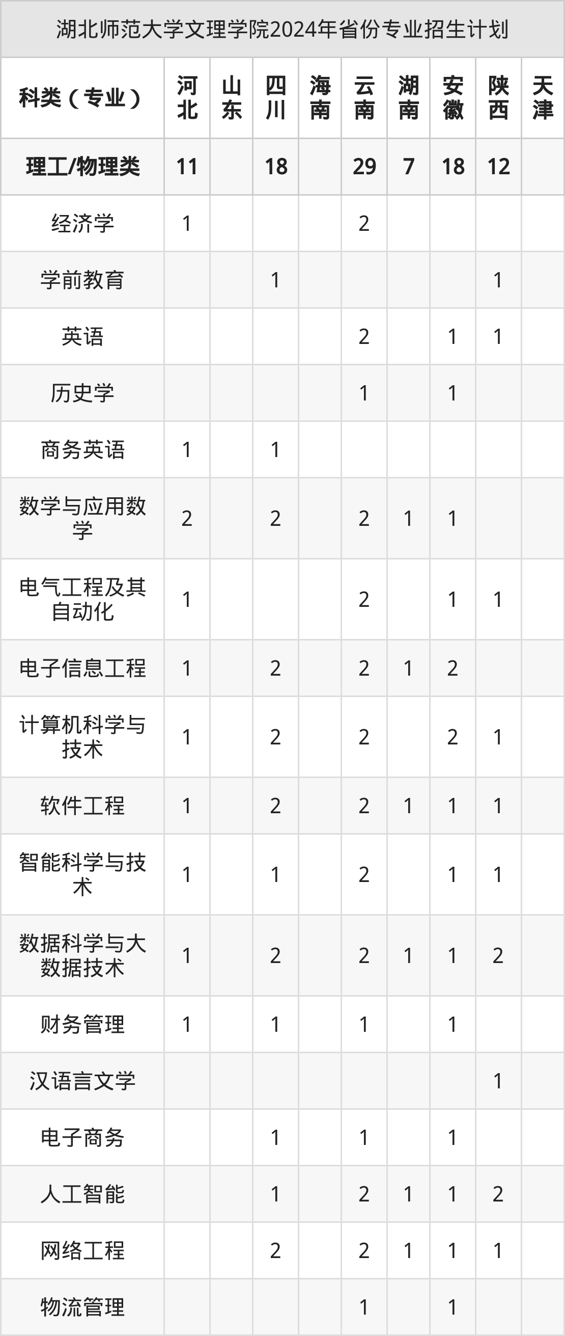 2025年湖北师范大学文理学院本科招生计划待公布,下面附上2024年数据,暂供参考:
