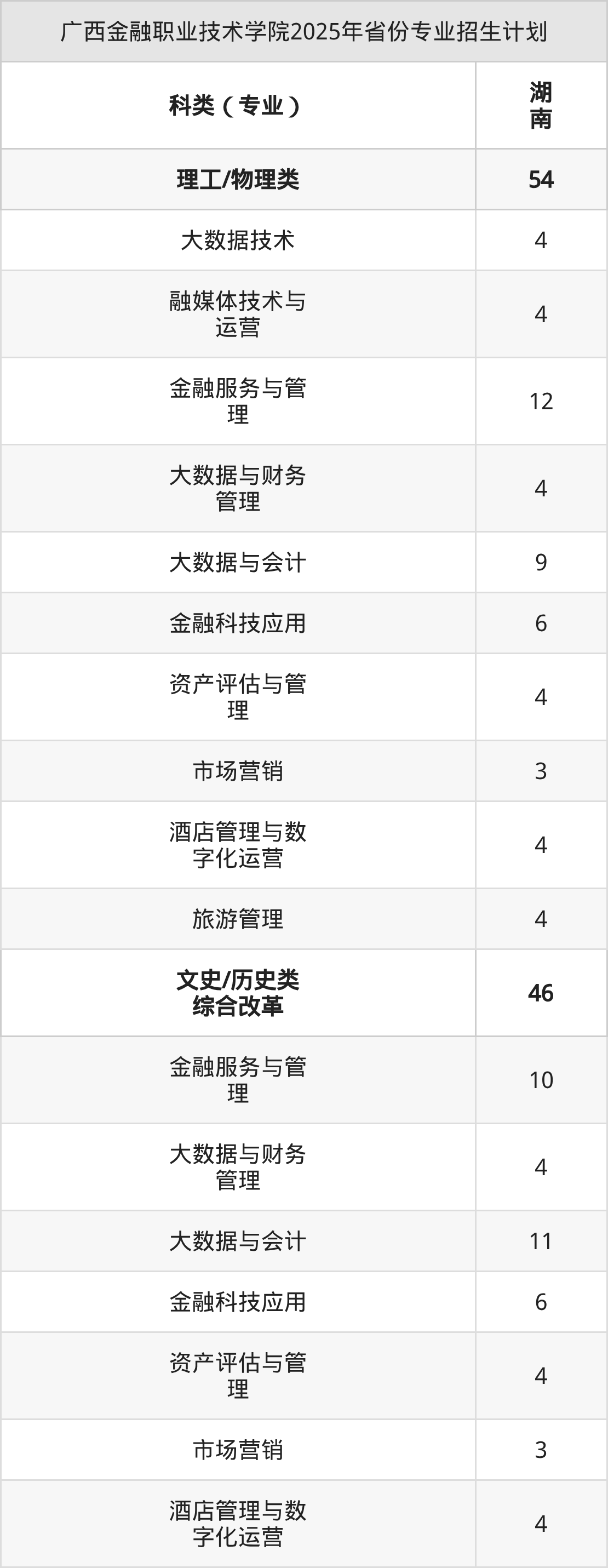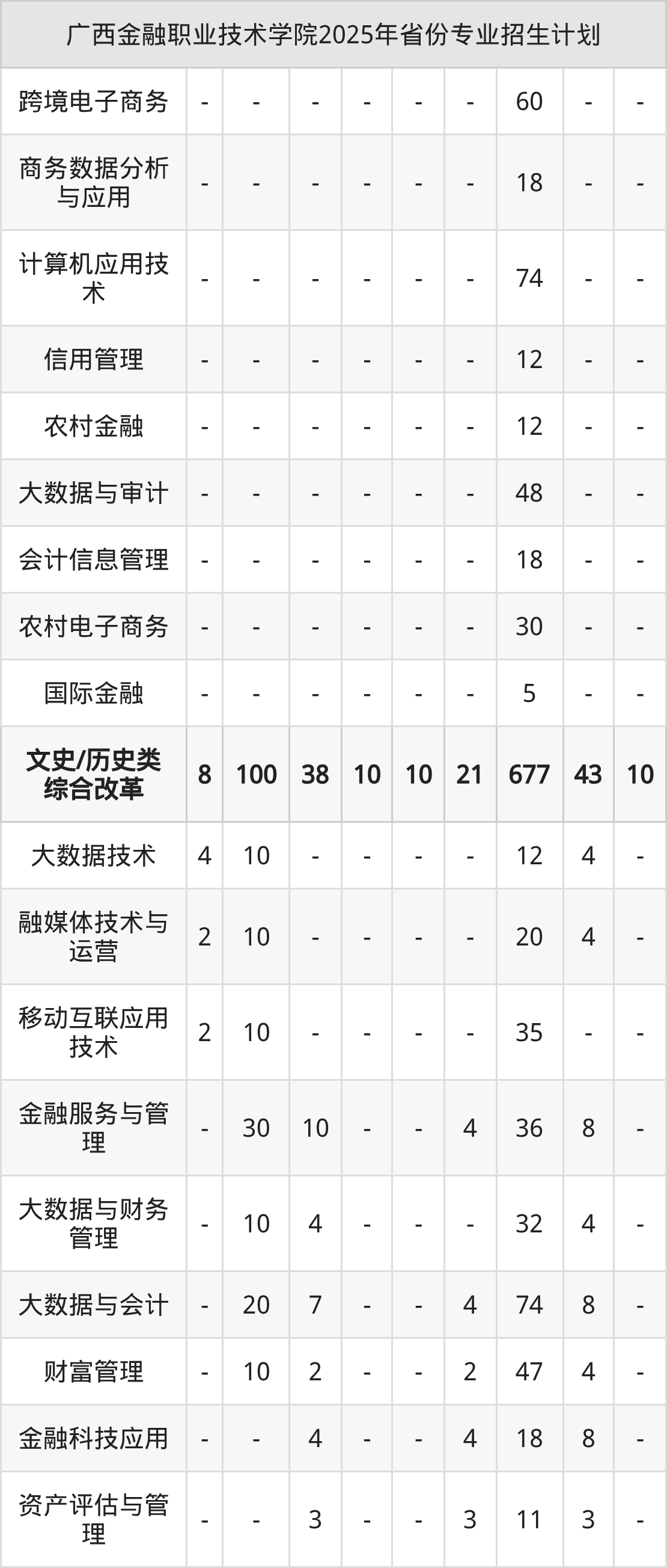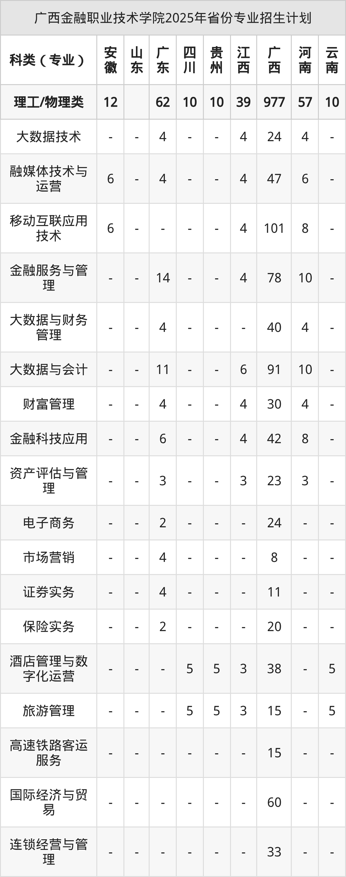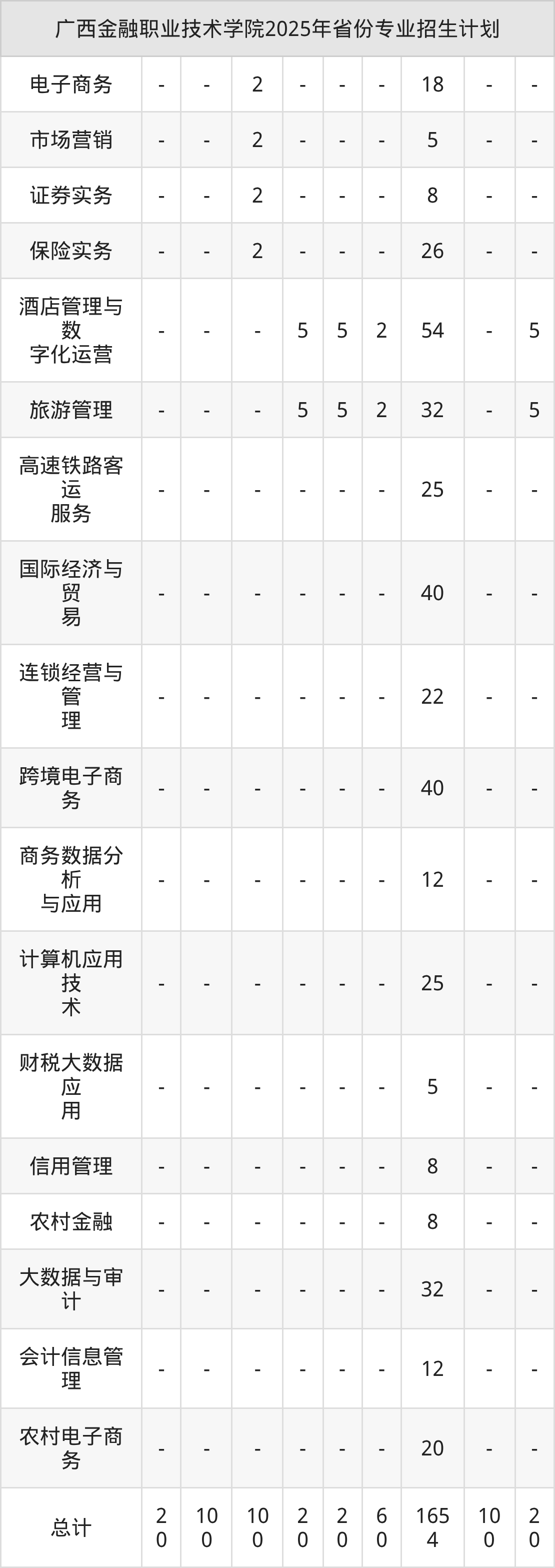 2026年广西金融职业技术学院专科招生计划待公布,下面附上2025年数据,暂供参考:
