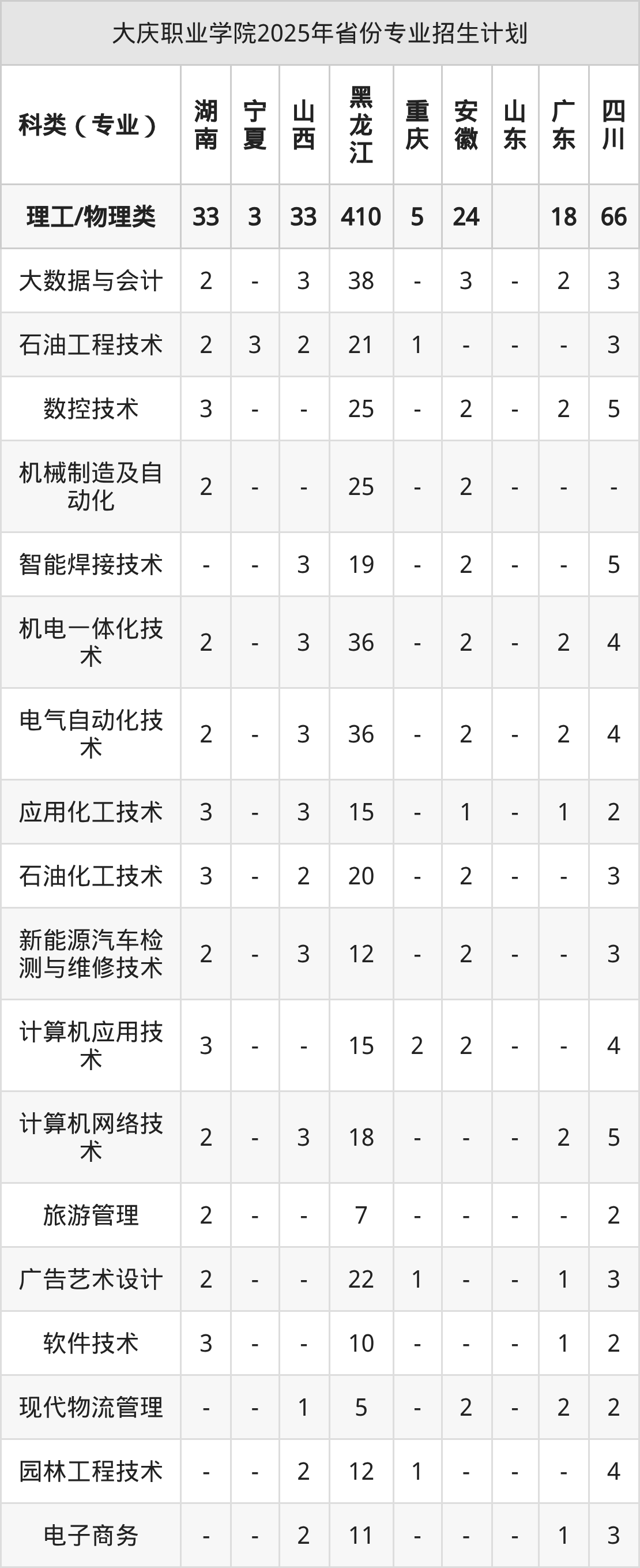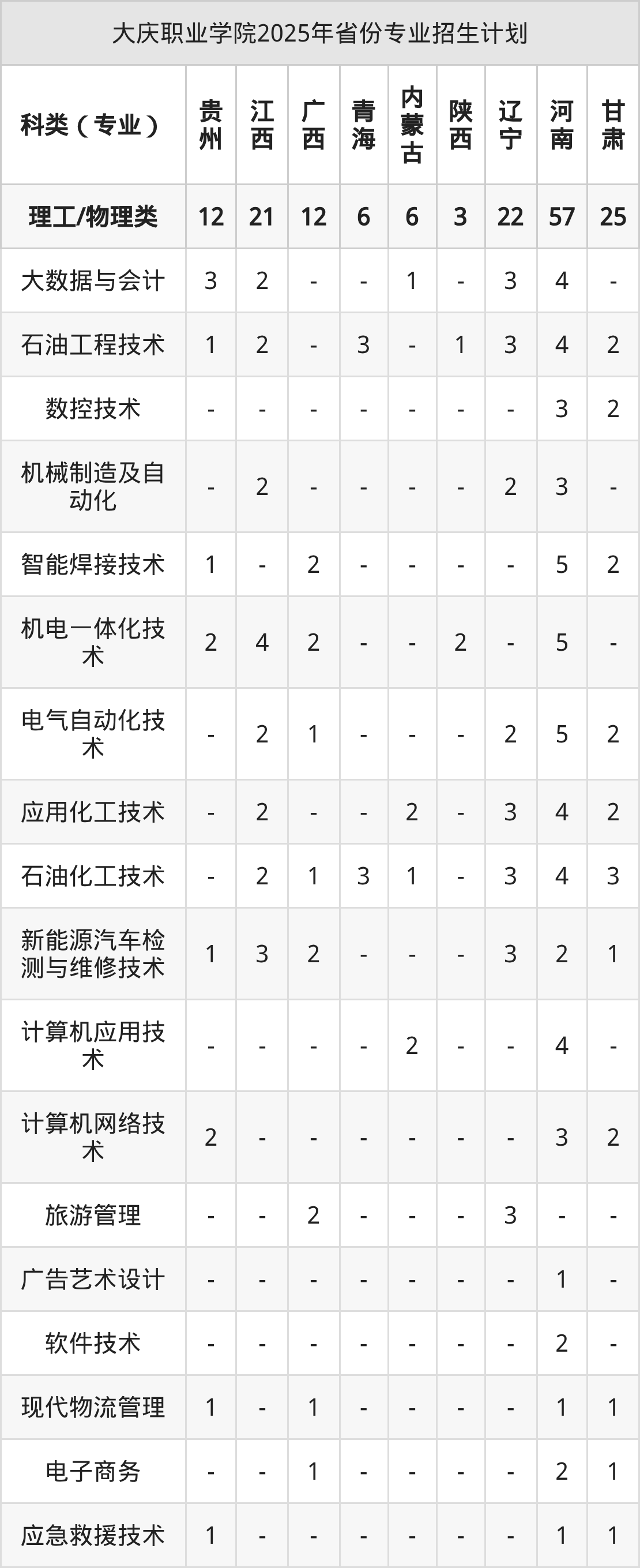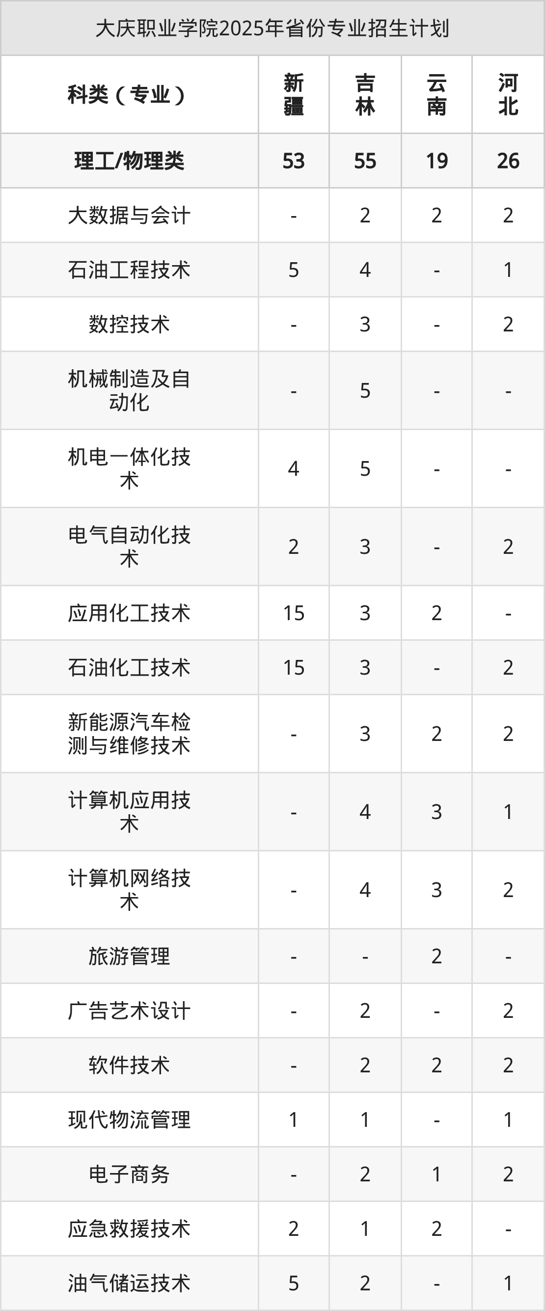 2026年大庆职业学院专科招生计划待公布,下面附上2025年数据,暂供参考: