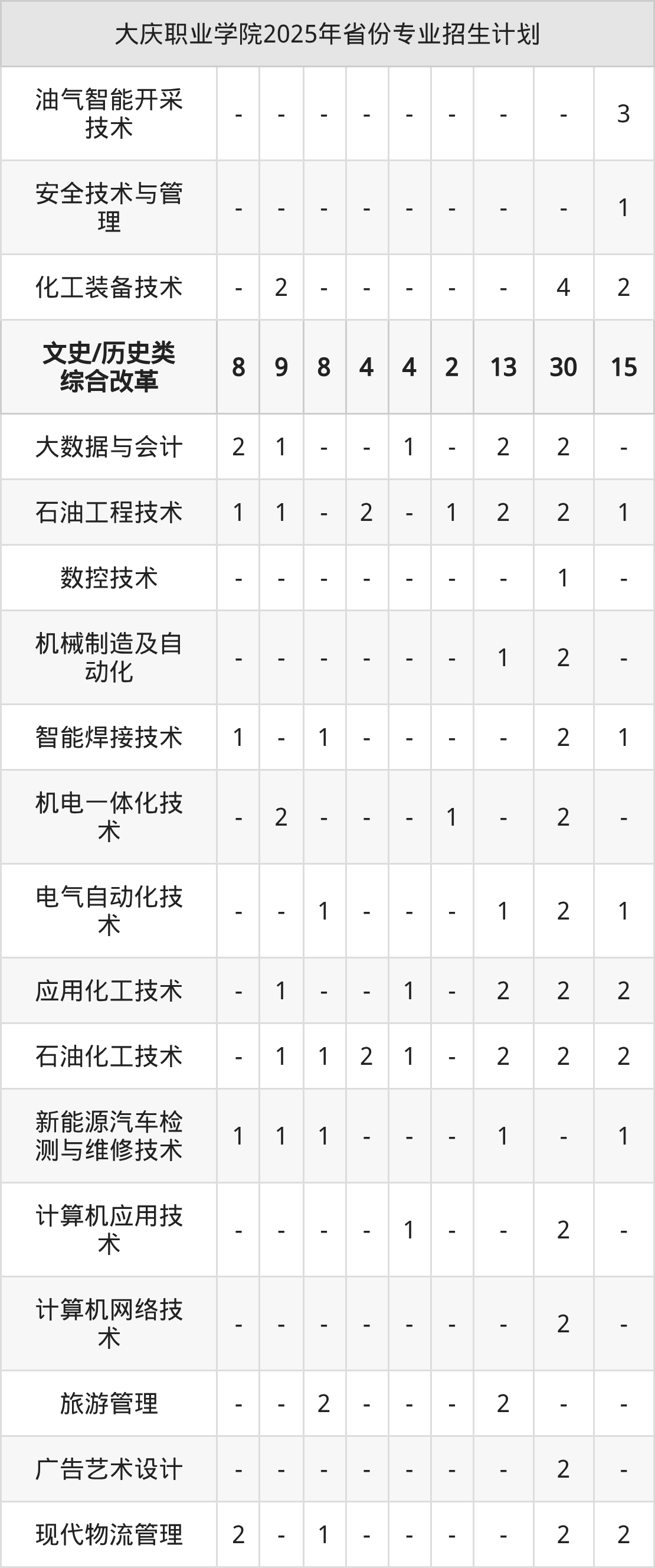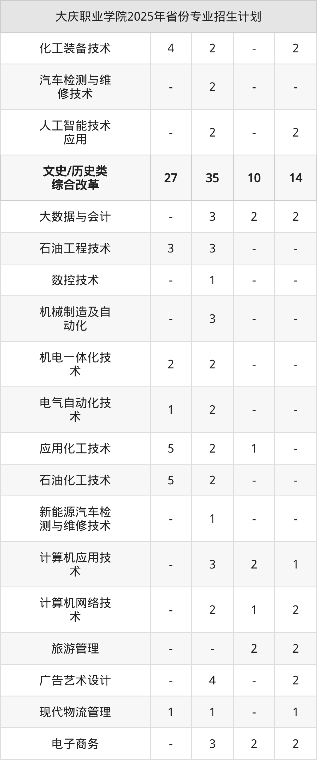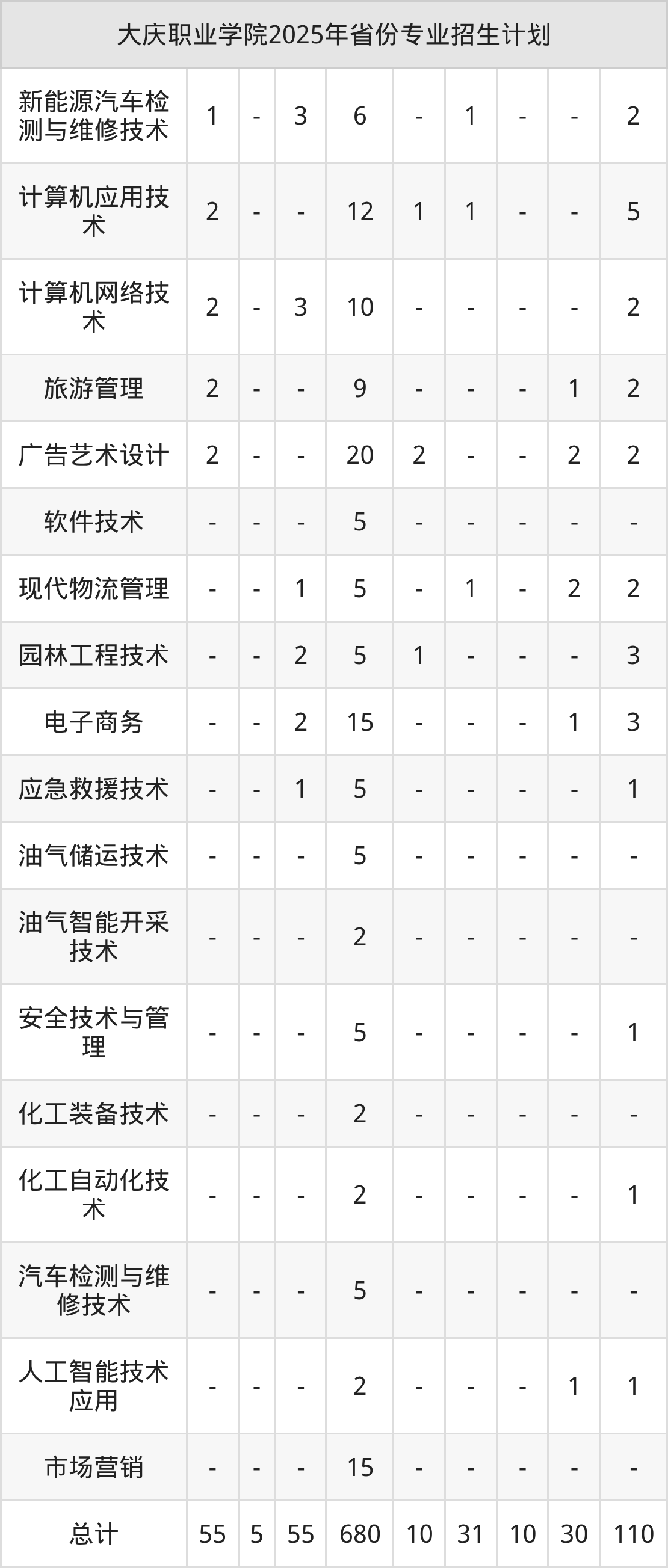 2026年大庆职业学院专科招生计划待公布,下面附上2025年数据,暂供参考: