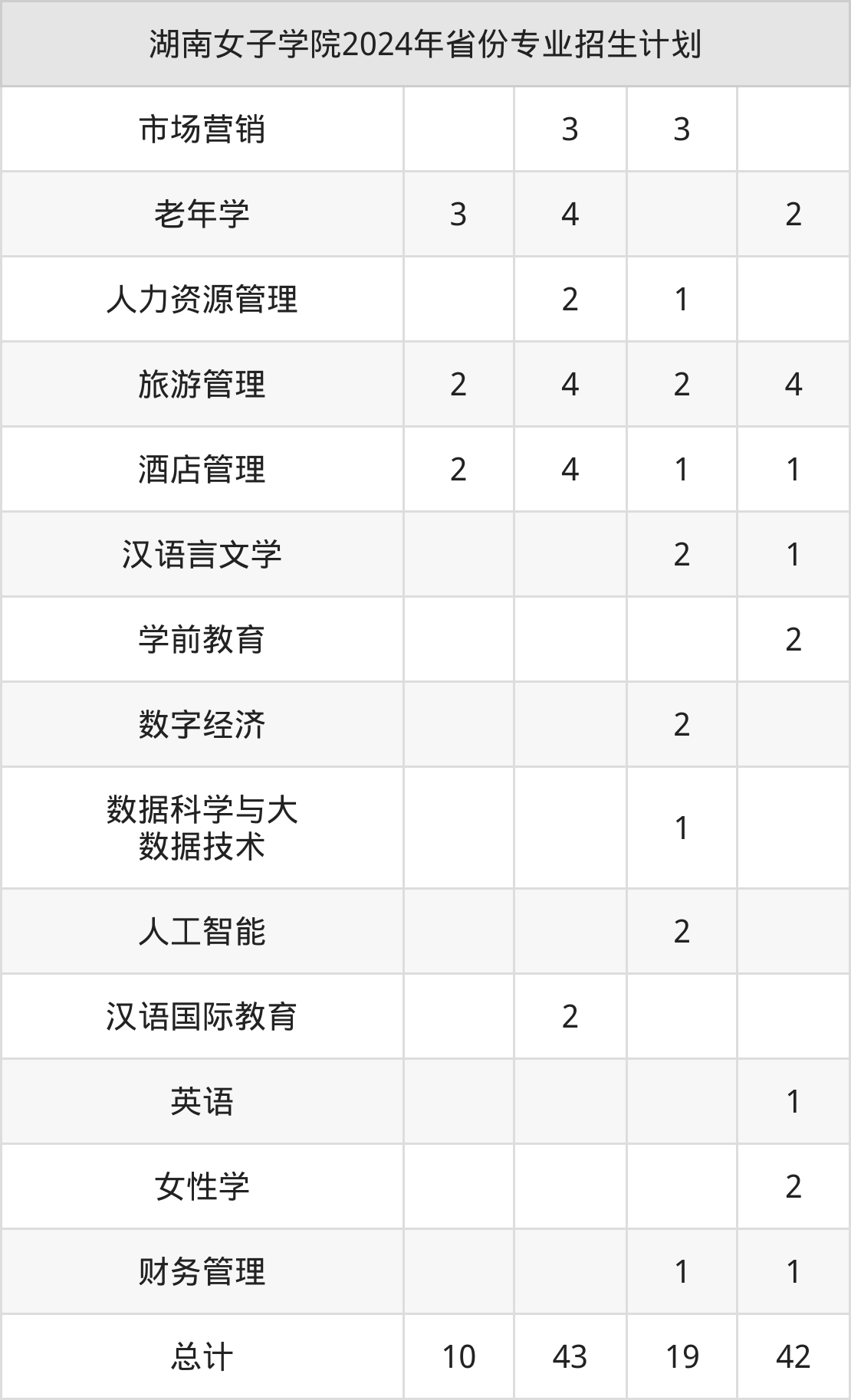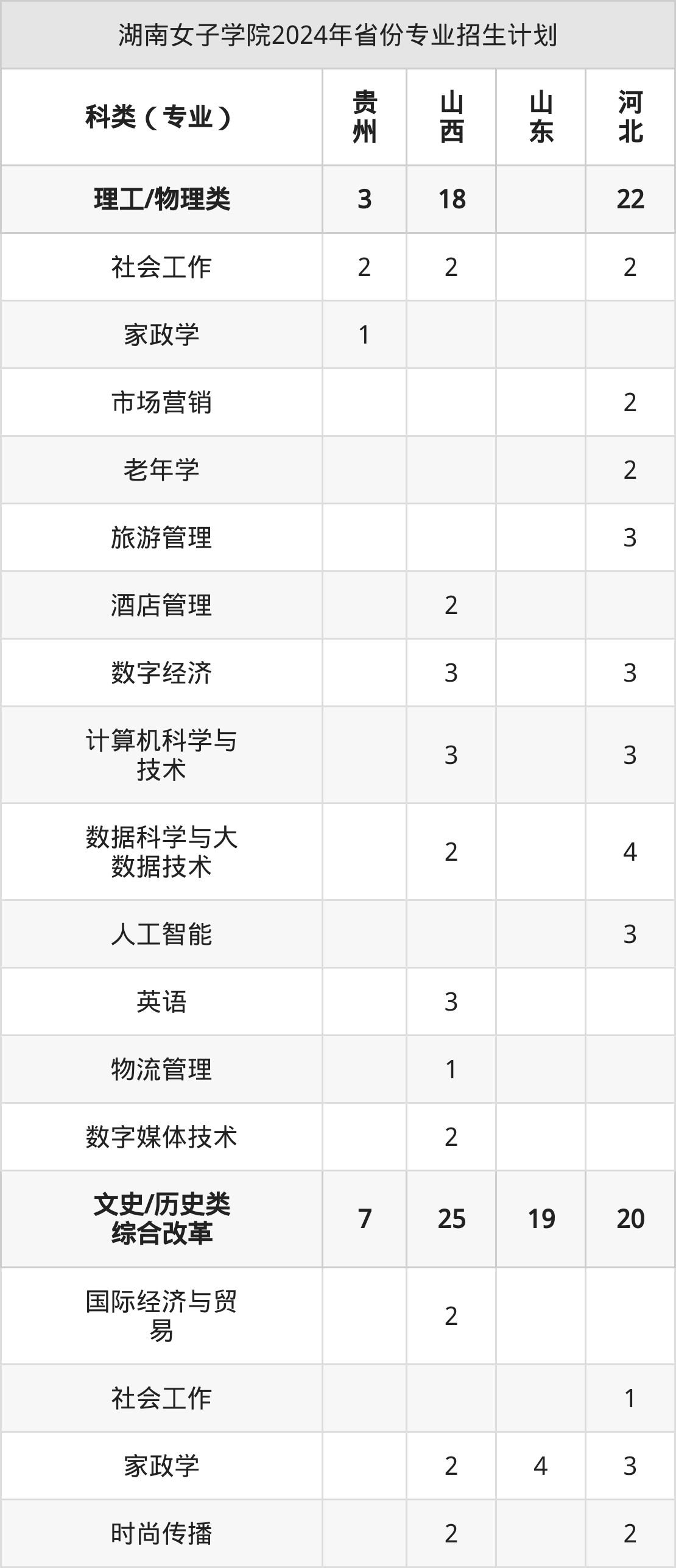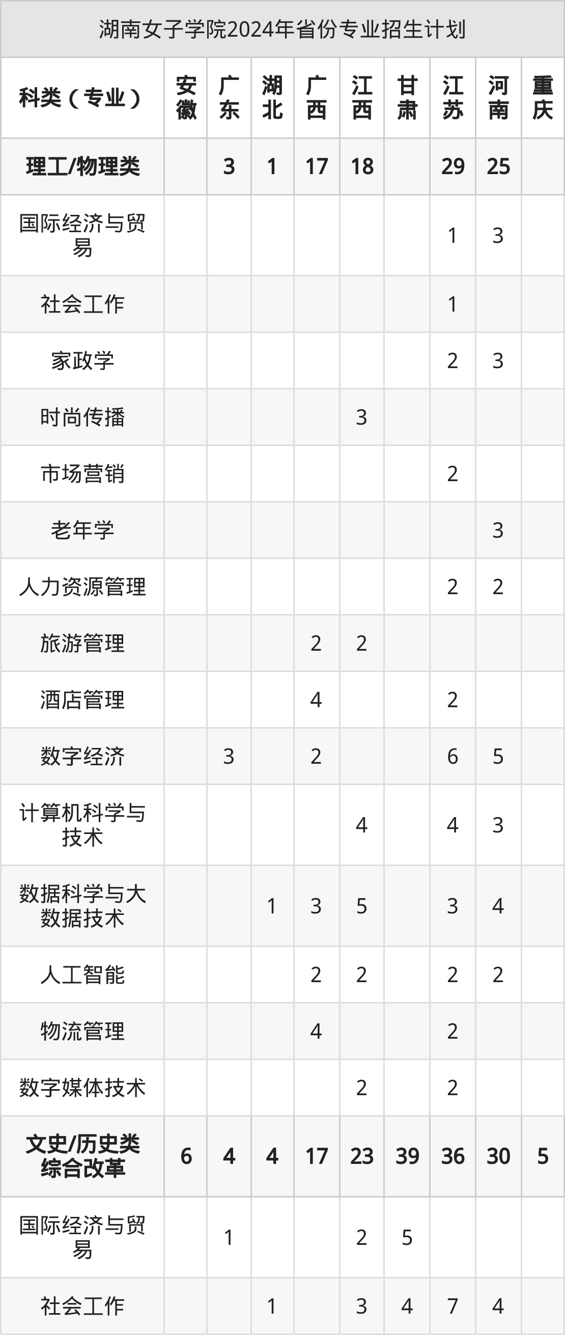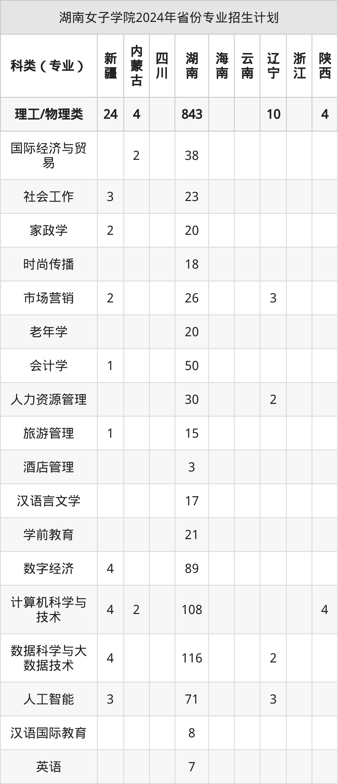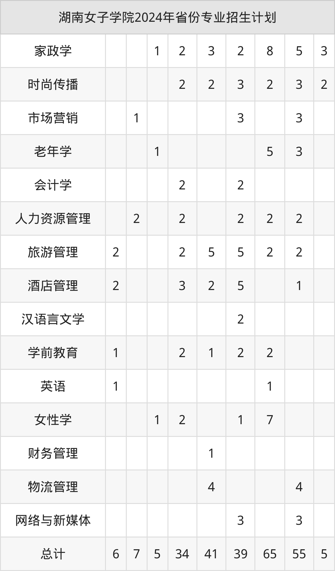 2025年湖南女子学院本科招生计划待公布,下面附上2024年数据,暂供参考: