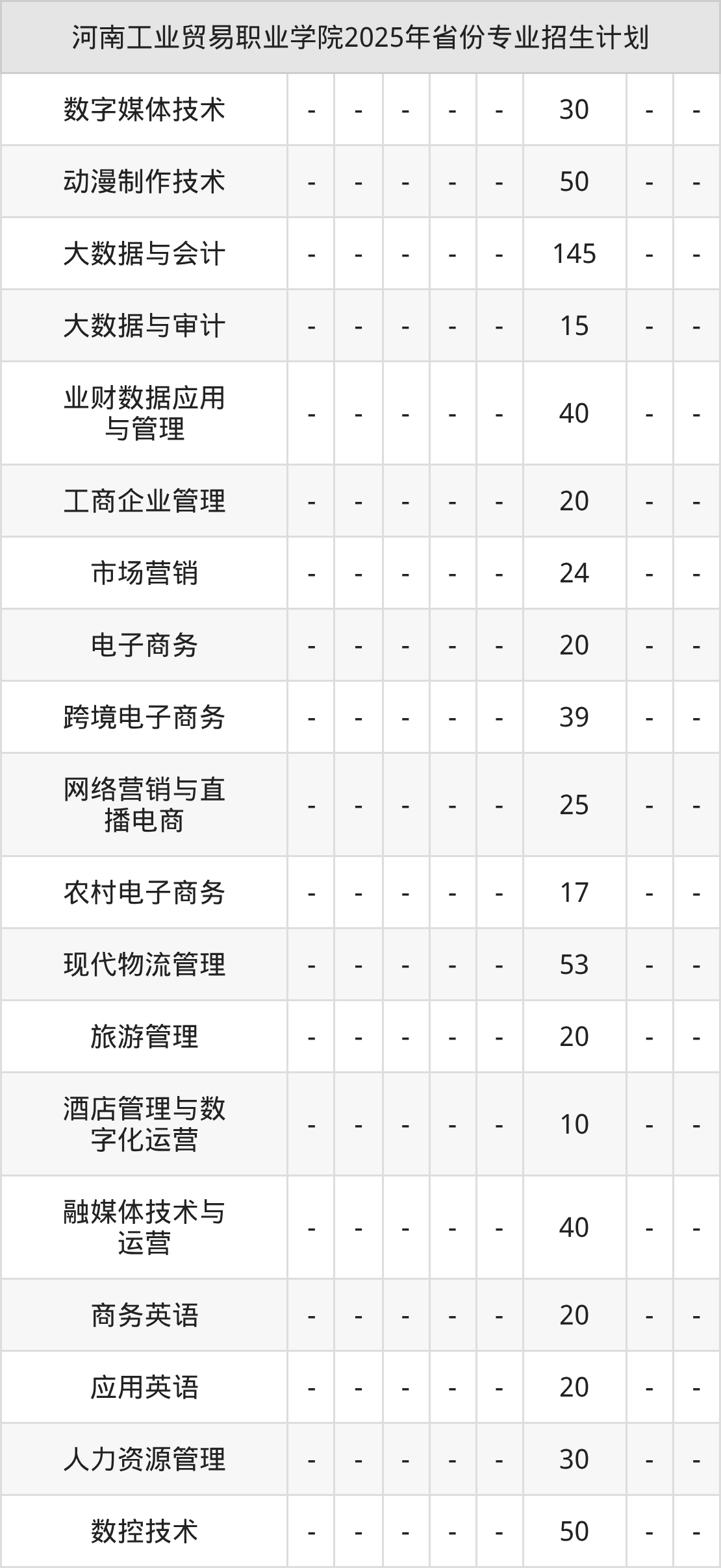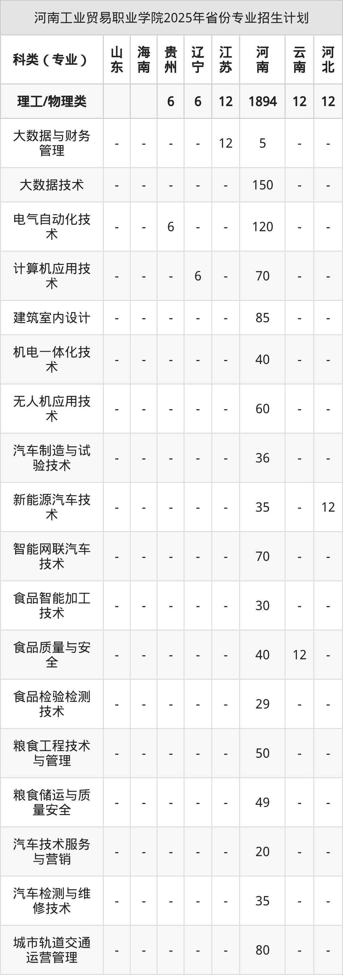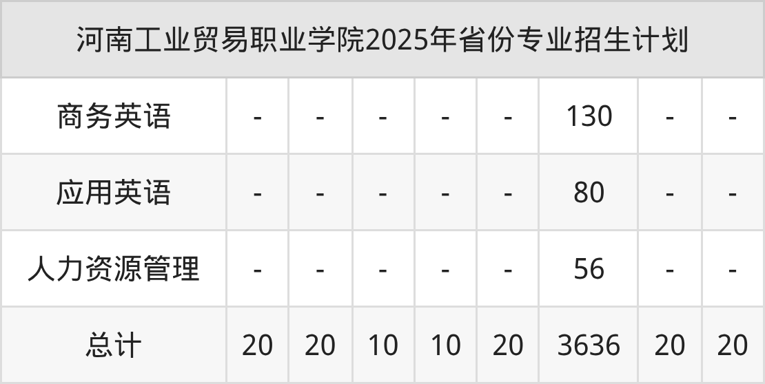 2026年河南工业贸易职业学院专科招生计划待公布,下面附上2025年数据,暂供参考: