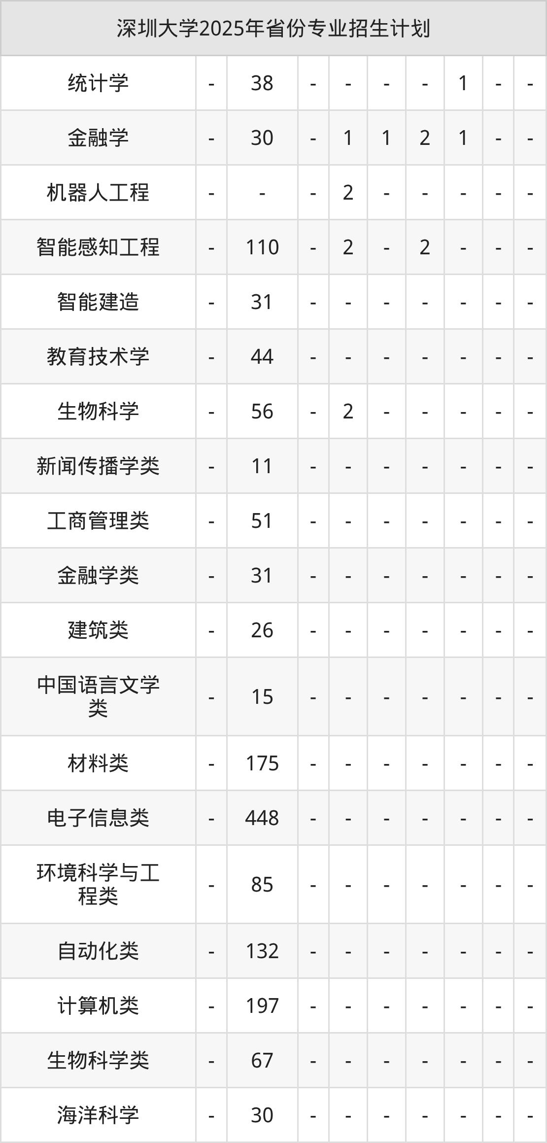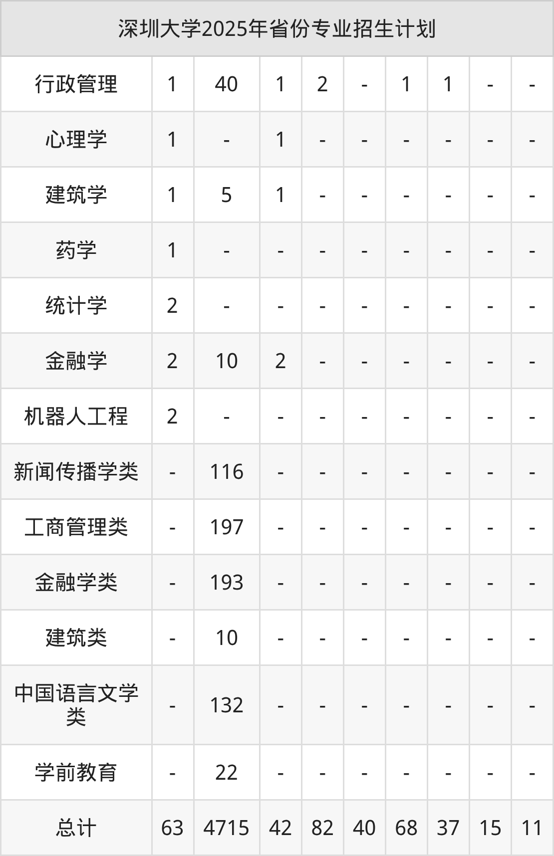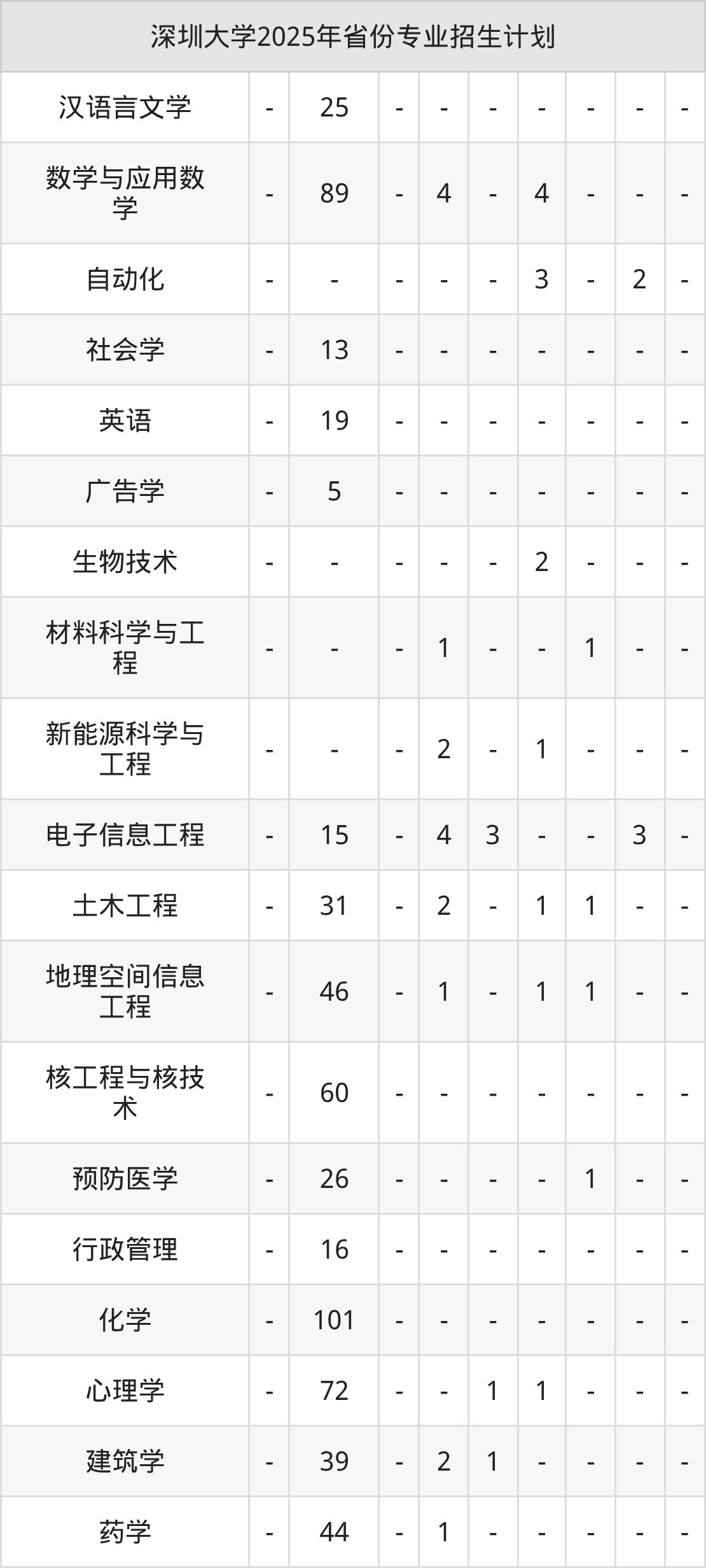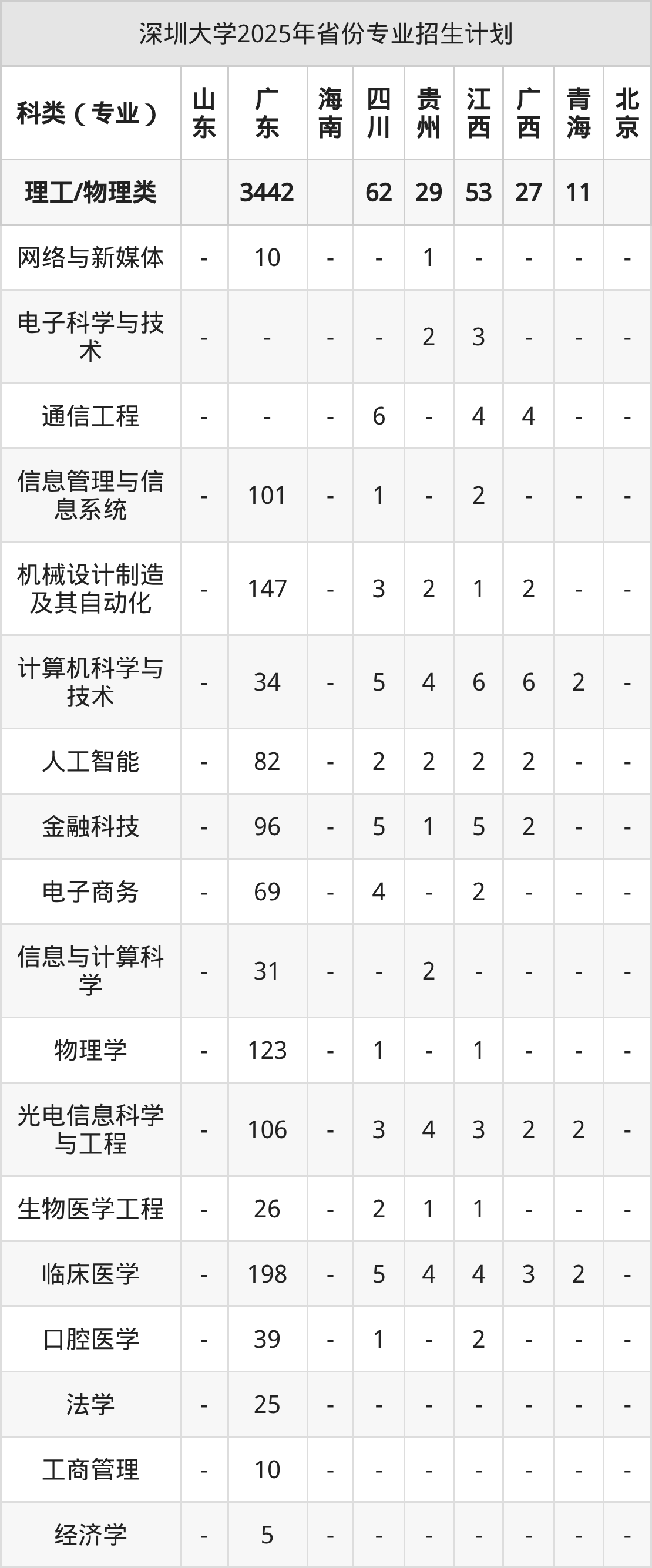 2026年深圳大学本科招生计划待公布,下面附上2025年数据,暂供参考:
