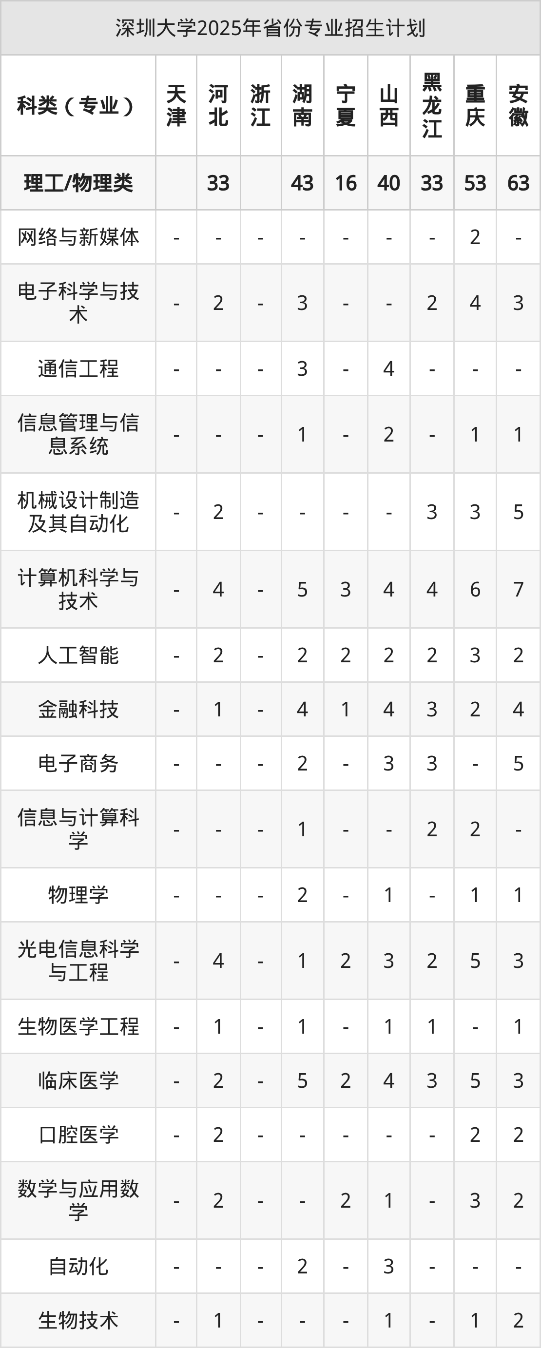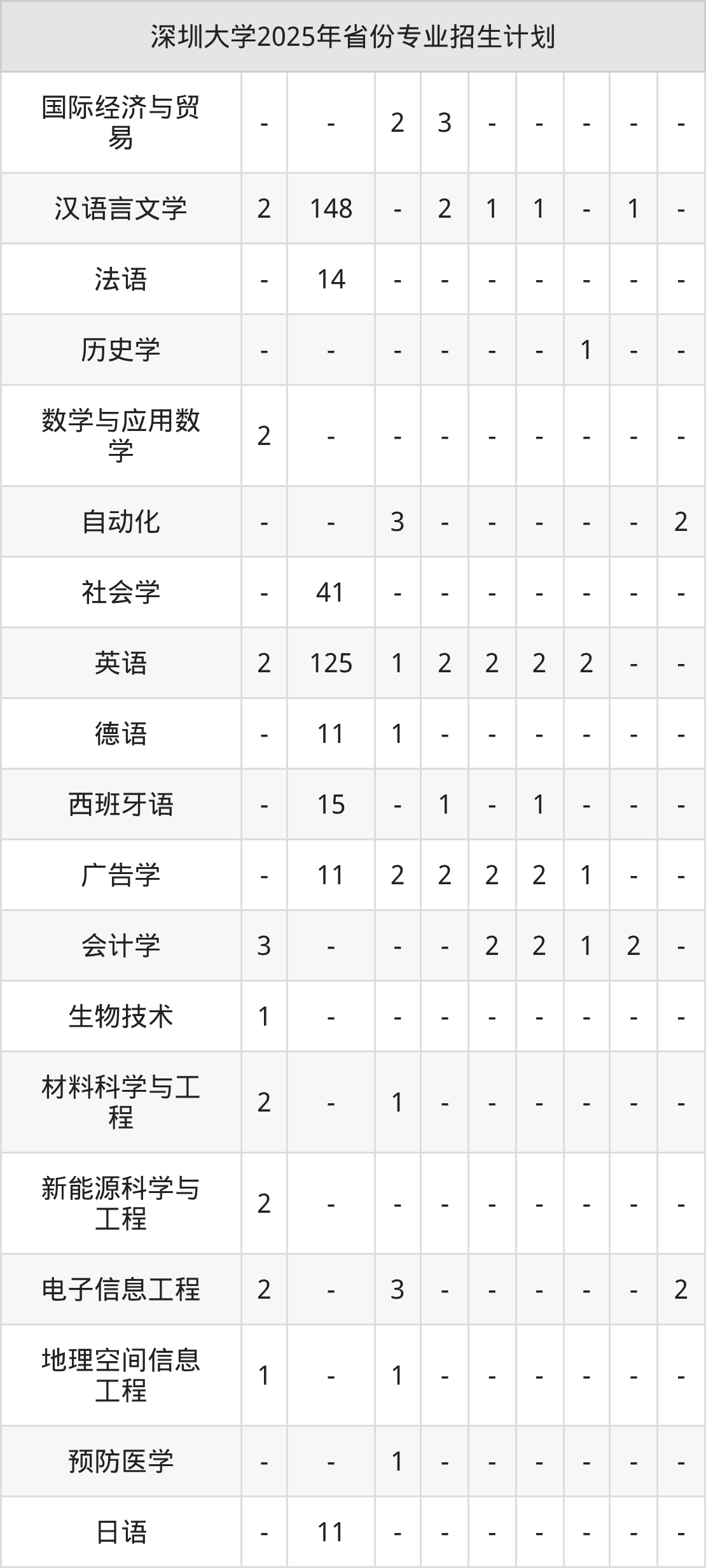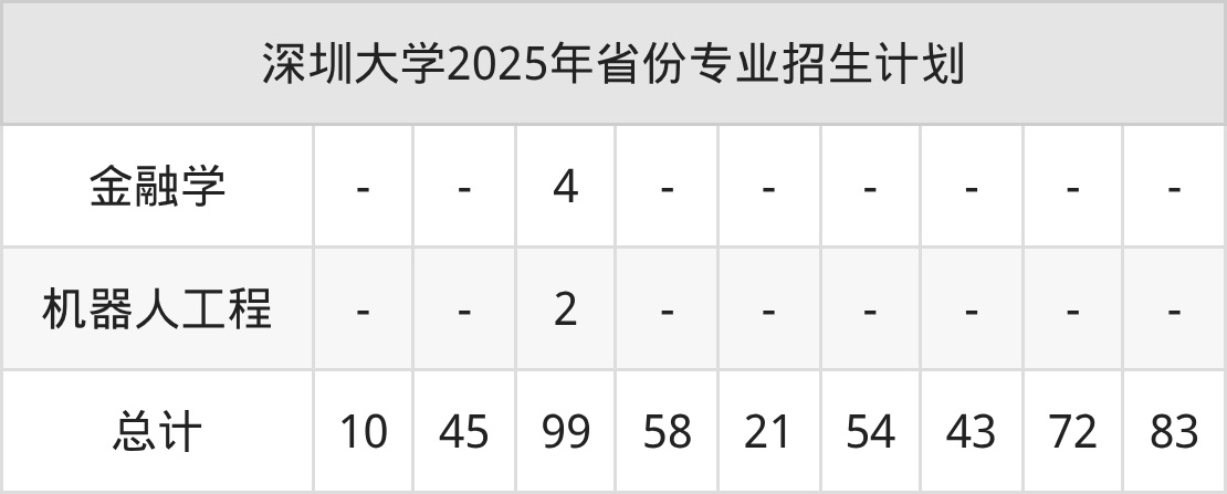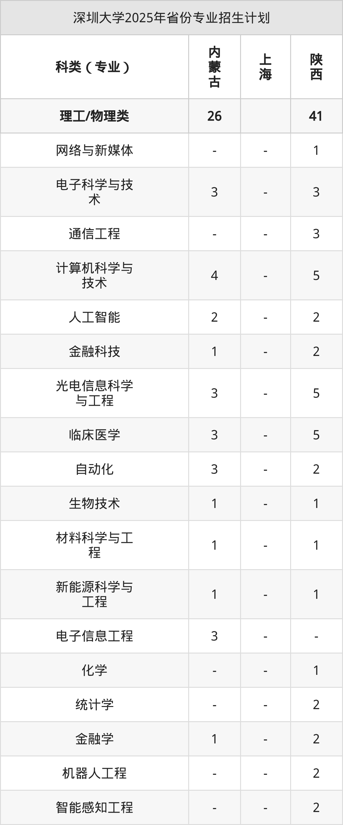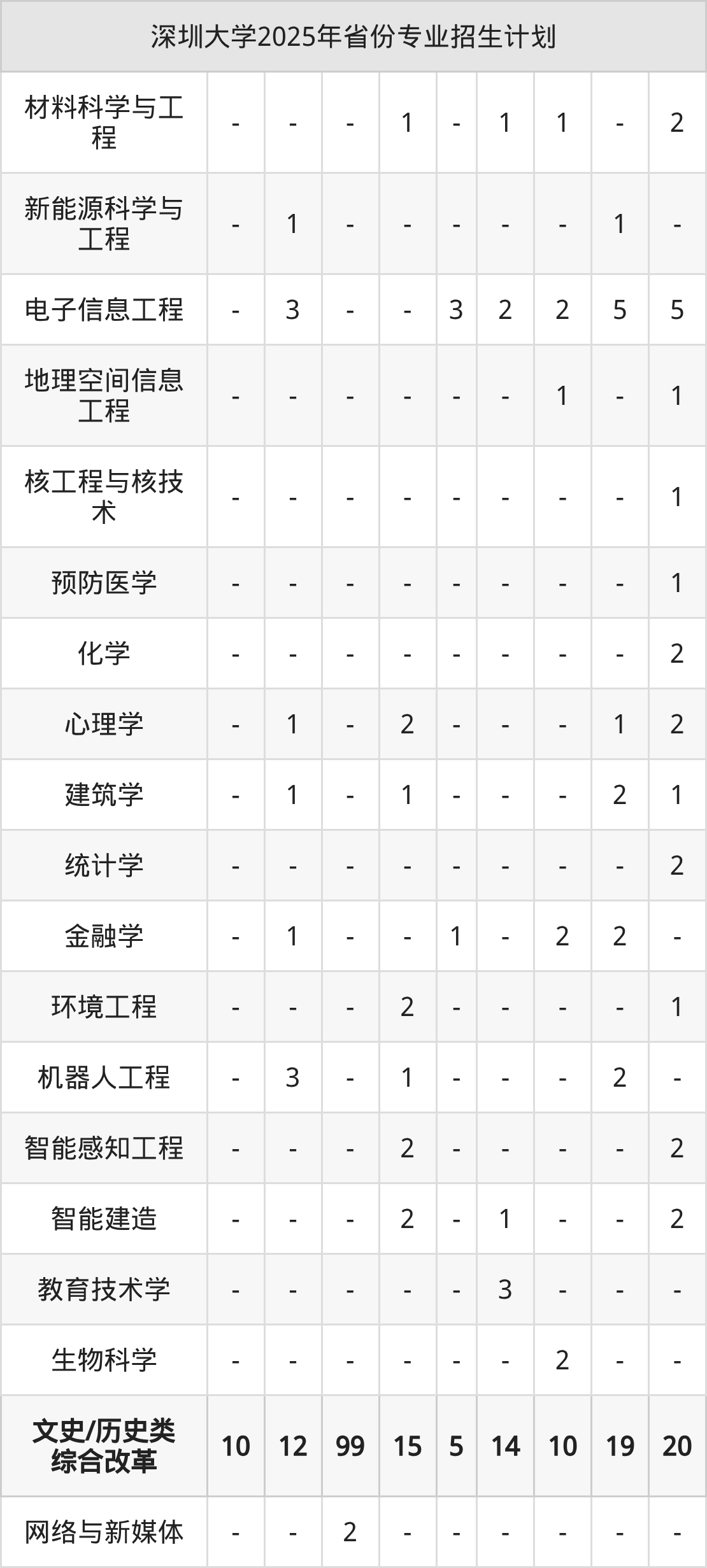 2026年深圳大学本科招生计划待公布,下面附上2025年数据,暂供参考: