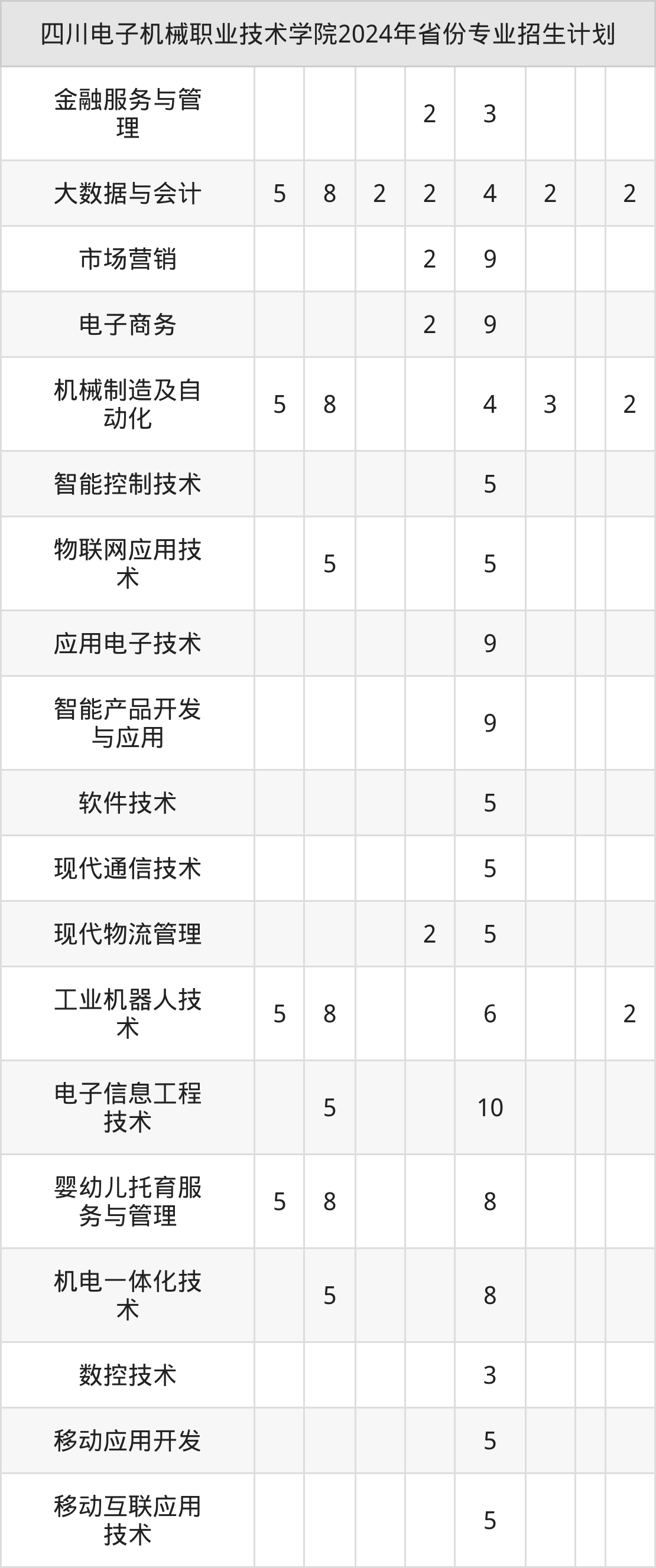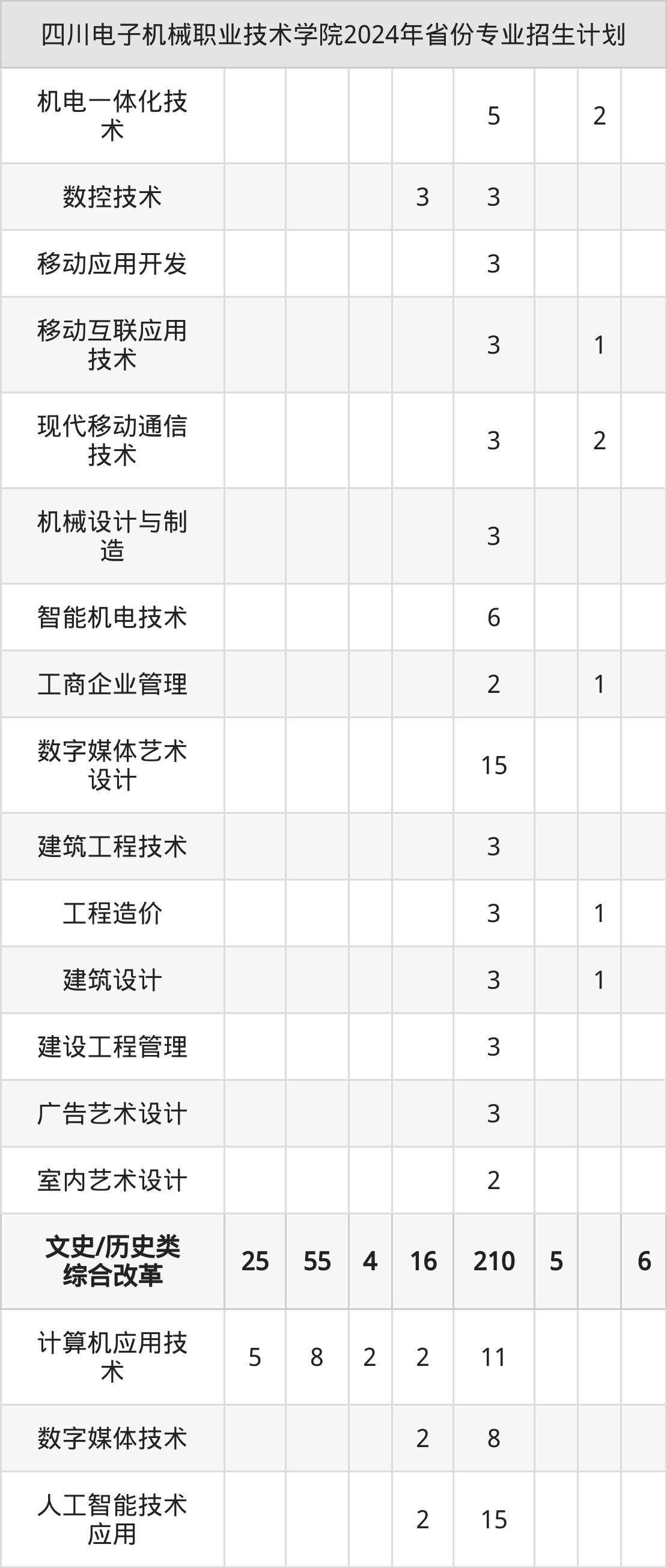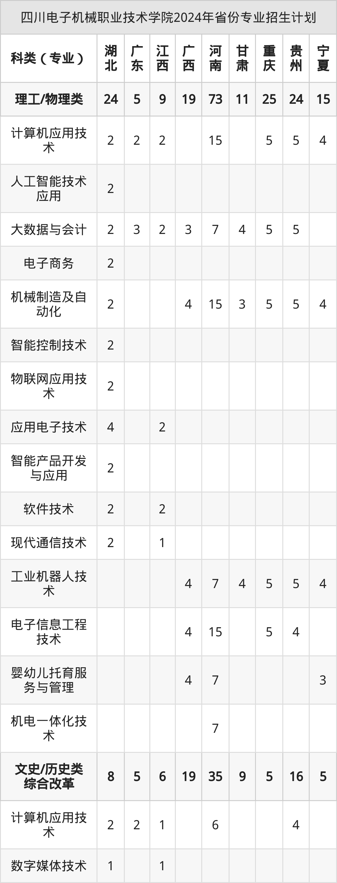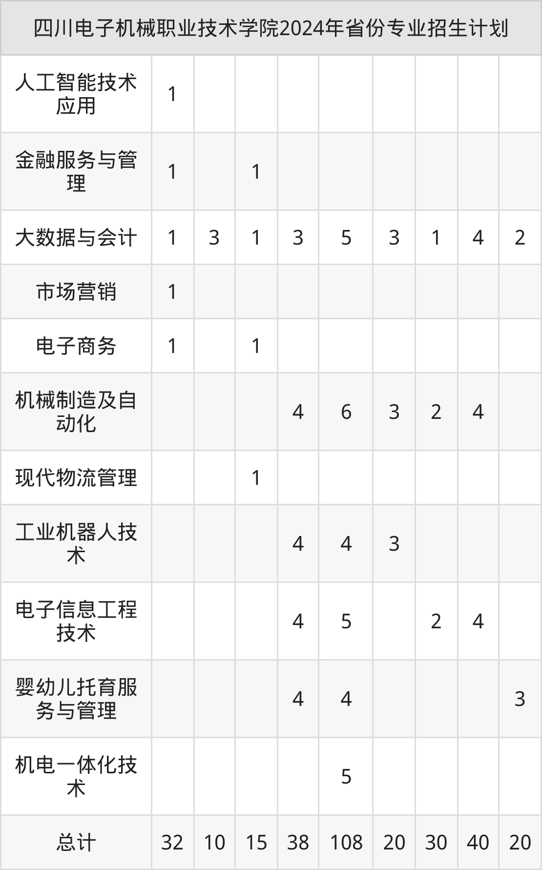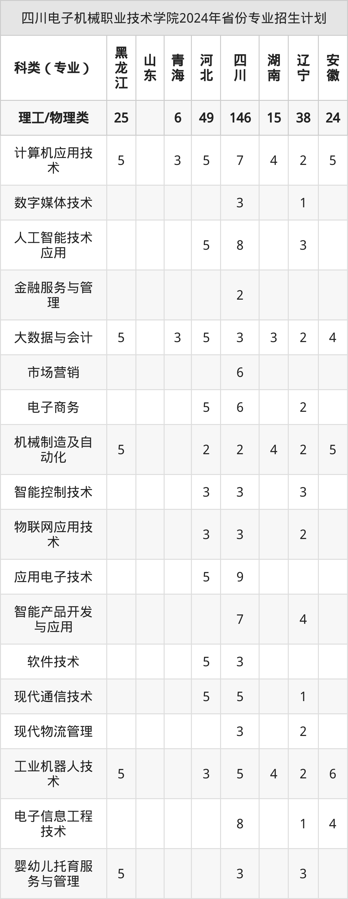 2025年四川电子机械职业技术学院专科招生计划待公布,下面附上2024年数据,暂供参考: