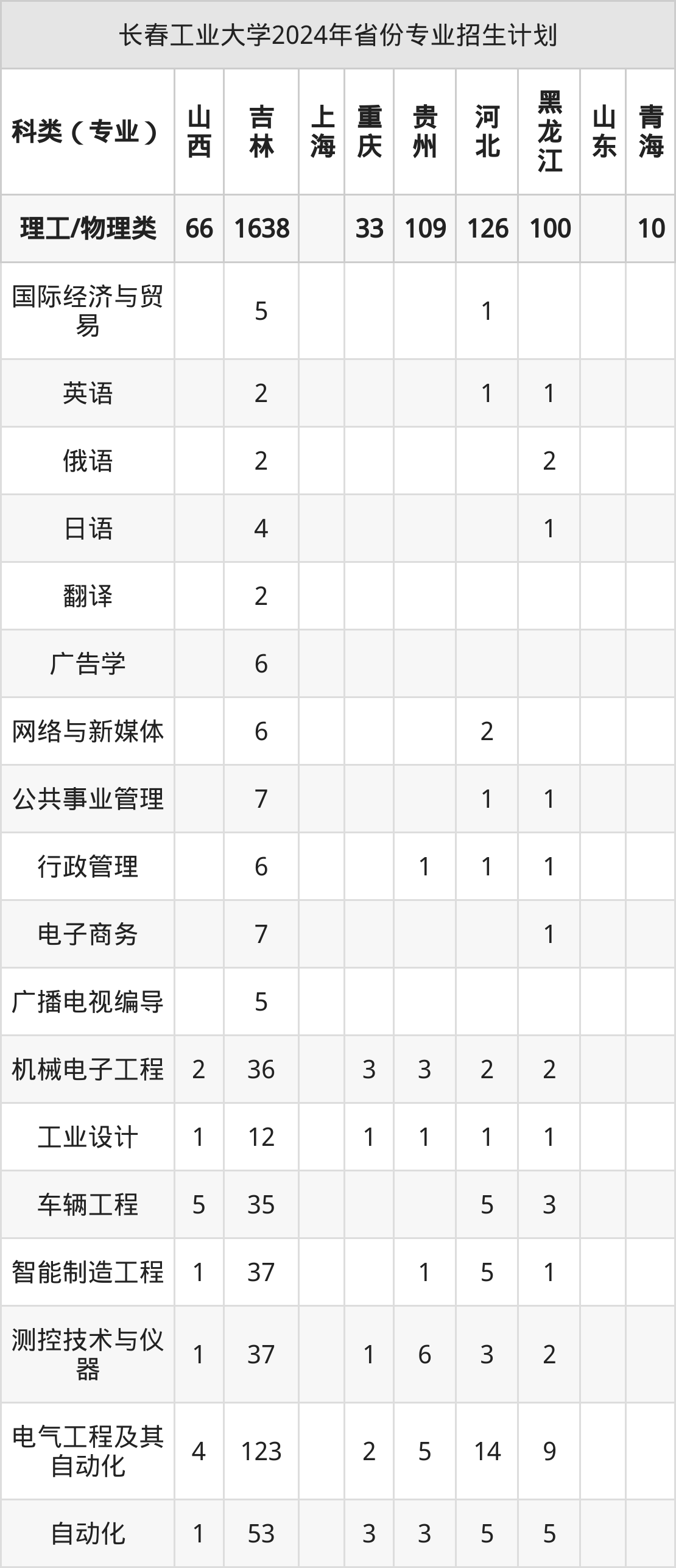 2025年长春工业大学本科招生计划待公布,下面附上2024年数据,暂供参考:
