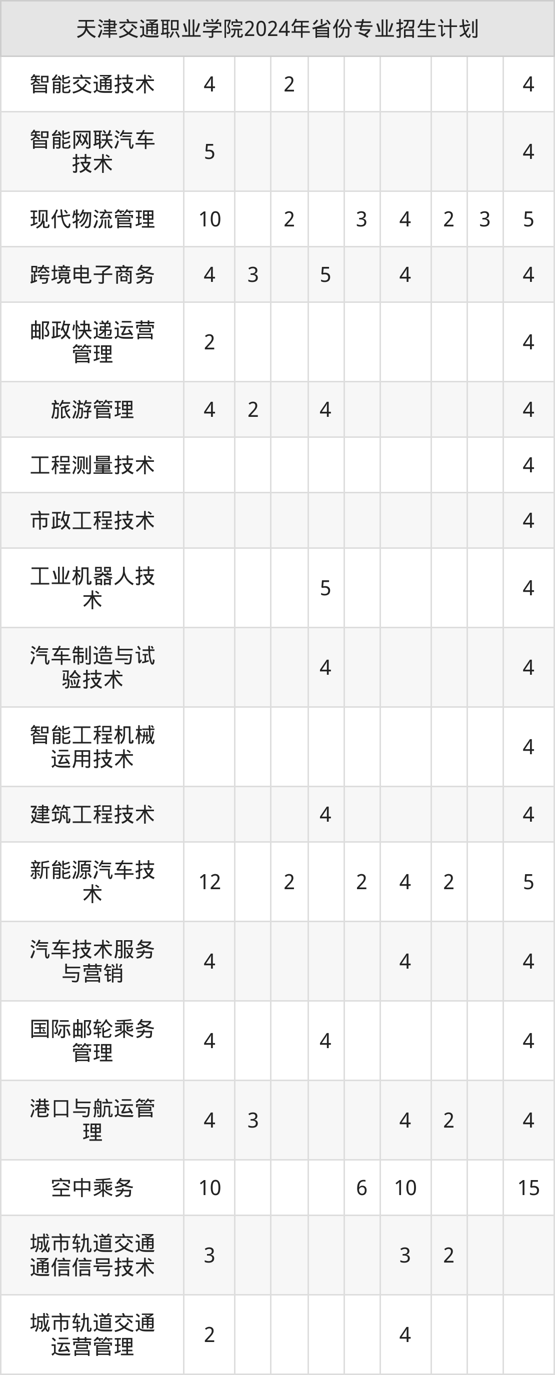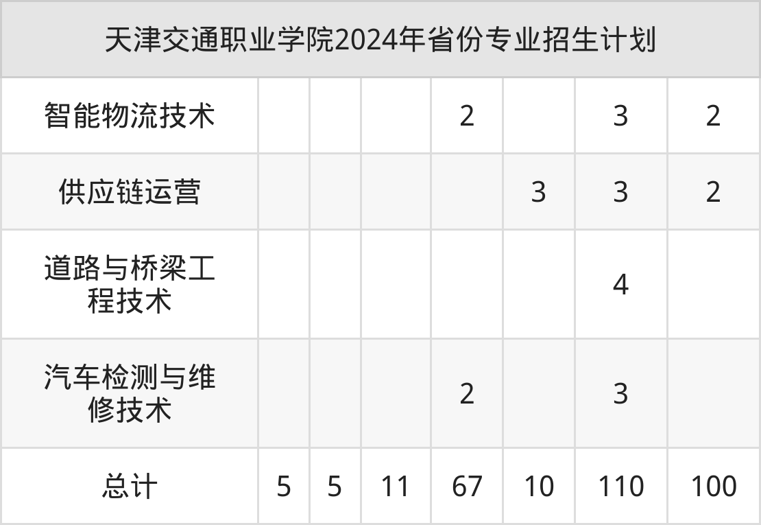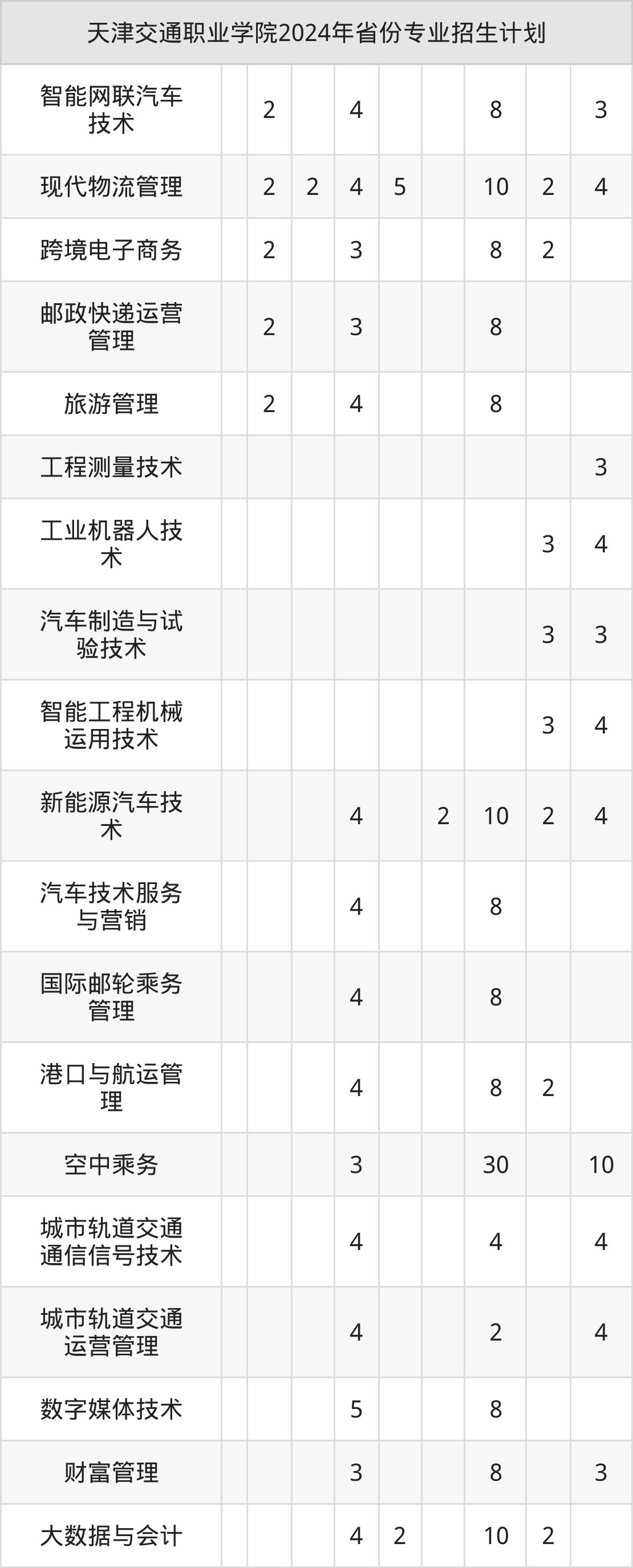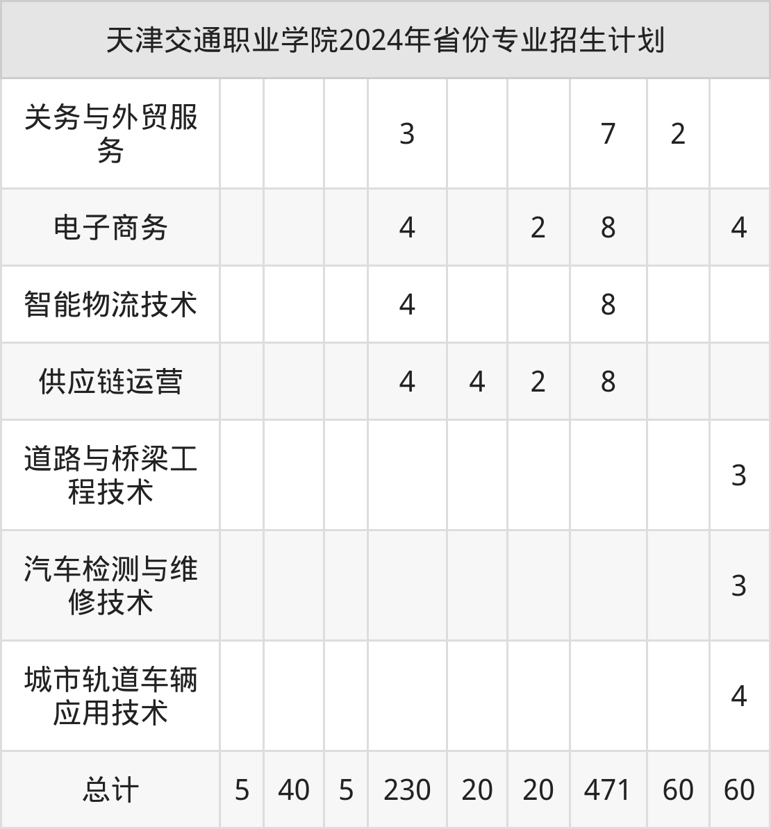 2025年天津交通职业学院专科招生计划待公布,下面附上2024年数据,暂供参考: