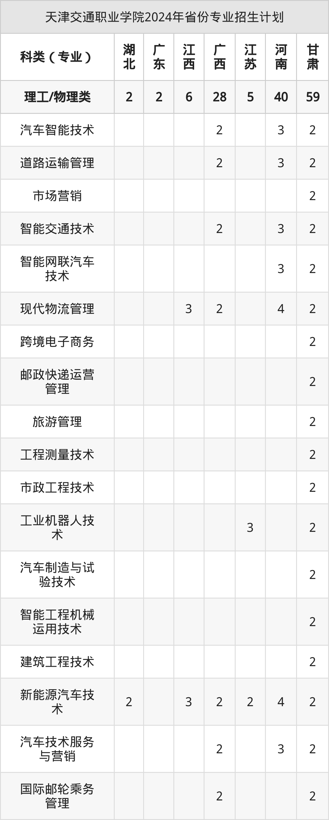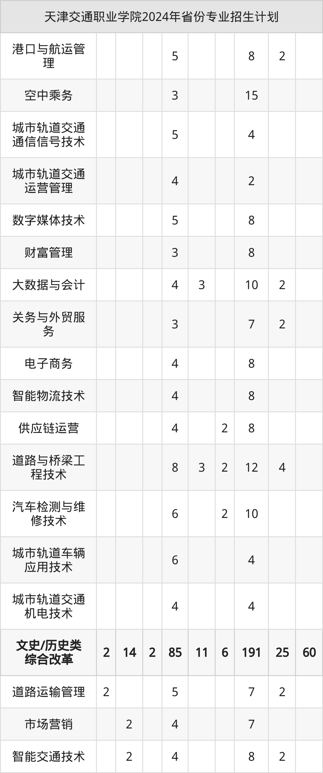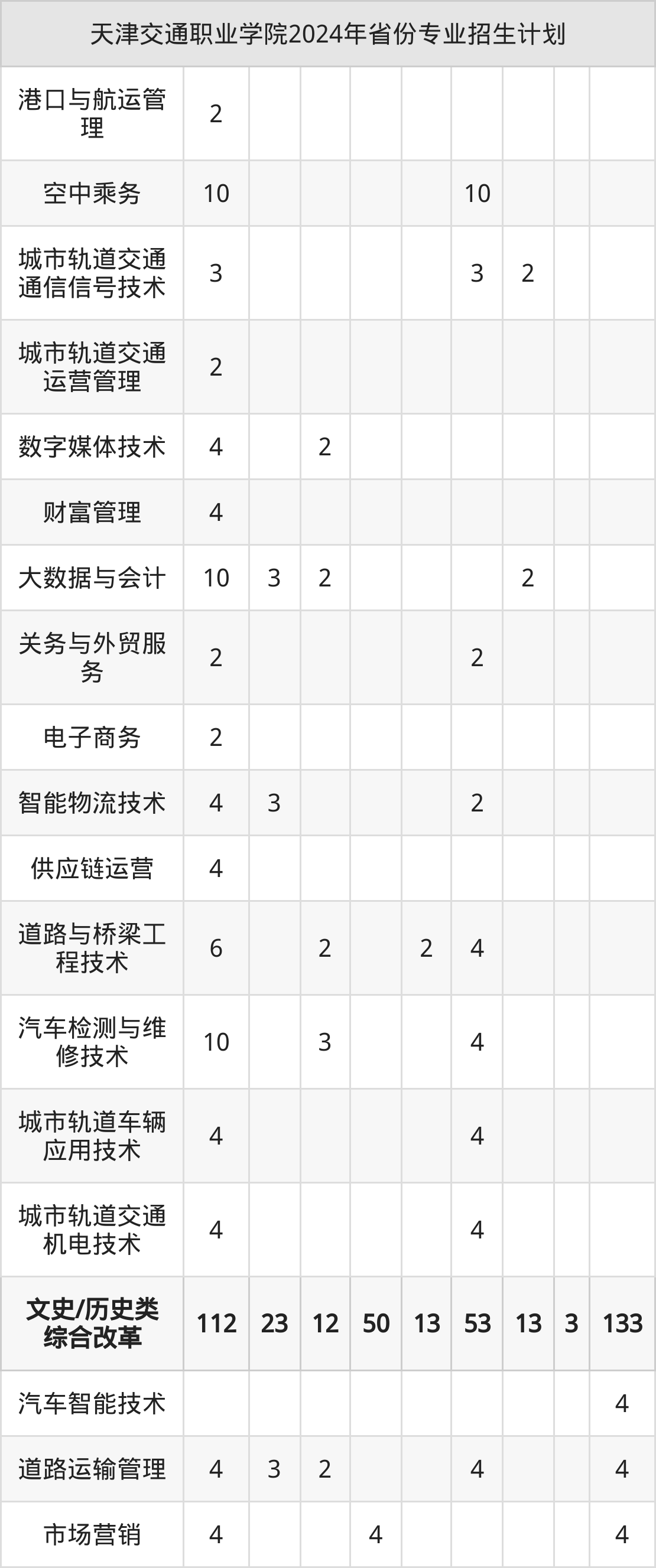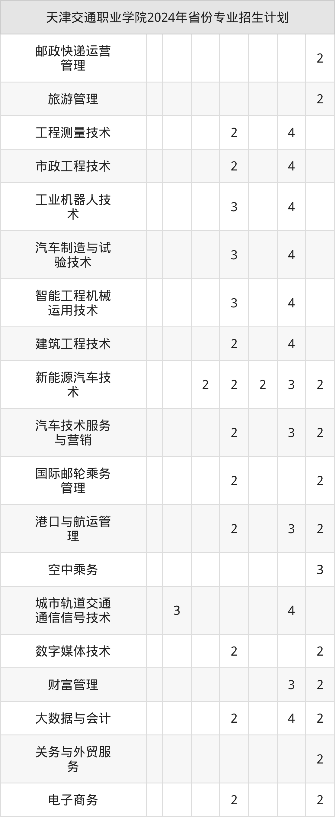 2025年天津交通职业学院专科招生计划待公布,下面附上2024年数据,暂供参考:
