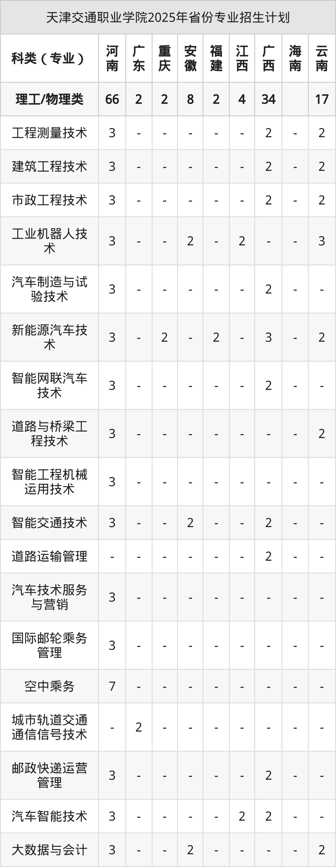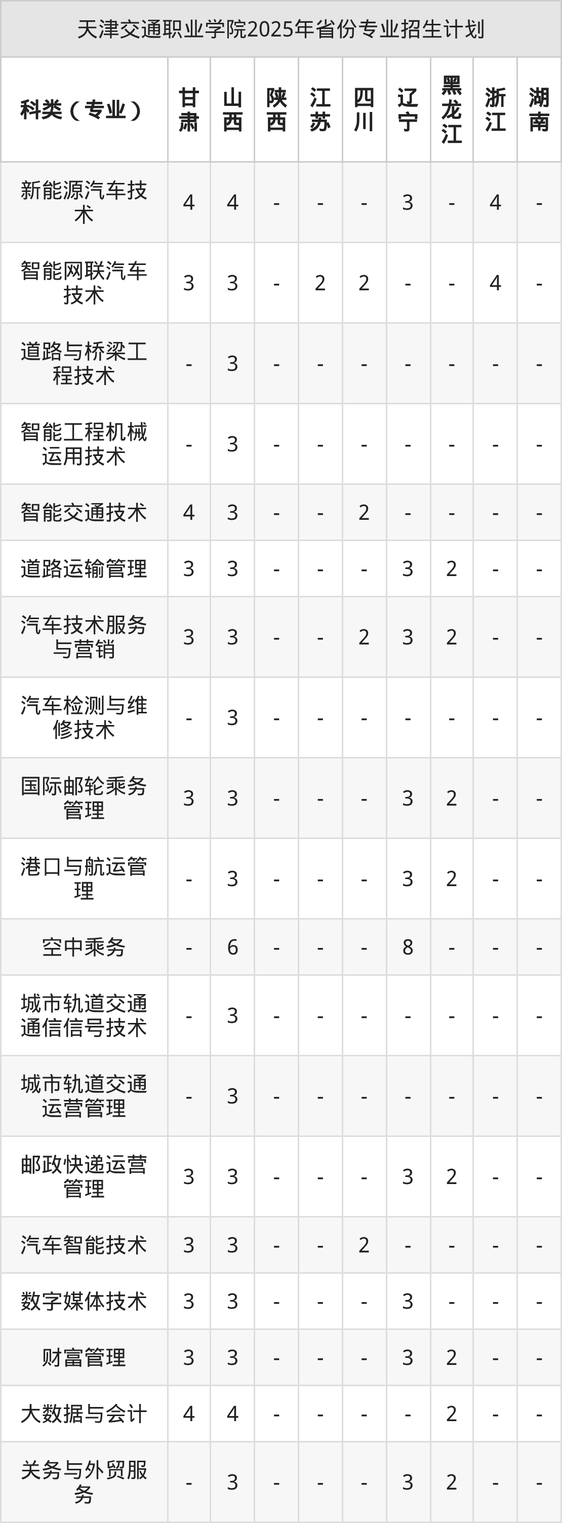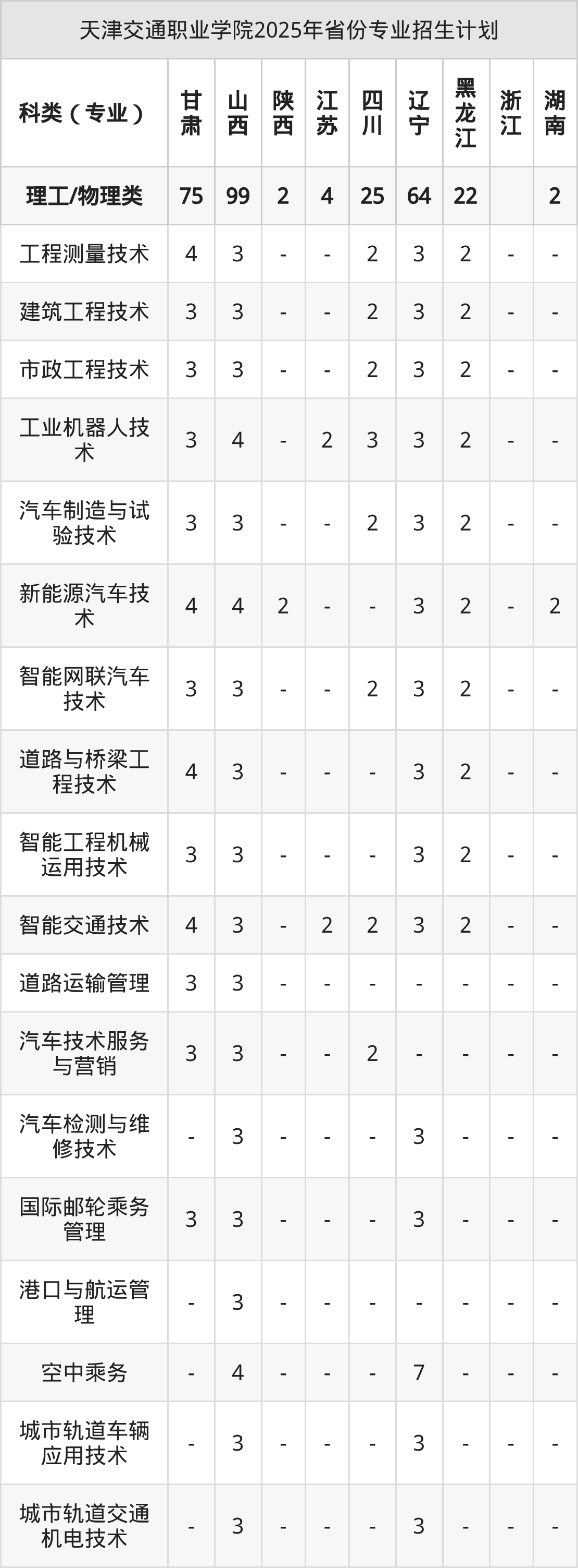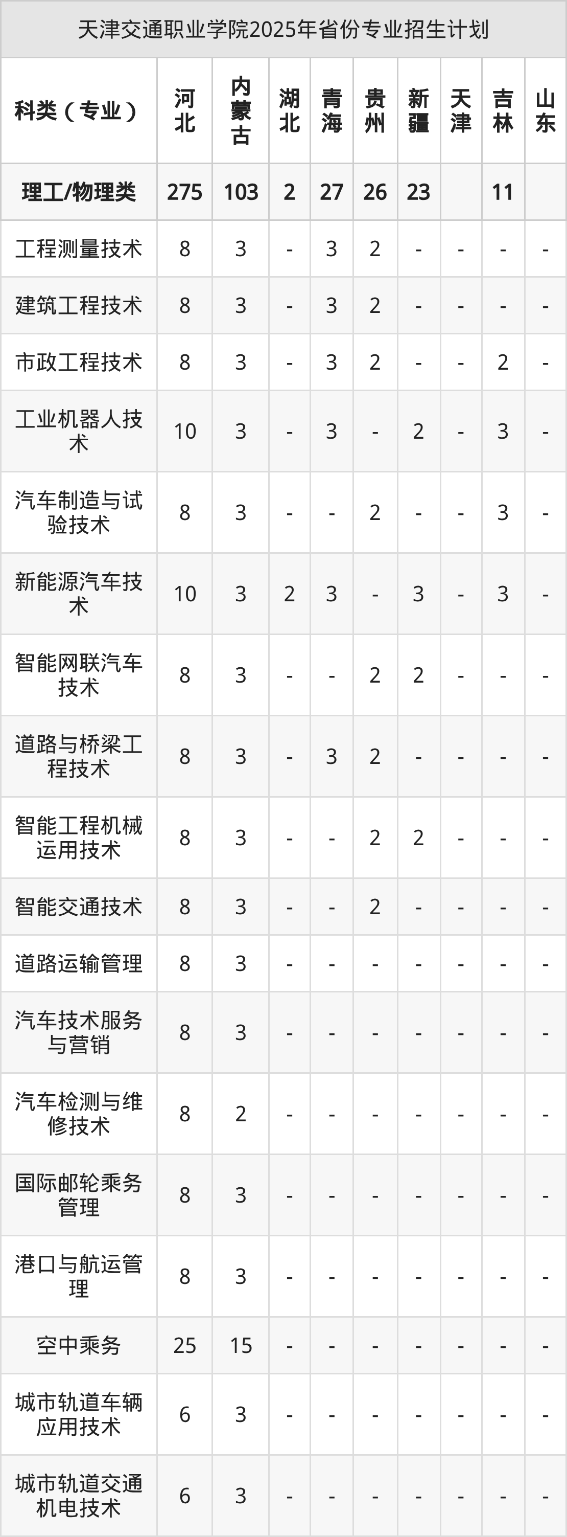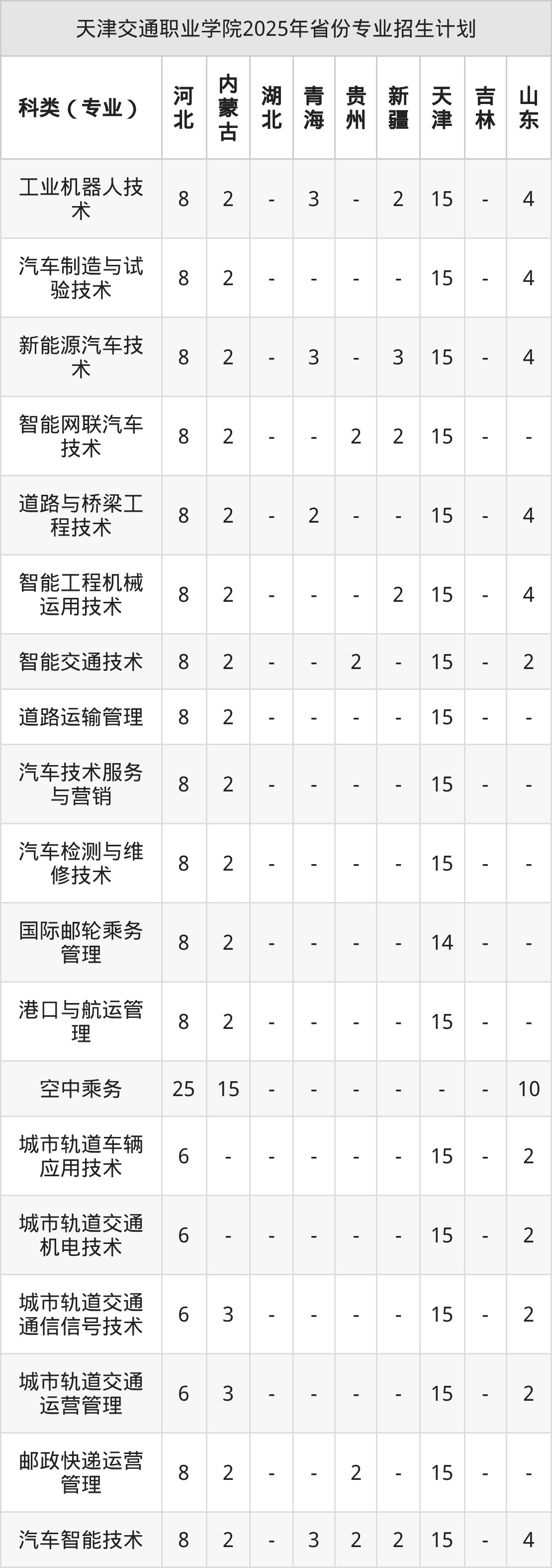 2026年天津交通职业学院专科招生计划待公布,下面附上2025年数据,暂供参考: