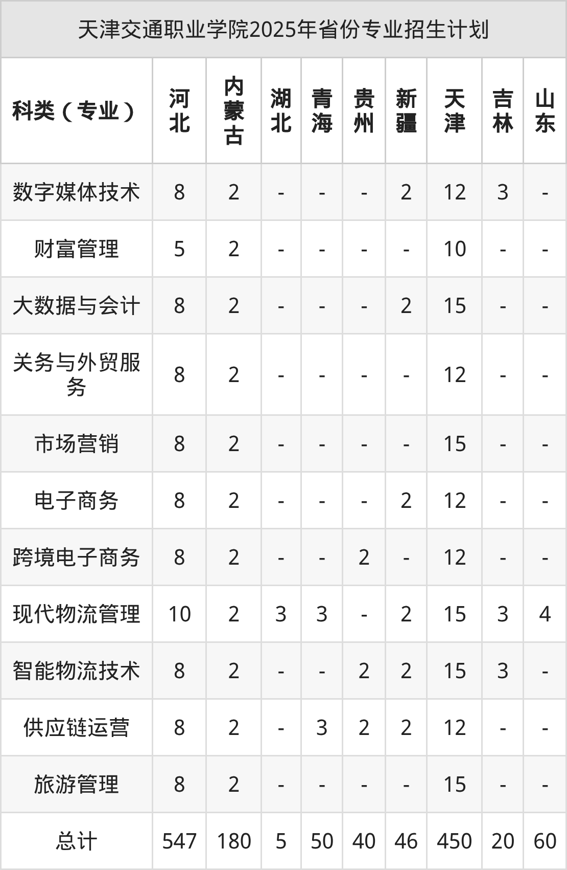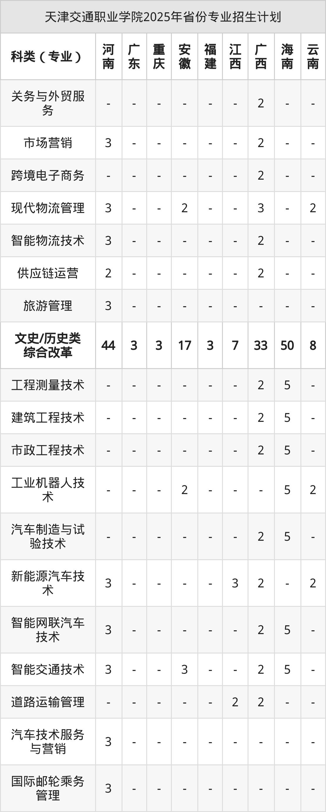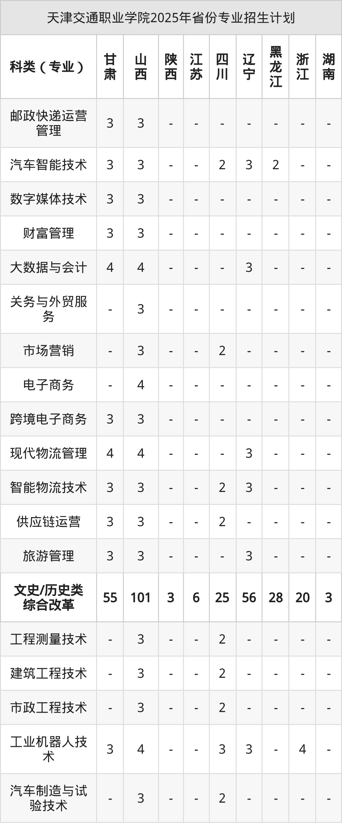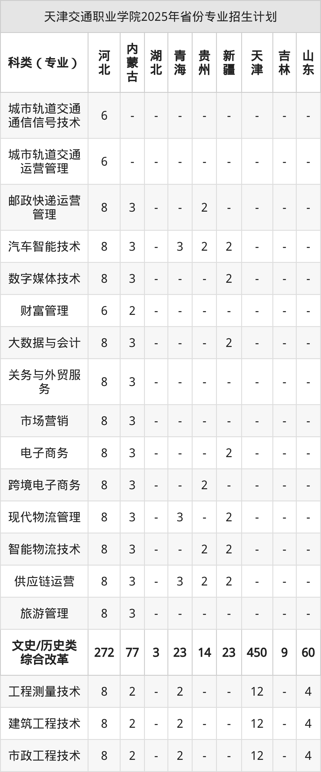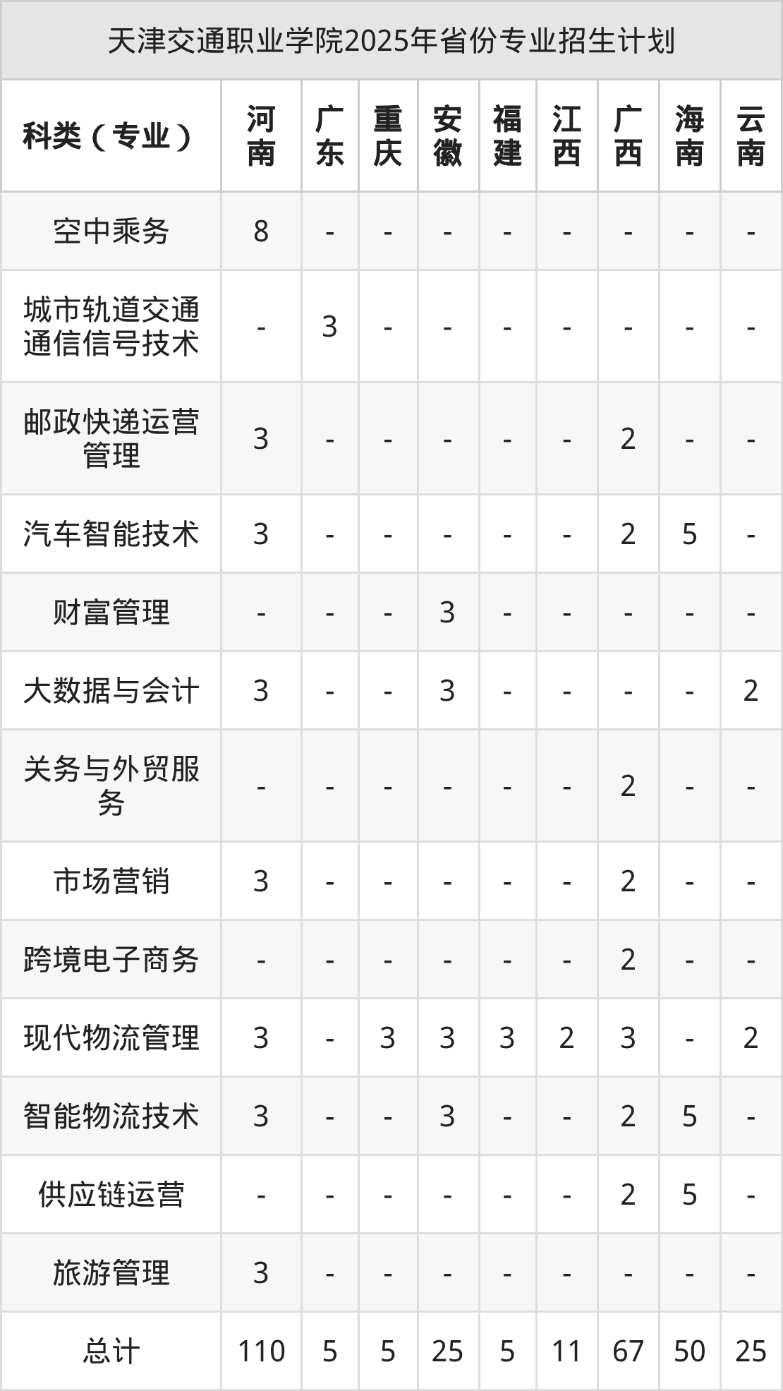 2026年天津交通职业学院专科招生计划待公布,下面附上2025年数据,暂供参考: